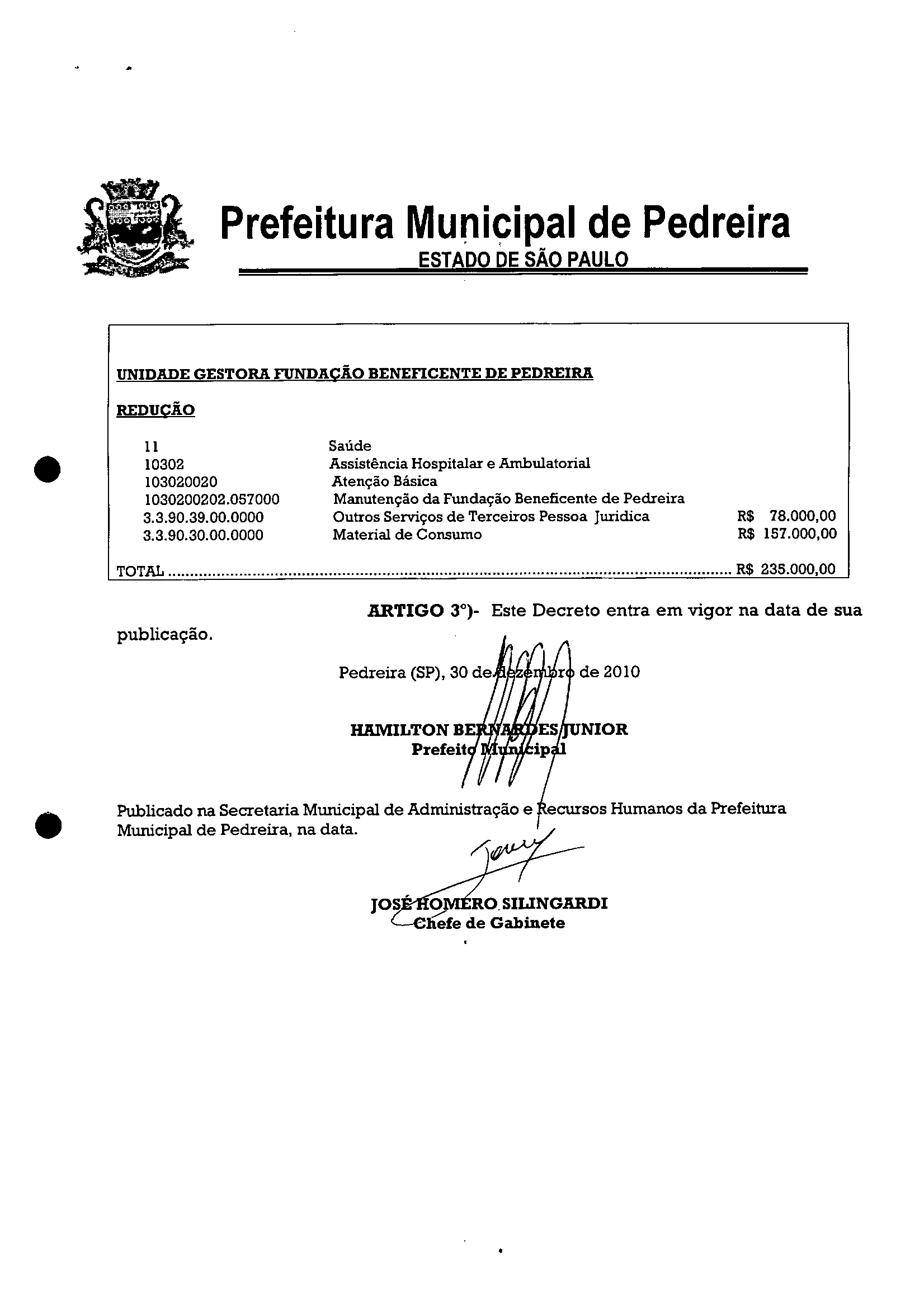 Ementa: Transposição e Remanejamento no valor de R$ 235.000,00