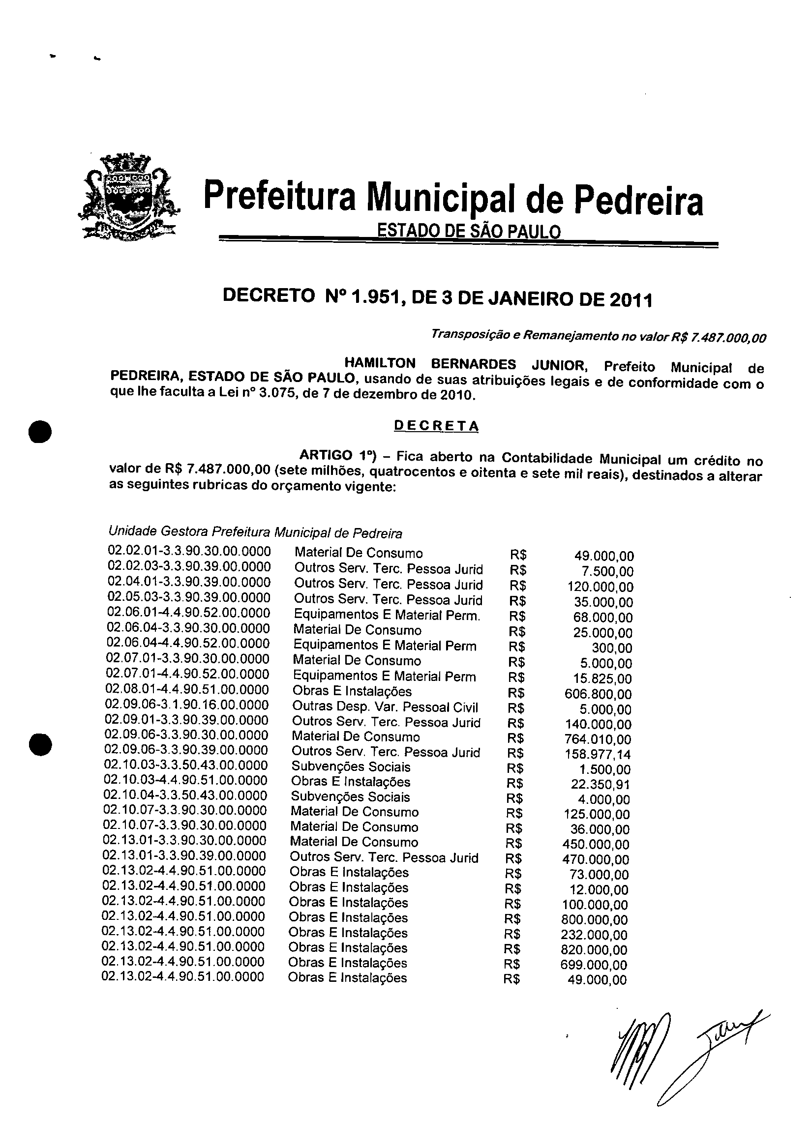 Decreto - N° 1951 de 03/01/2011