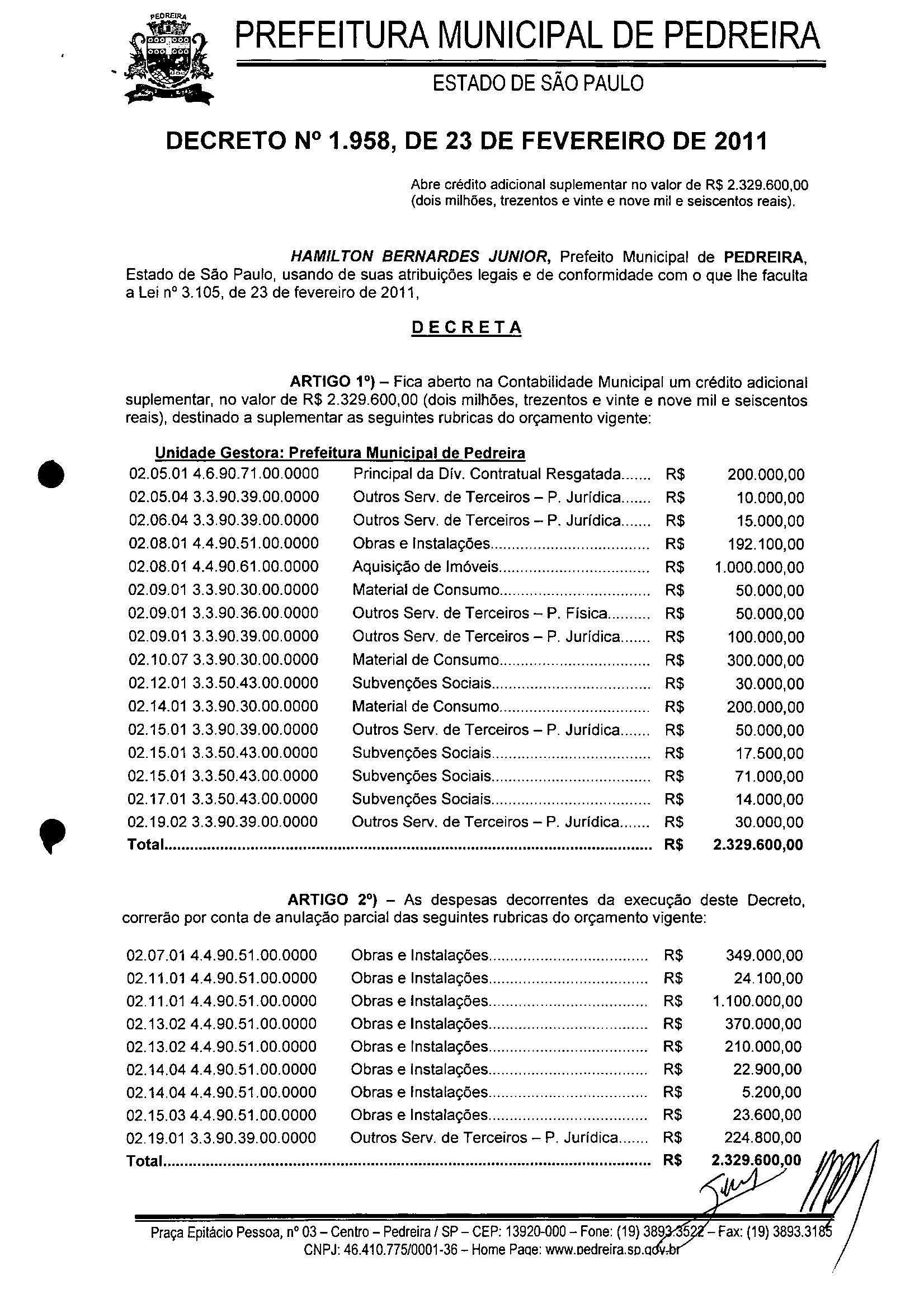 Decreto - N° 1958 de 23/02/2011