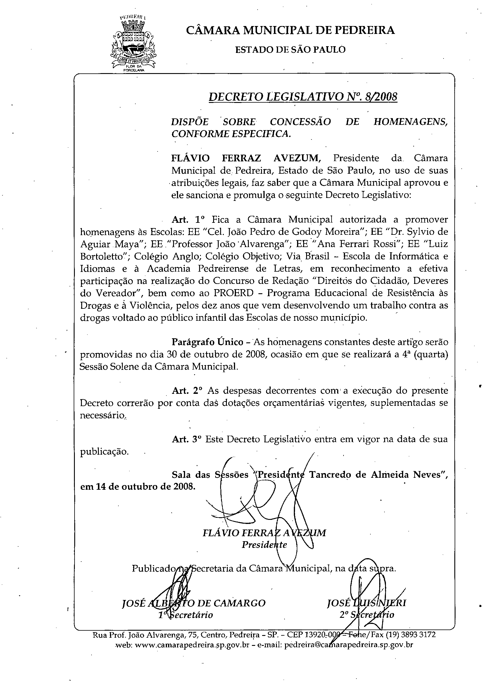 Ementa: DISPOE SOBRE CONCESSÃO DE HOMENAGENS, CONFORME ESPECIFICA .