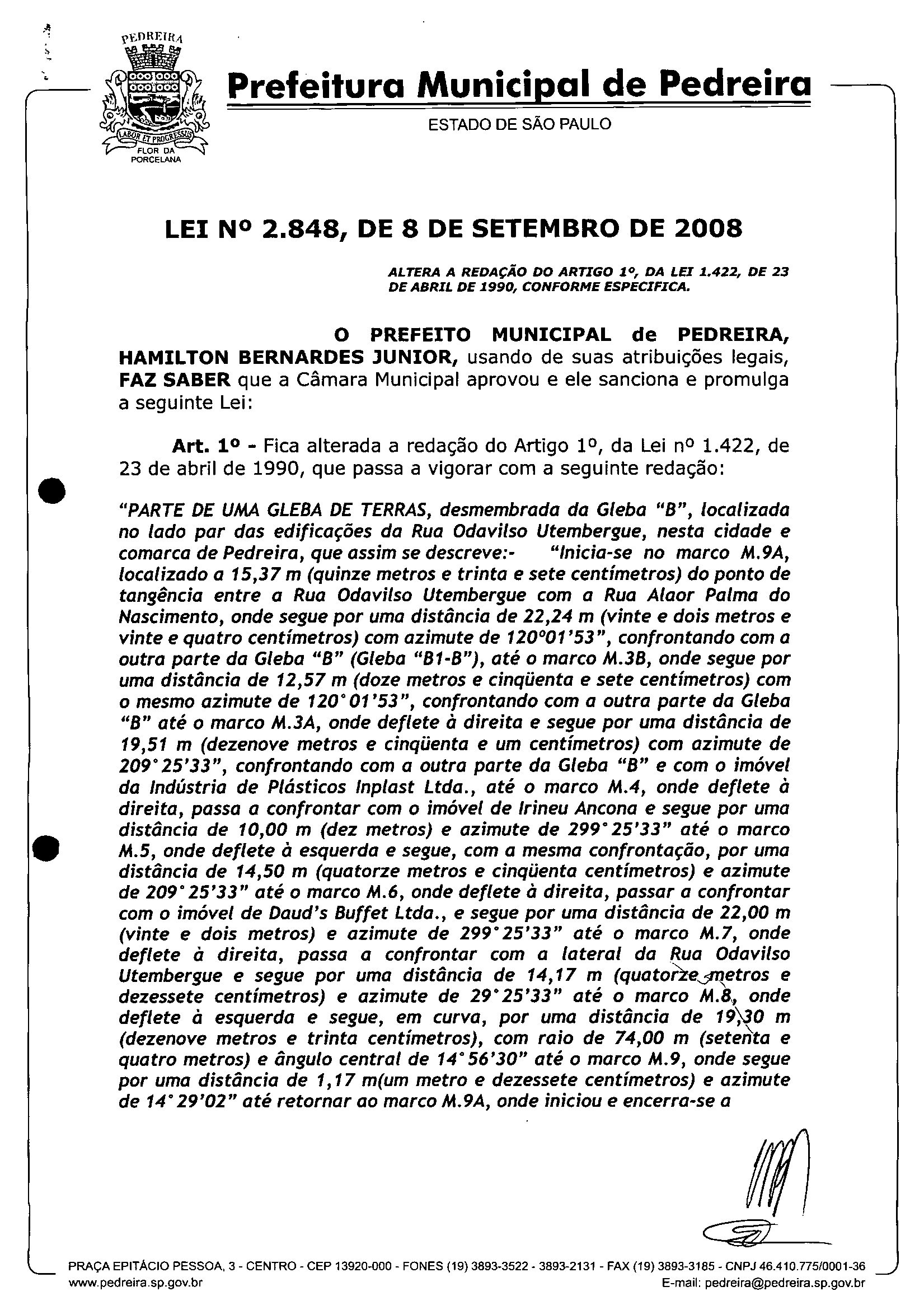 Ementa: ALTERA A REDAÇÃO DO ARTIGO 1º, DA LEI 1.422, DE 23 DE ABRIL DE 1990, CONFORME ESPECIFICA.