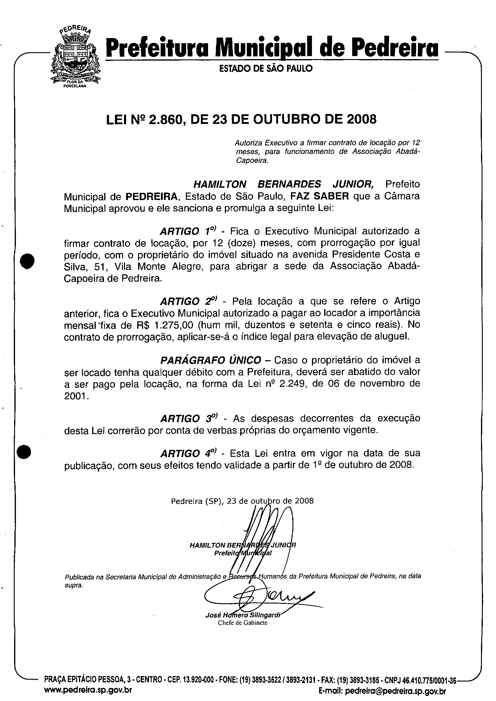 Ementa: Autoriza Executivo a firmar contrato de locação por 12 meses, para funcionamento de Associação Abadá-Capoeira.