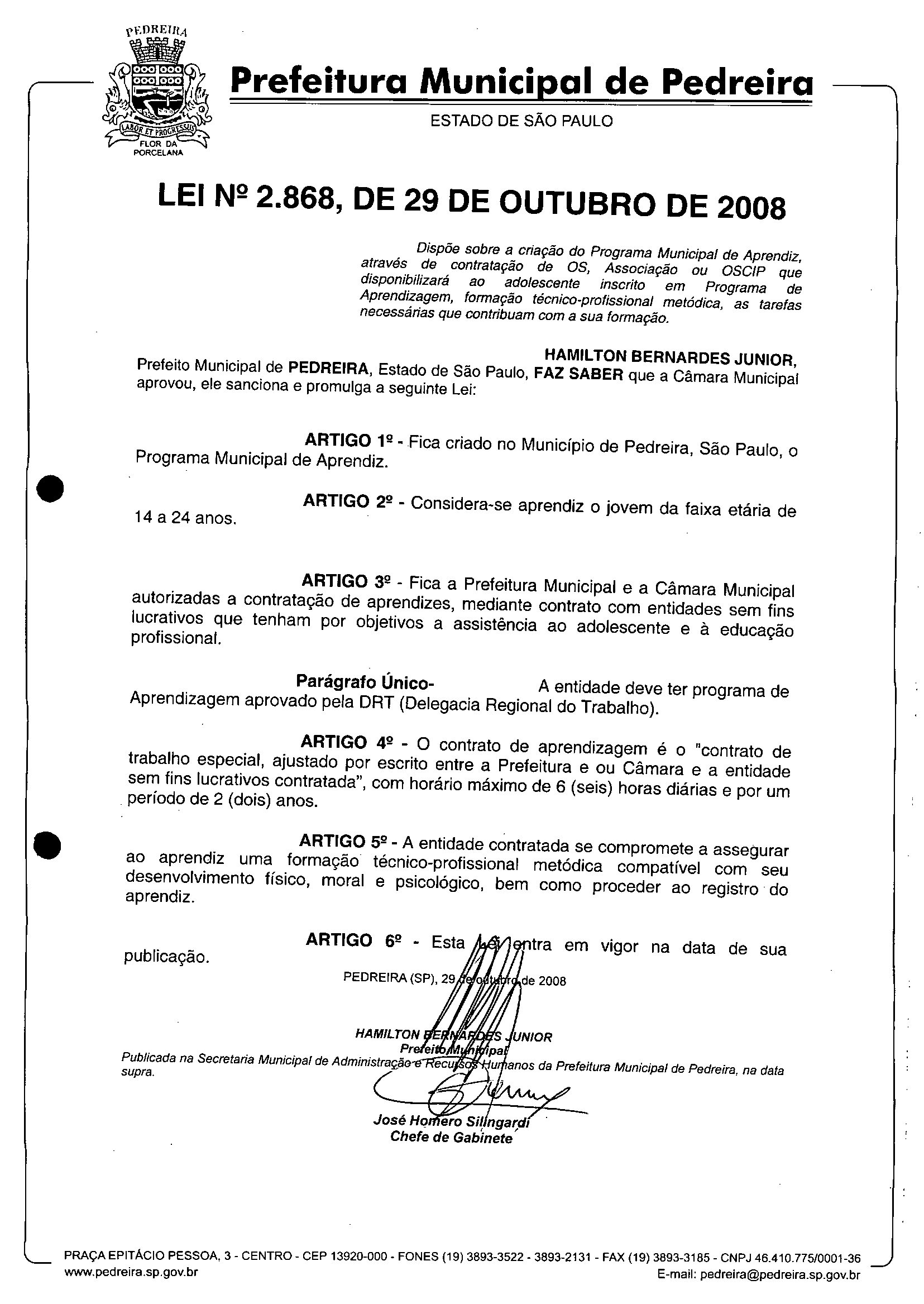 Ementa: Dispõe sobre a criação do Programa Municipal de Aprendiz, através de contratação de OS, Associação ou OSCIP que disponibílizará ao adolescente inscrito em Programa de Aprendizagem, formação técnico-profissional metódica, as tarefas necessárias que contribuam com a sua formação.