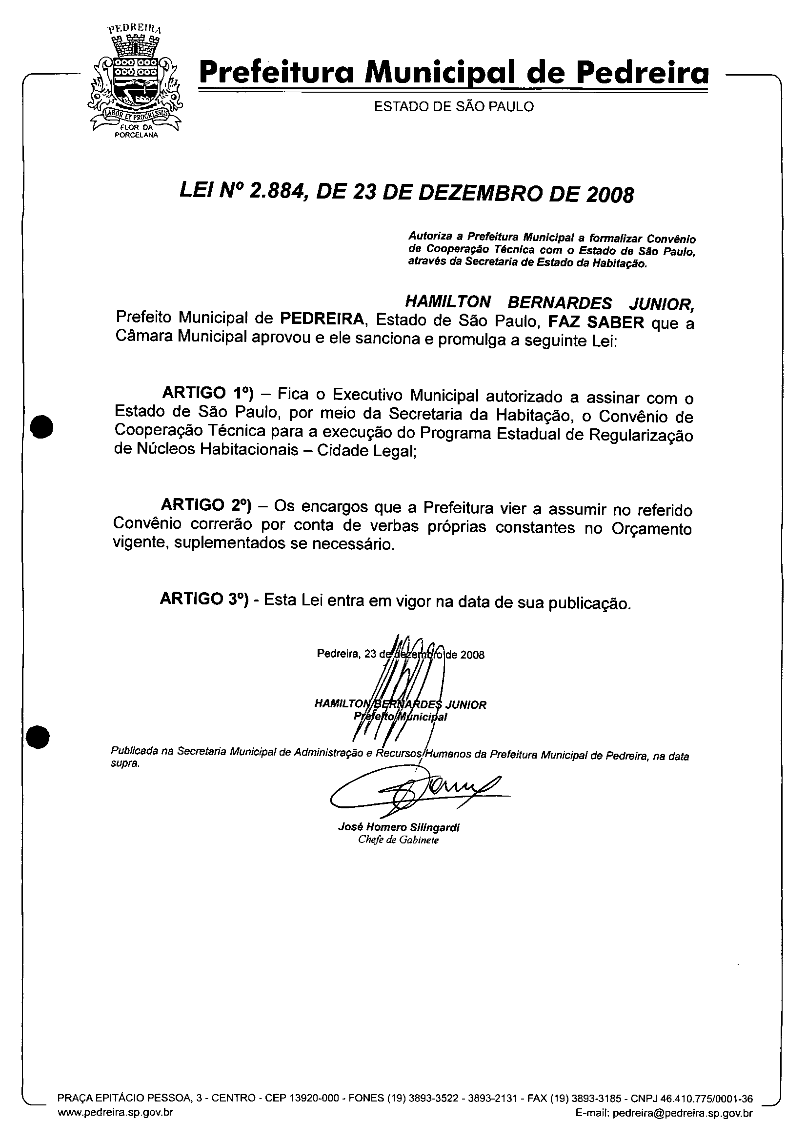 Ementa: Autoriza a Prefeitura Municipal a formalizar Convênio de Cooperação Técnica com o Estado de São Paulo, através da Secretaria de Estado da Habitação.