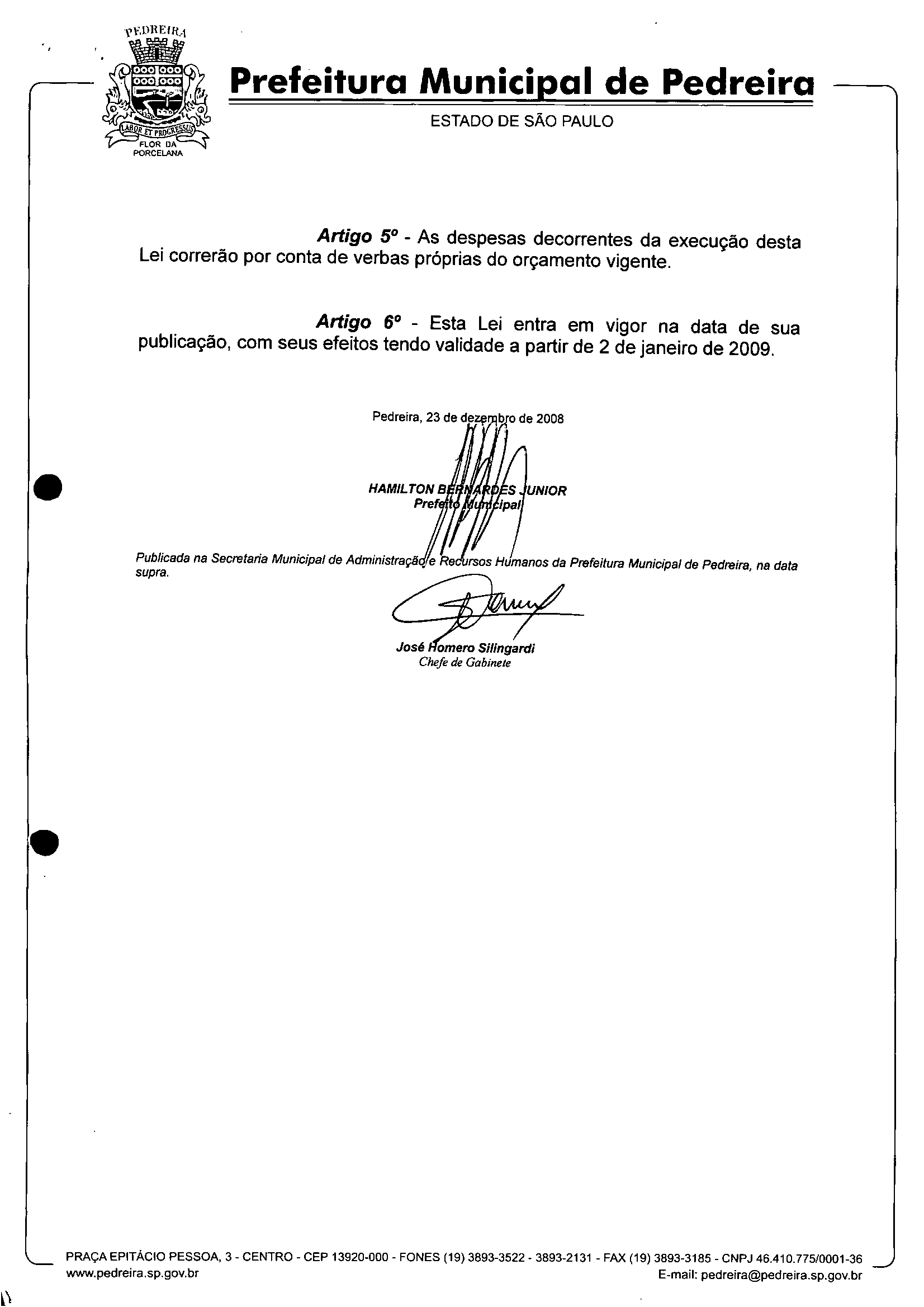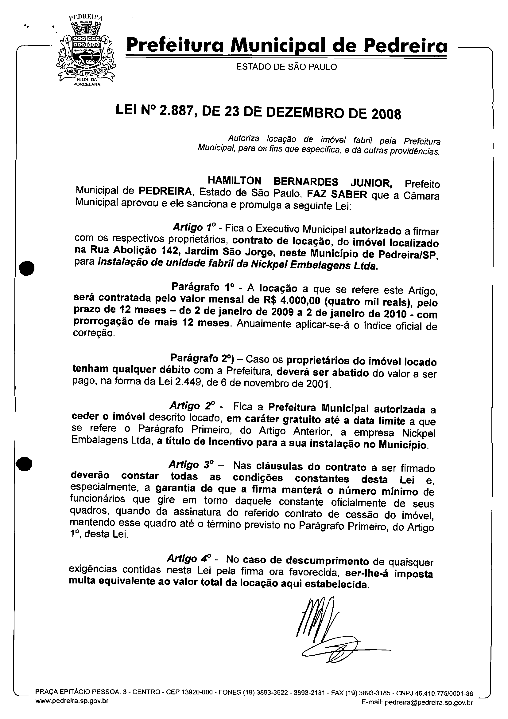 Lei Municipal - N° 2887 de 23/12/2008