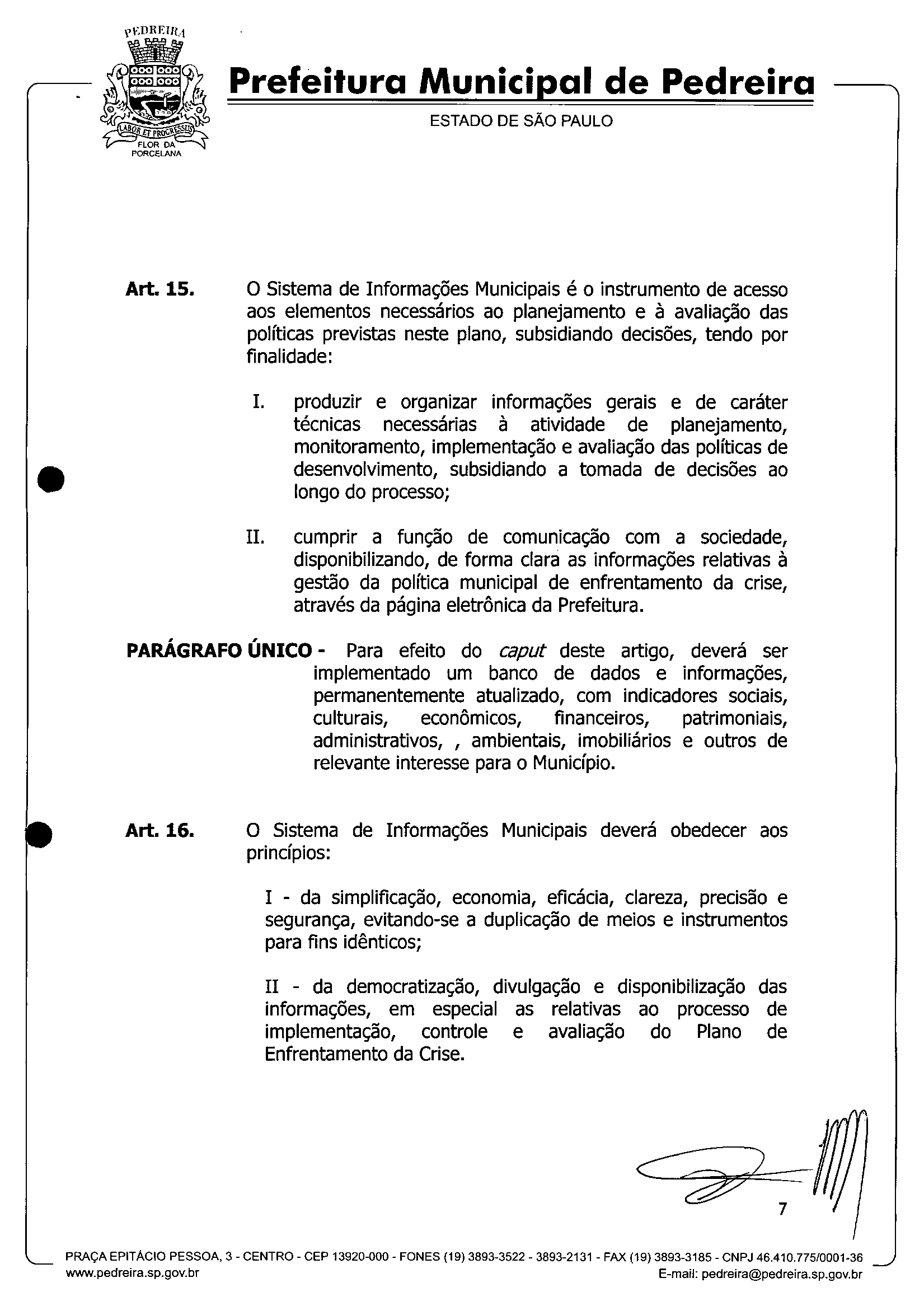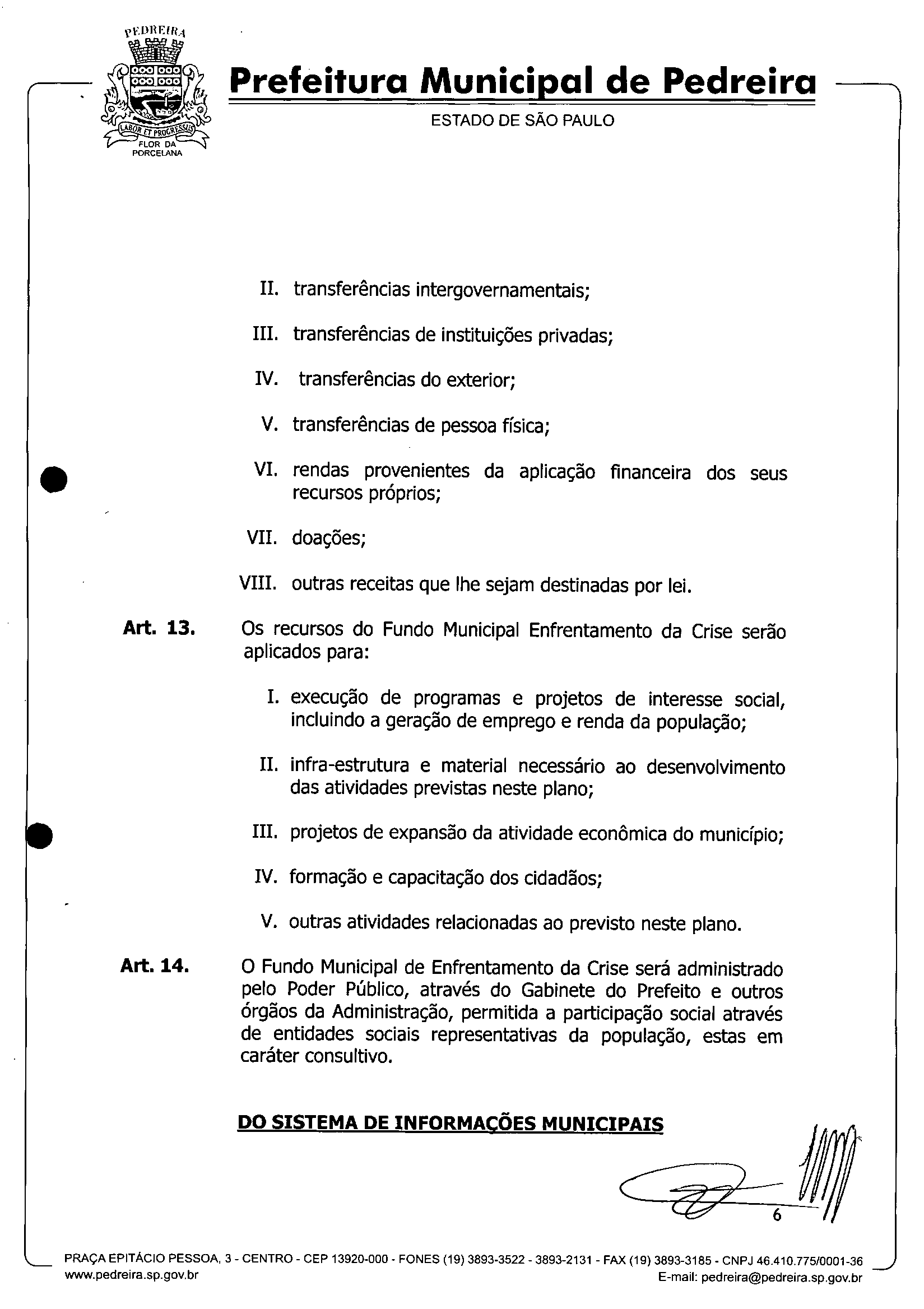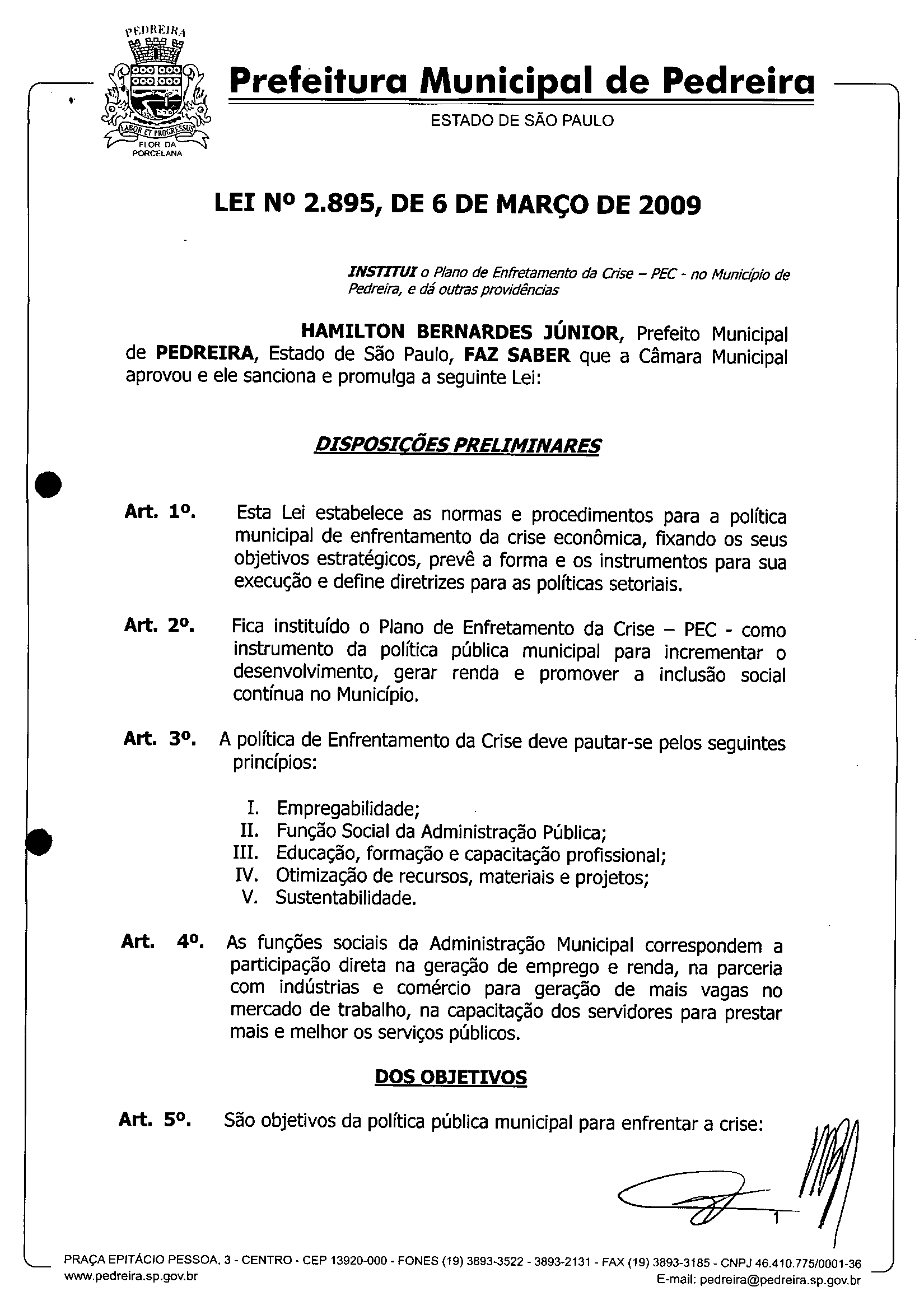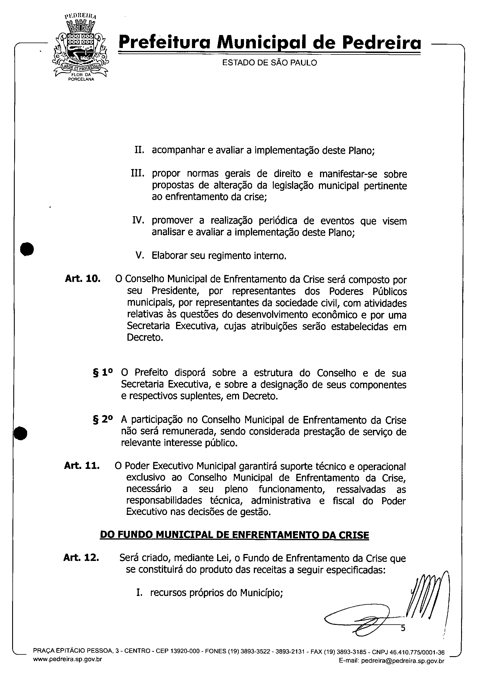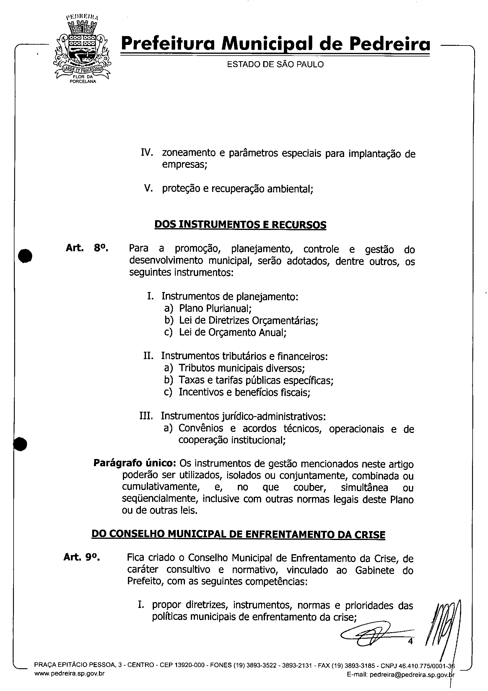 Ementa: IInstitui o Plano de Enfrentamento da Crise -PEC - no Município de Pedreira, e dá outras providências