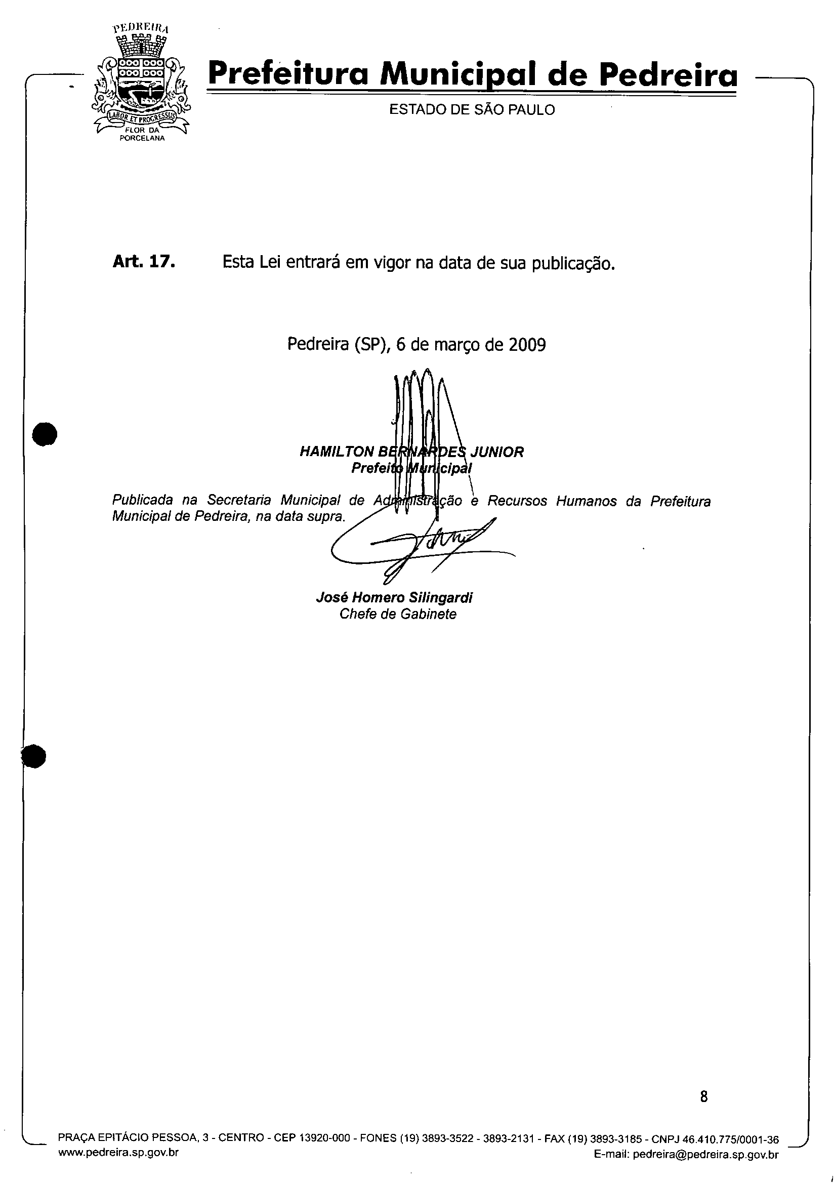 Lei Municipal - N° 2895 de 06/03/2009