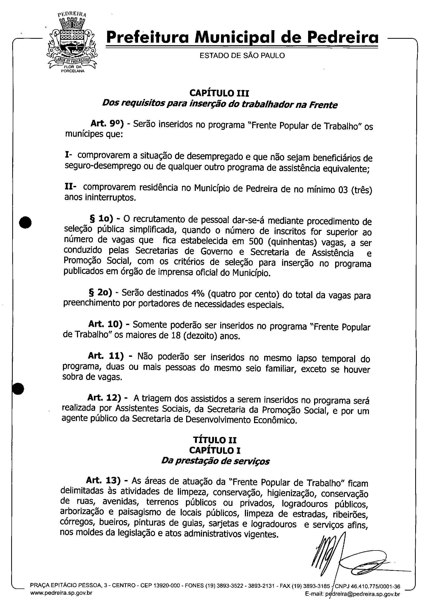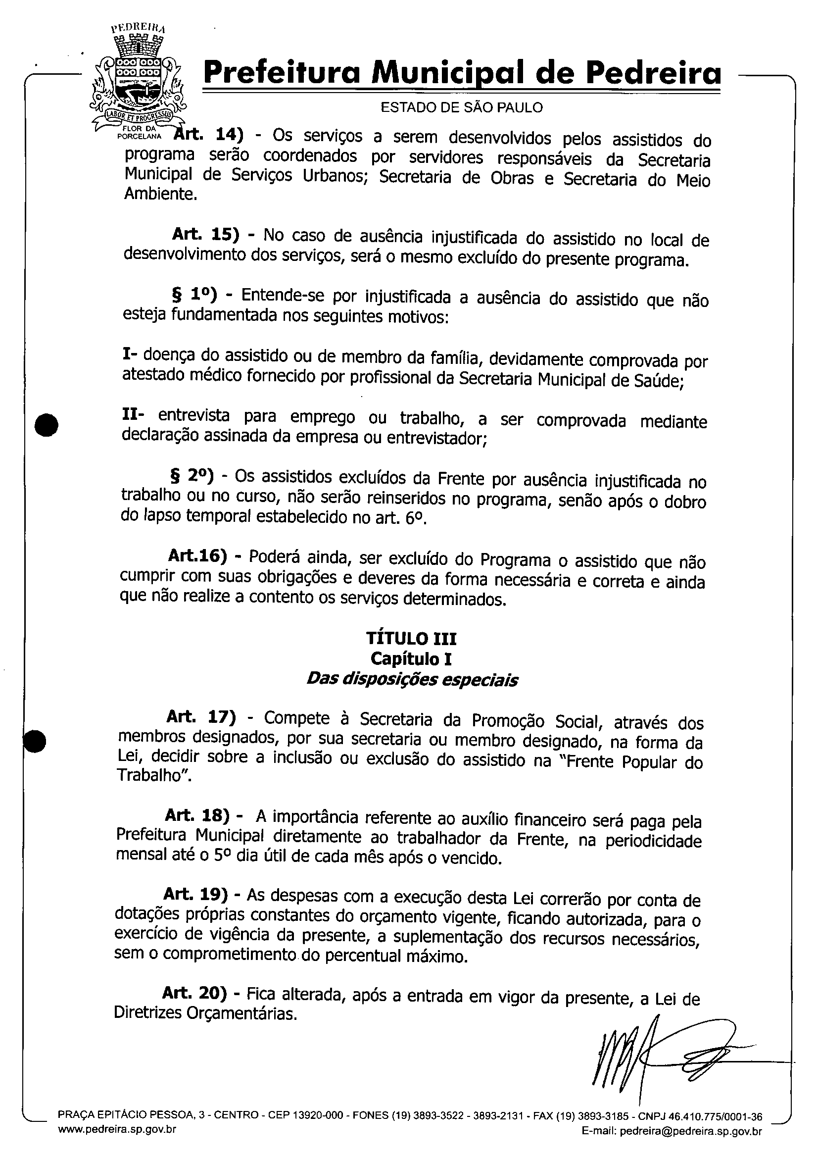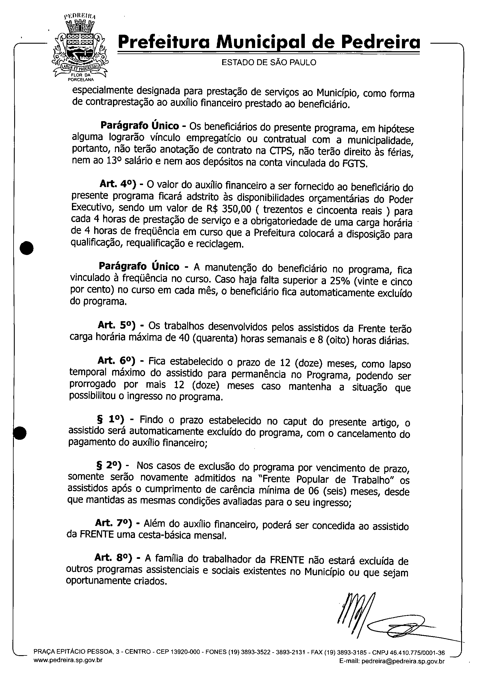 Ementa: Dispõe sobre a implantação do Programa Assistencial Frente Popular de Trabalho, e dá outras providências.