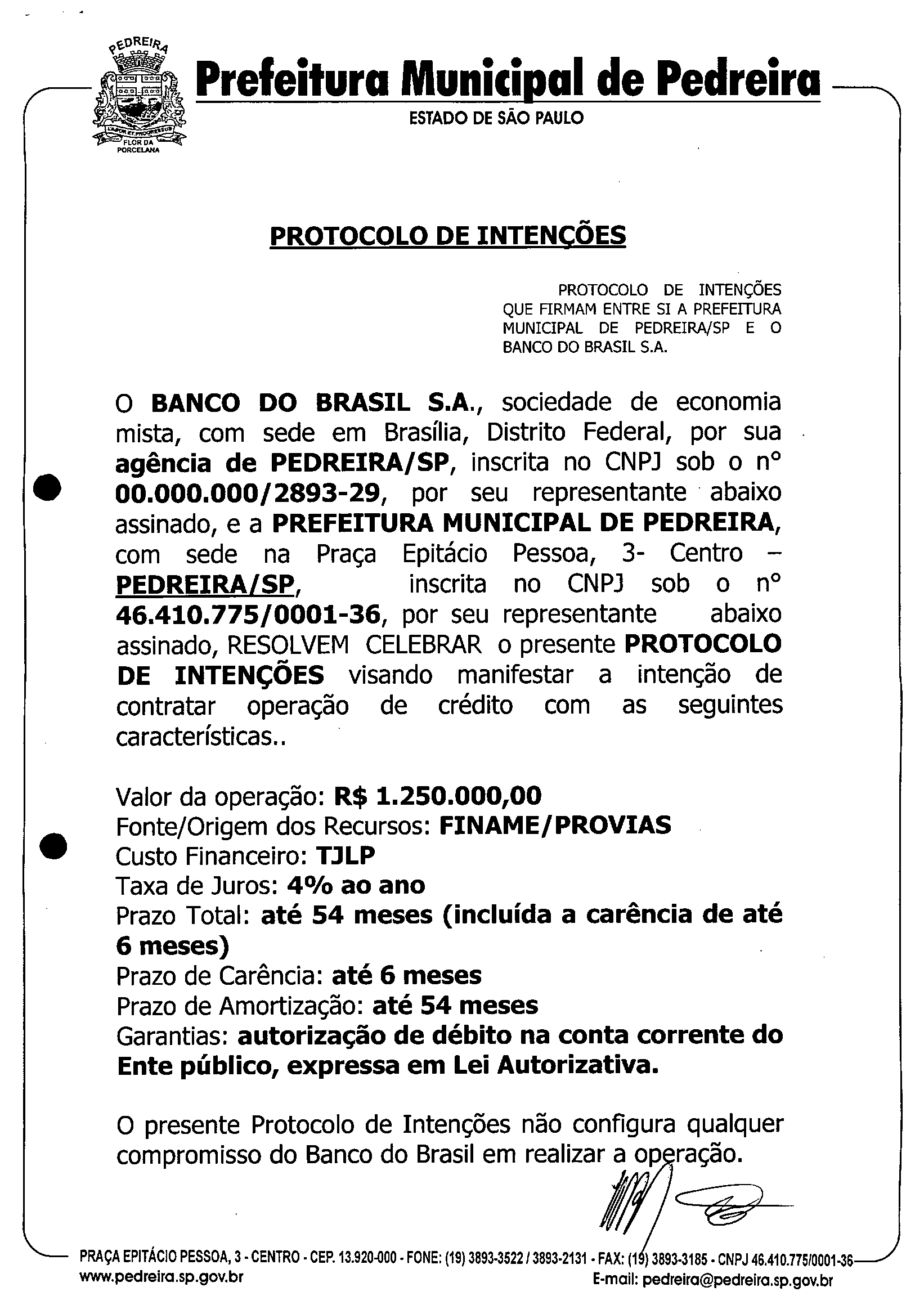 Ementa: Autoriza o Poder Executivo a contratar financiamento junto ao Banco do Brasil SA e dá outras providências correlatas.