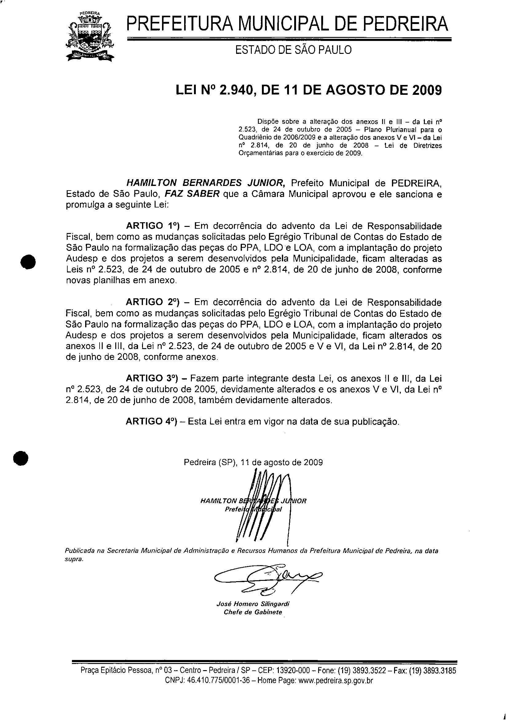 Ementa: Dispõe sobre a alteração dos anexos II e III -da lei nº 2.523, de 24 de outubro de 2005 -Plano Plurianual para o Quadriênio de 2006/2009 e a alteração dos anexos V e VI -da Lei nº 2.814, de 20 de junho de 2008 -Lei de Diretrizes Orçamentárias para o exercício de 2009