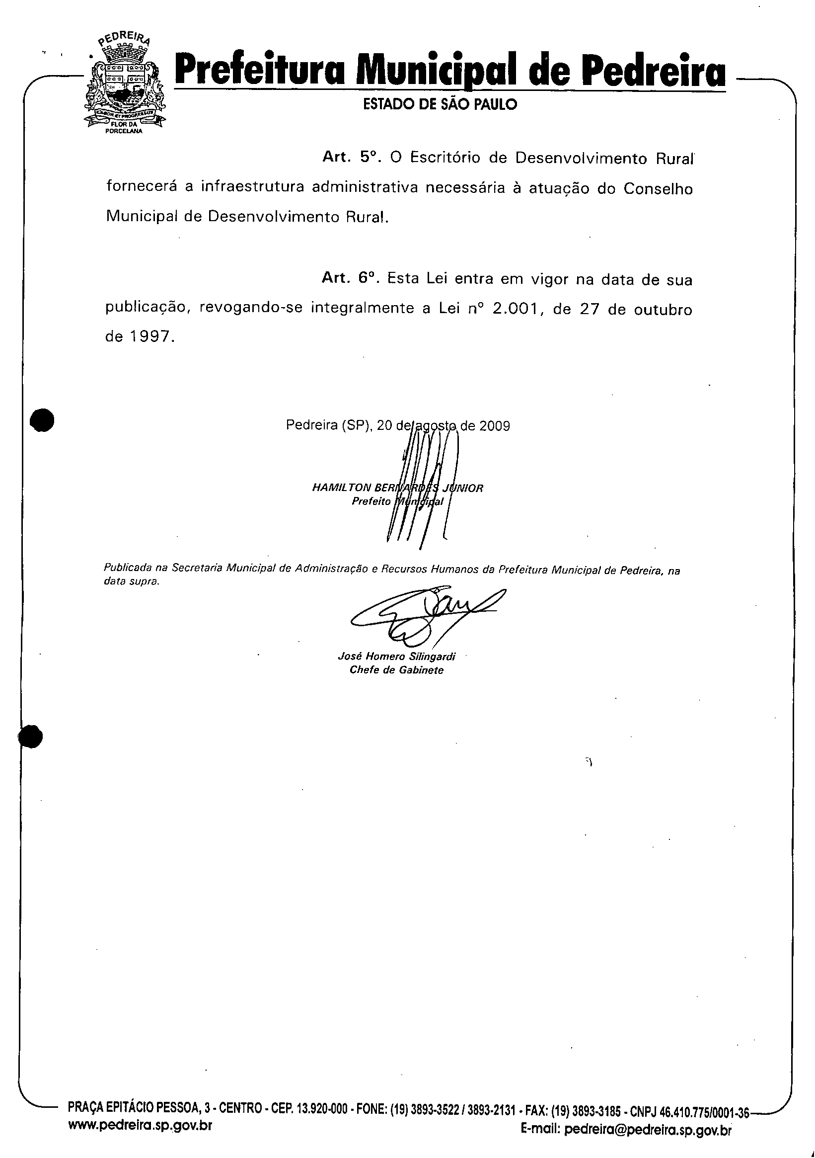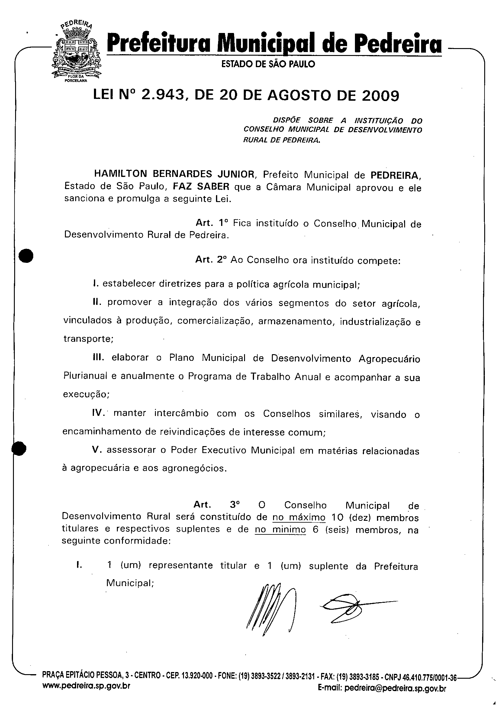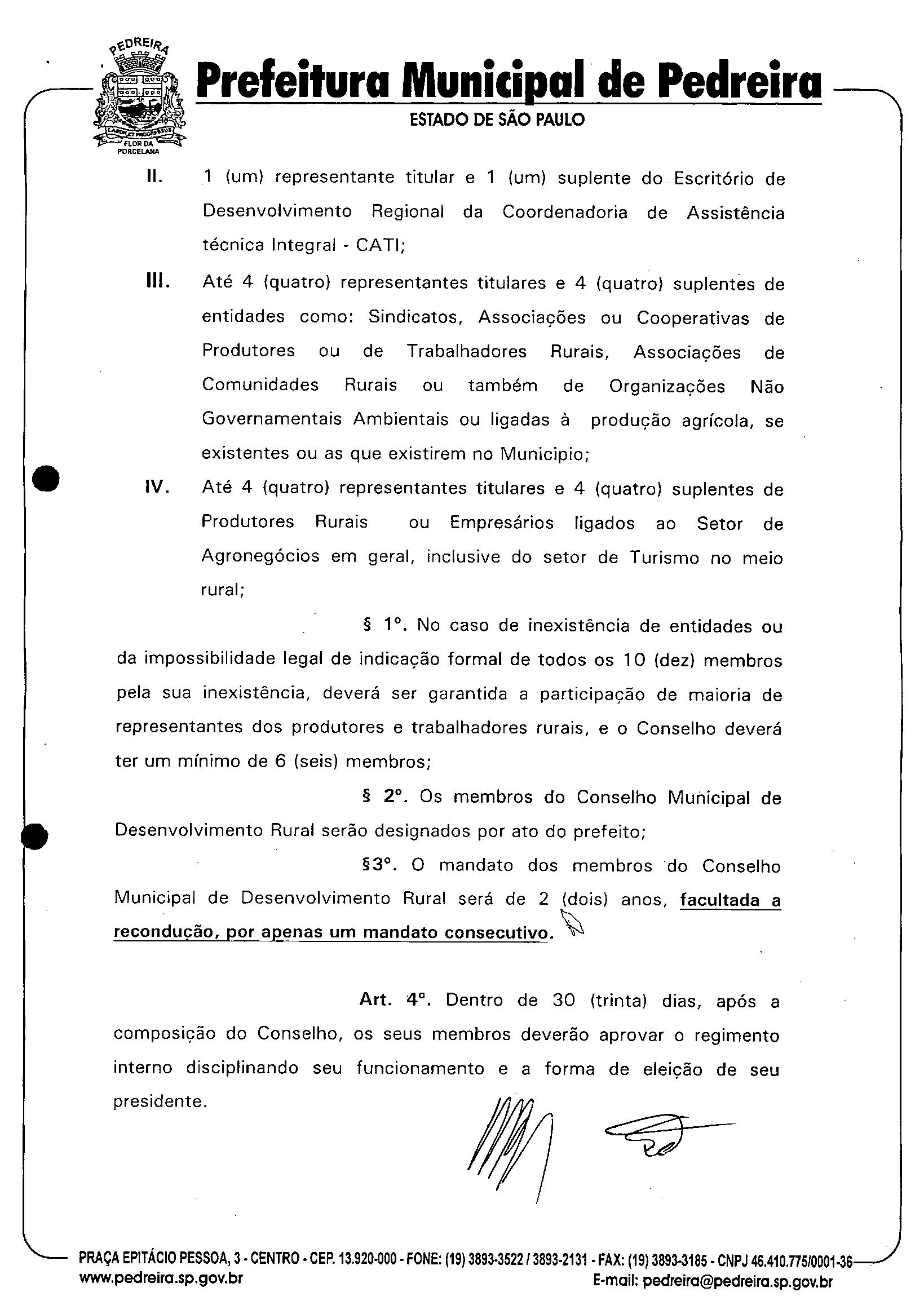 Ementa: DISPÕE SOBRE A INSTITUIÇÃO DO, CONSELHO MUNICIPAL DE DESENVOLVIMENTO RURAL DE PEDREIRA.