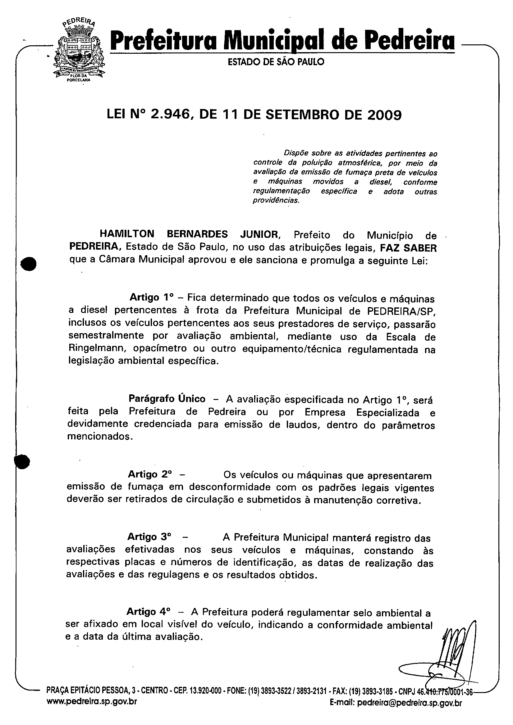 Ementa: Dispõe sobre as atividades pertinentes ao controle da poluição atmosférica, por meio da avaliação da emissão de fumaça preta de veiculos e máquinas movidos a diesel, conforme regulamentação especifica e adota outras providências.
