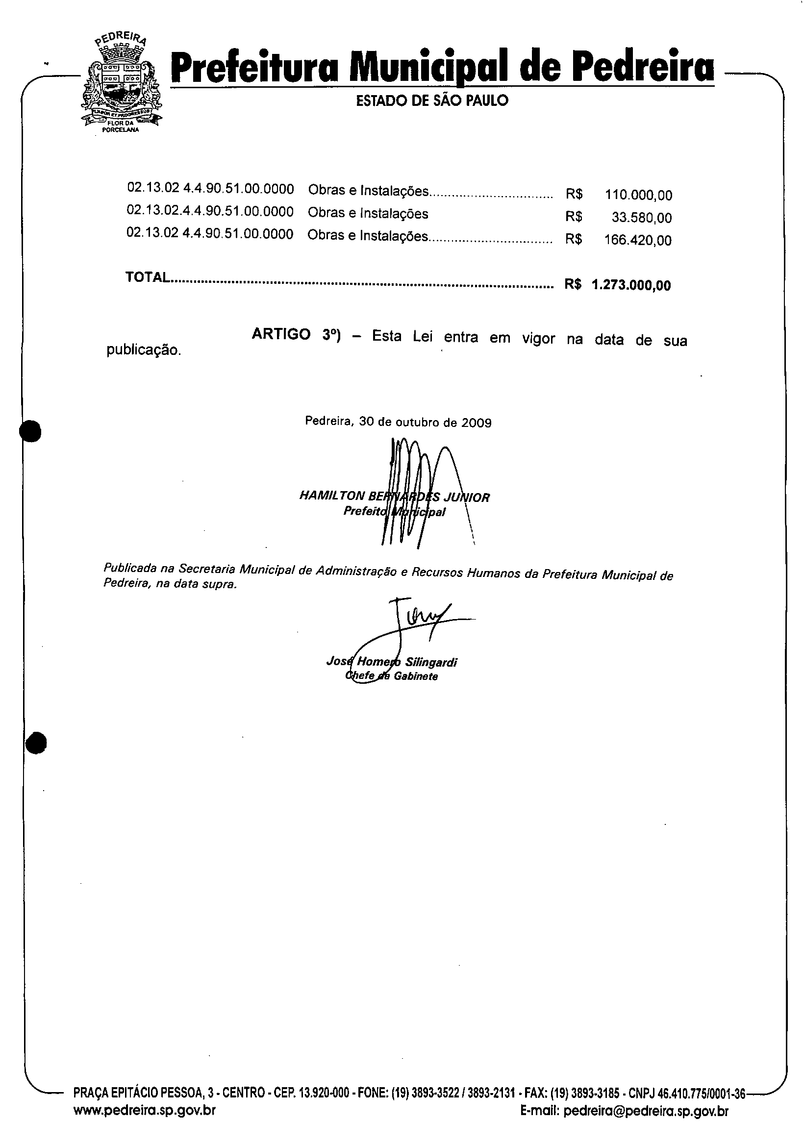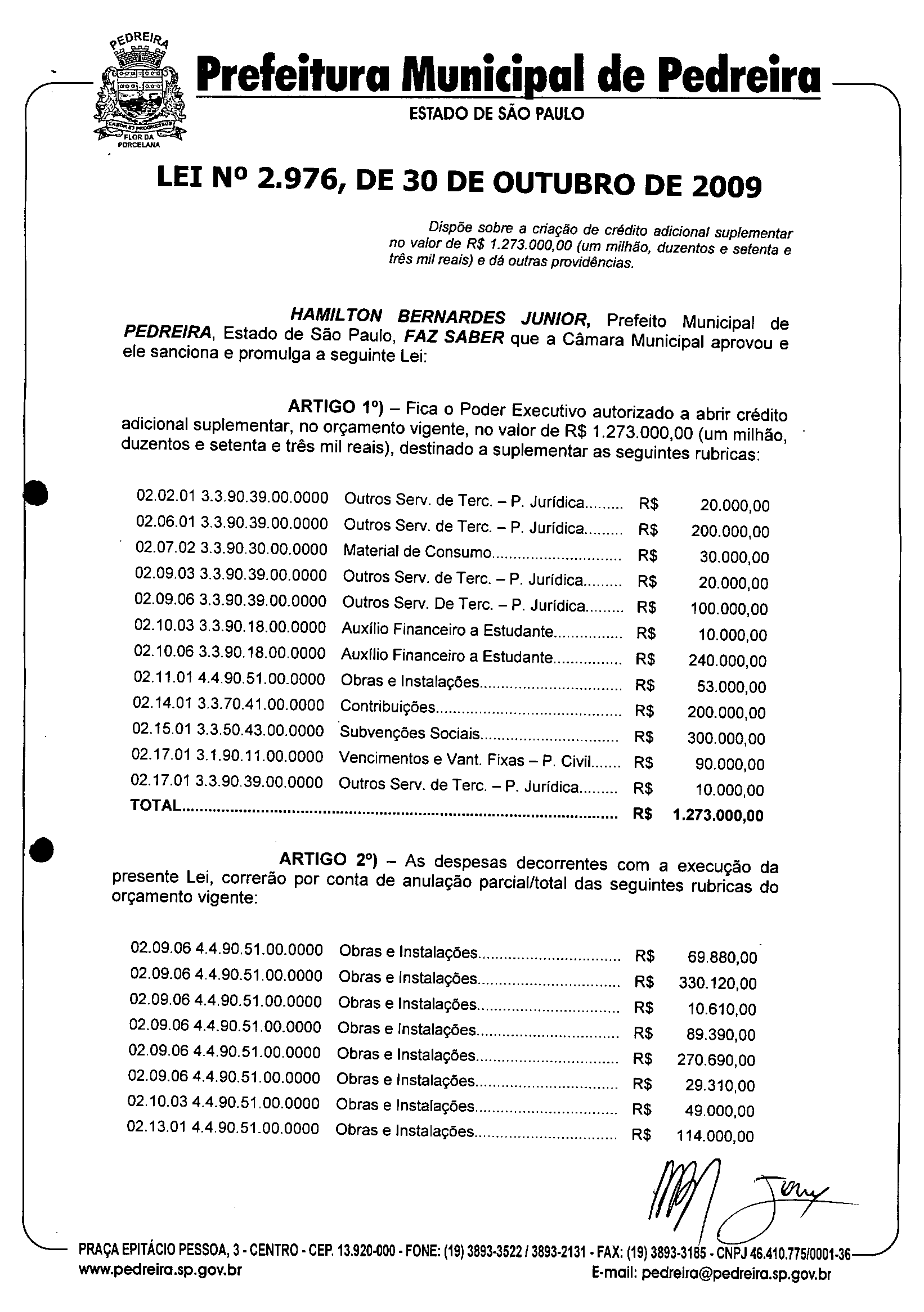 Lei Municipal - N° 2976 de 30/10/2009