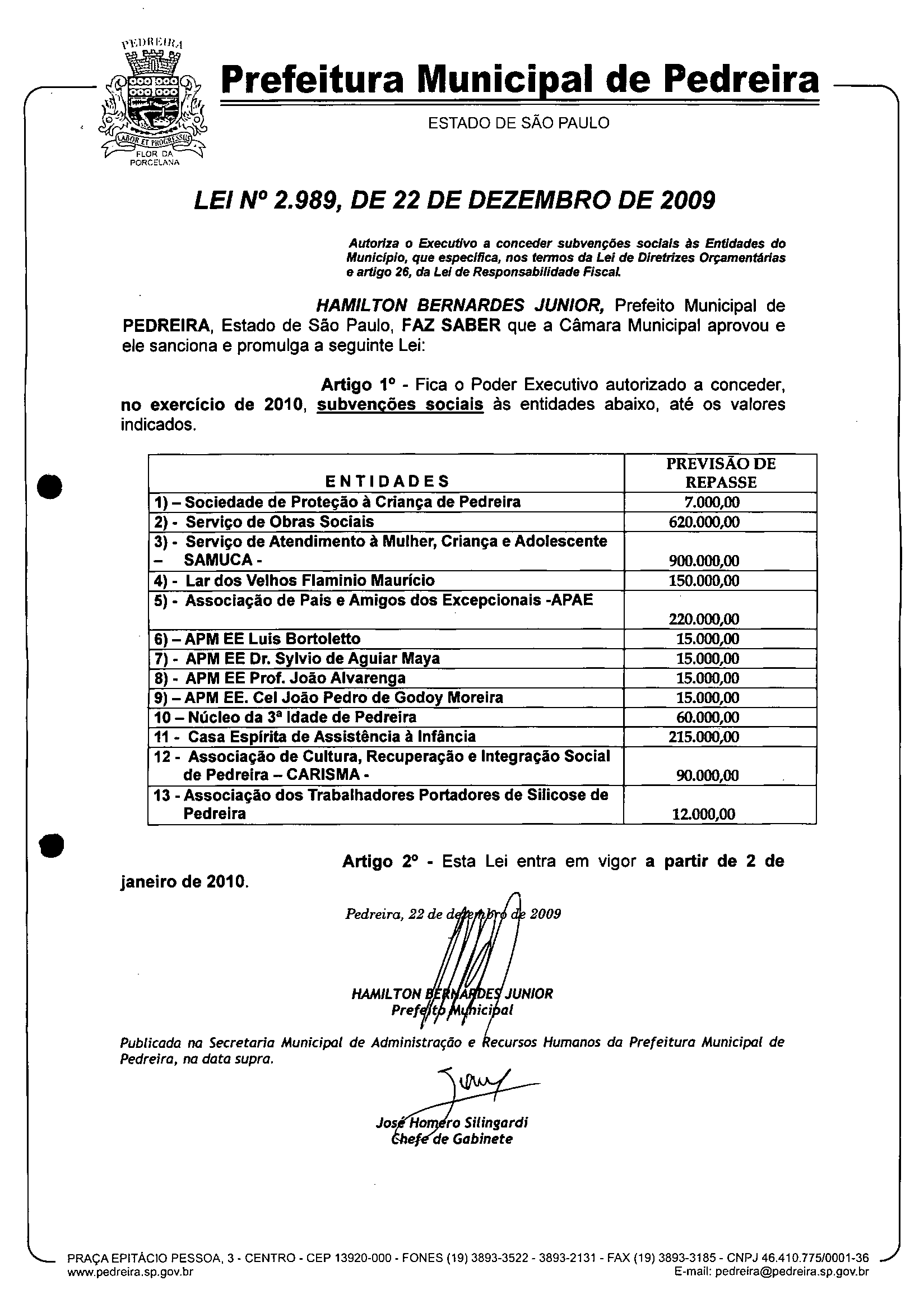 Ementa: Autoriza o Executivo a conceder subvenções sociais às Entidades do Municlplo, que especifica, nos tennos da Lei de Diretrizes Orçamentêlrlas e artigo 26, da Lei de Responsabilidade FiscaL