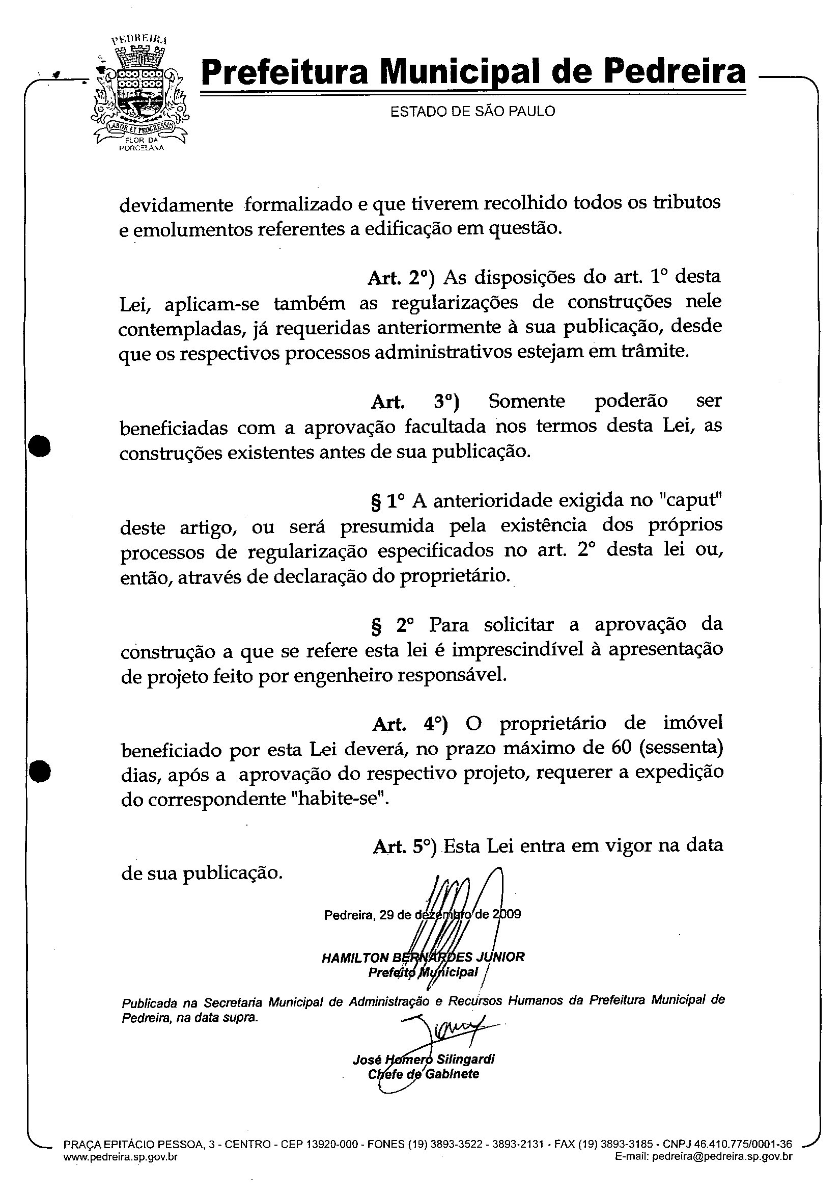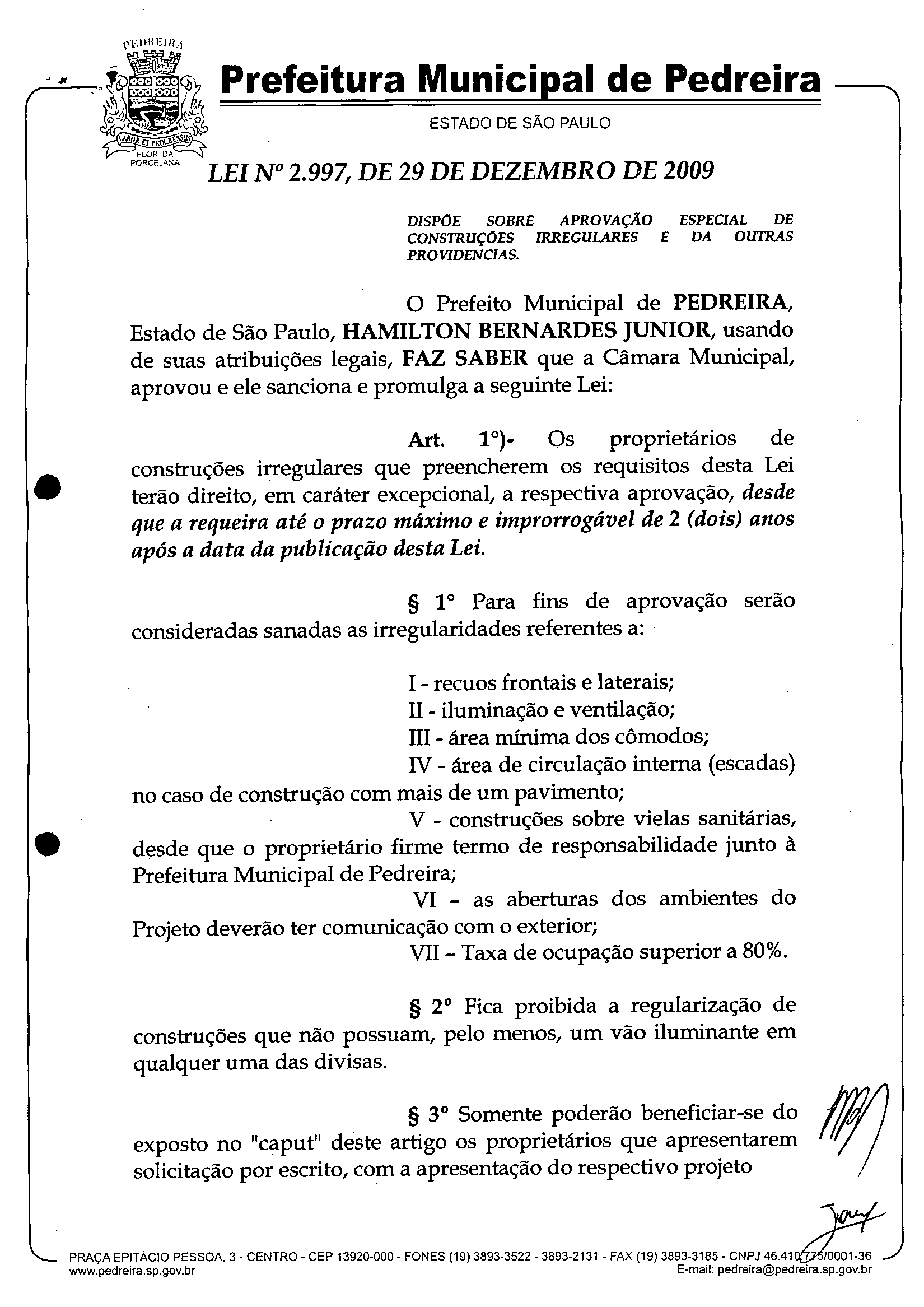 Lei Municipal - N° 2997 de 29/12/2009
