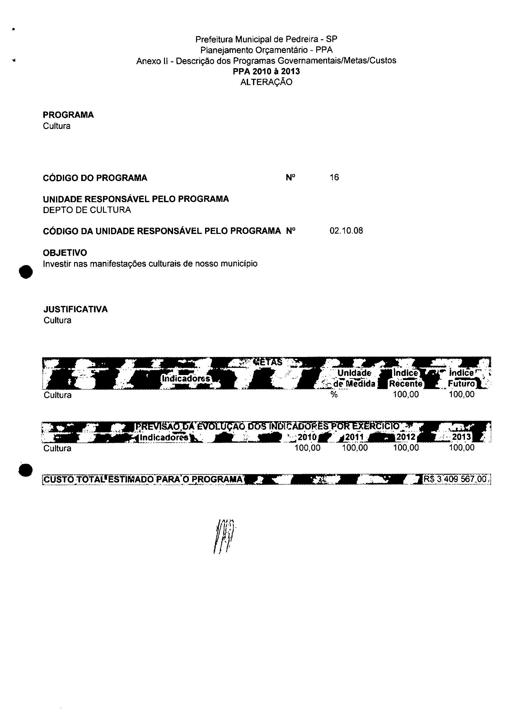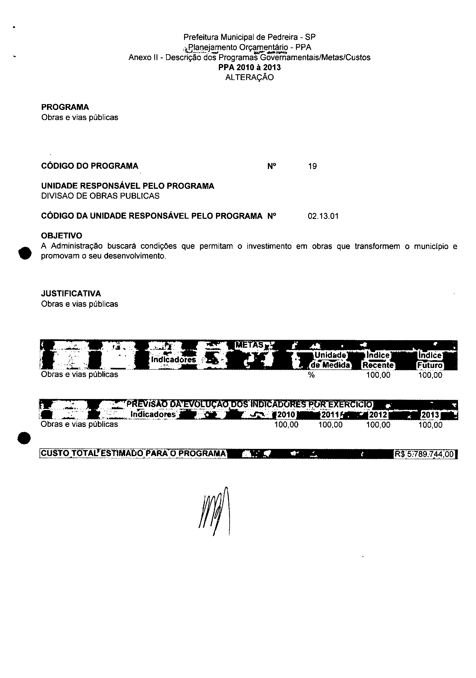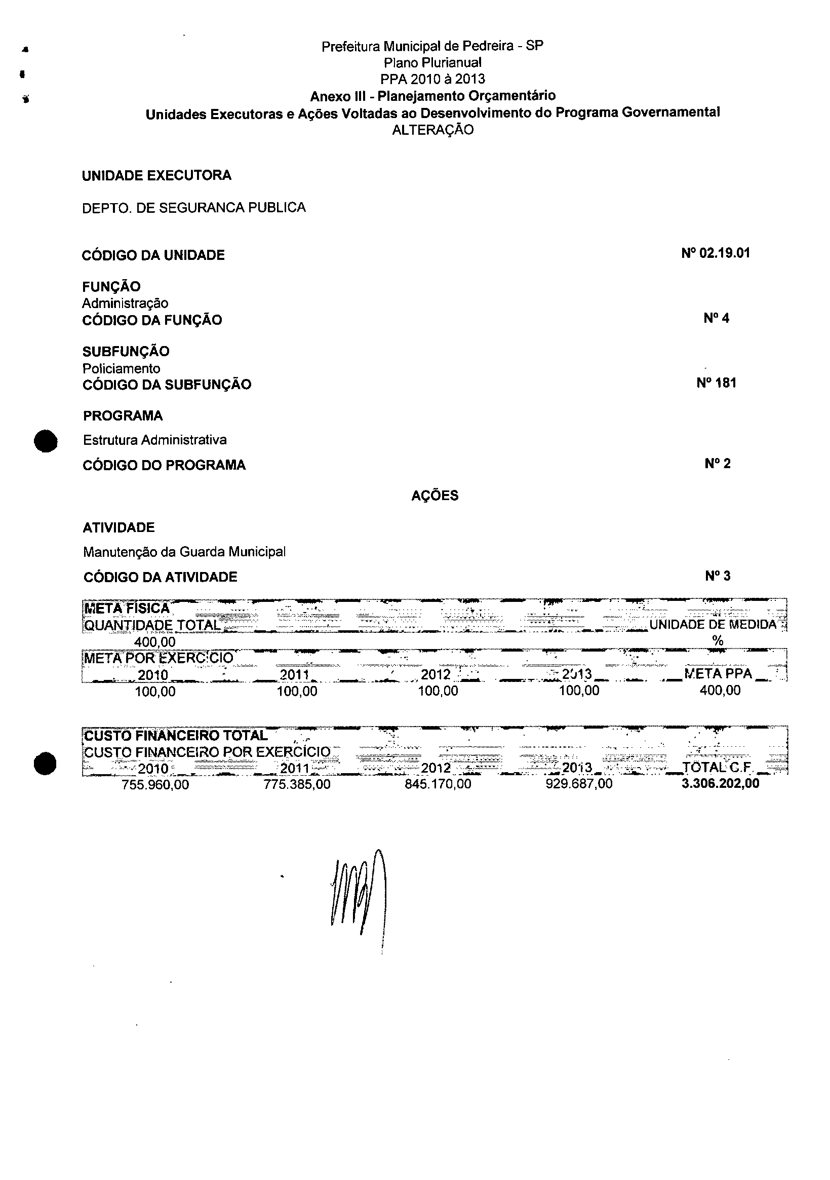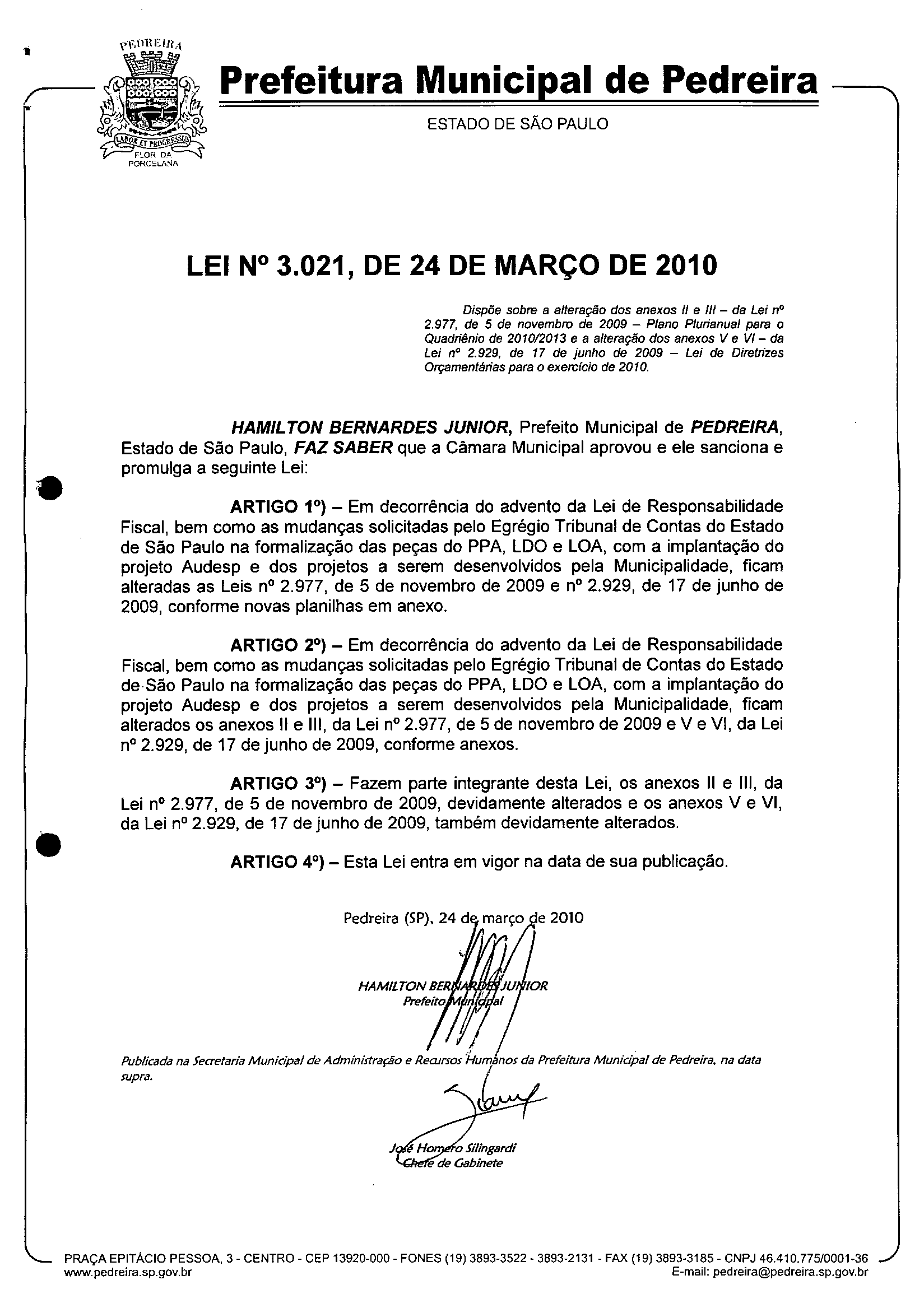 Ementa: Dispõe sobre a alteração dos anexos II e III -da Lei nº 2.977, de 5 de novembro de 2009 -Plano Plurianual para o Quadriênio de 201012013 e a alteração dos anexos Ve VI-da Lei nº 2.929, de 17 de junho de 2009 -Lei de Diretn'zes Orçamentárias para o exercicio de 2010.