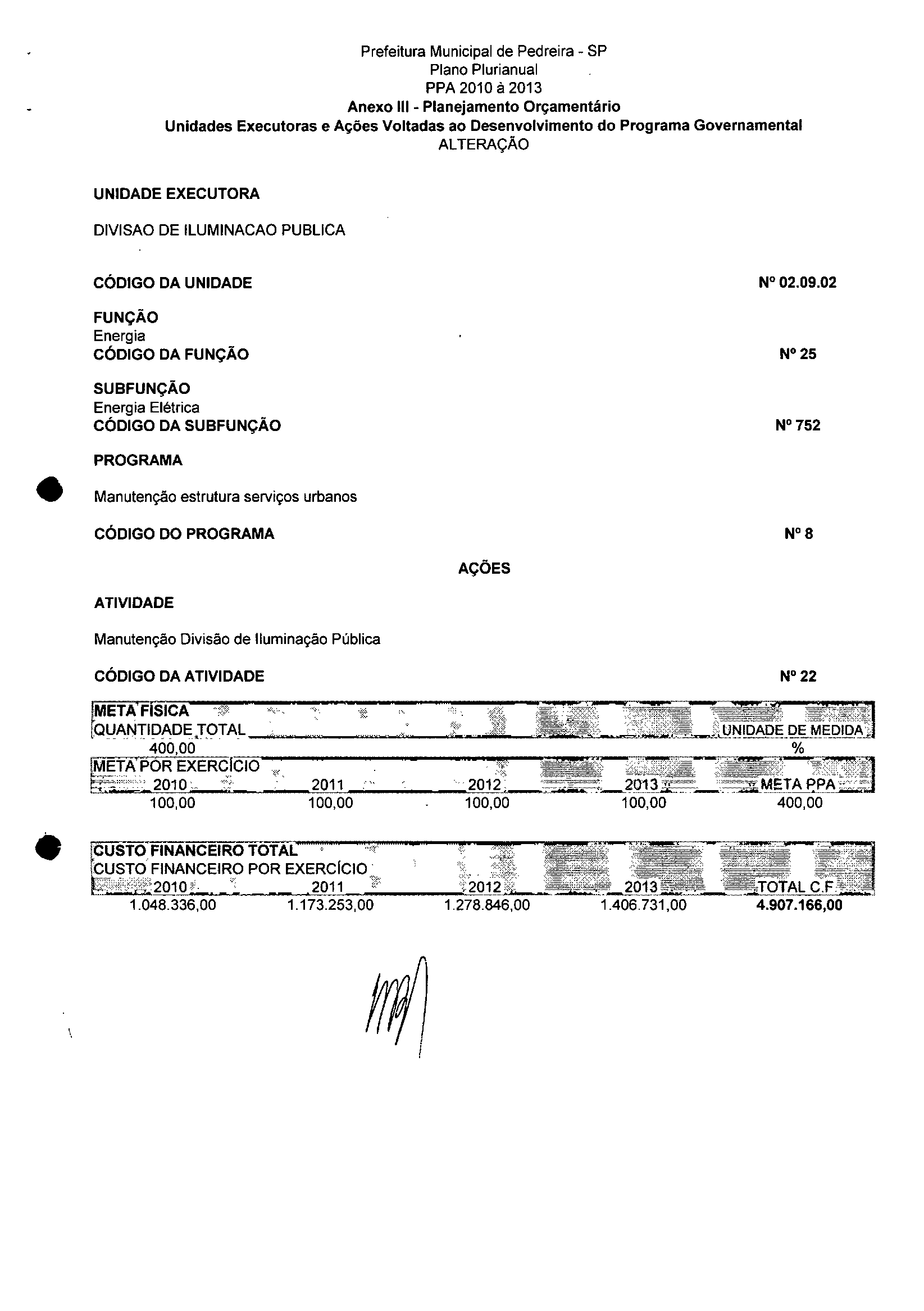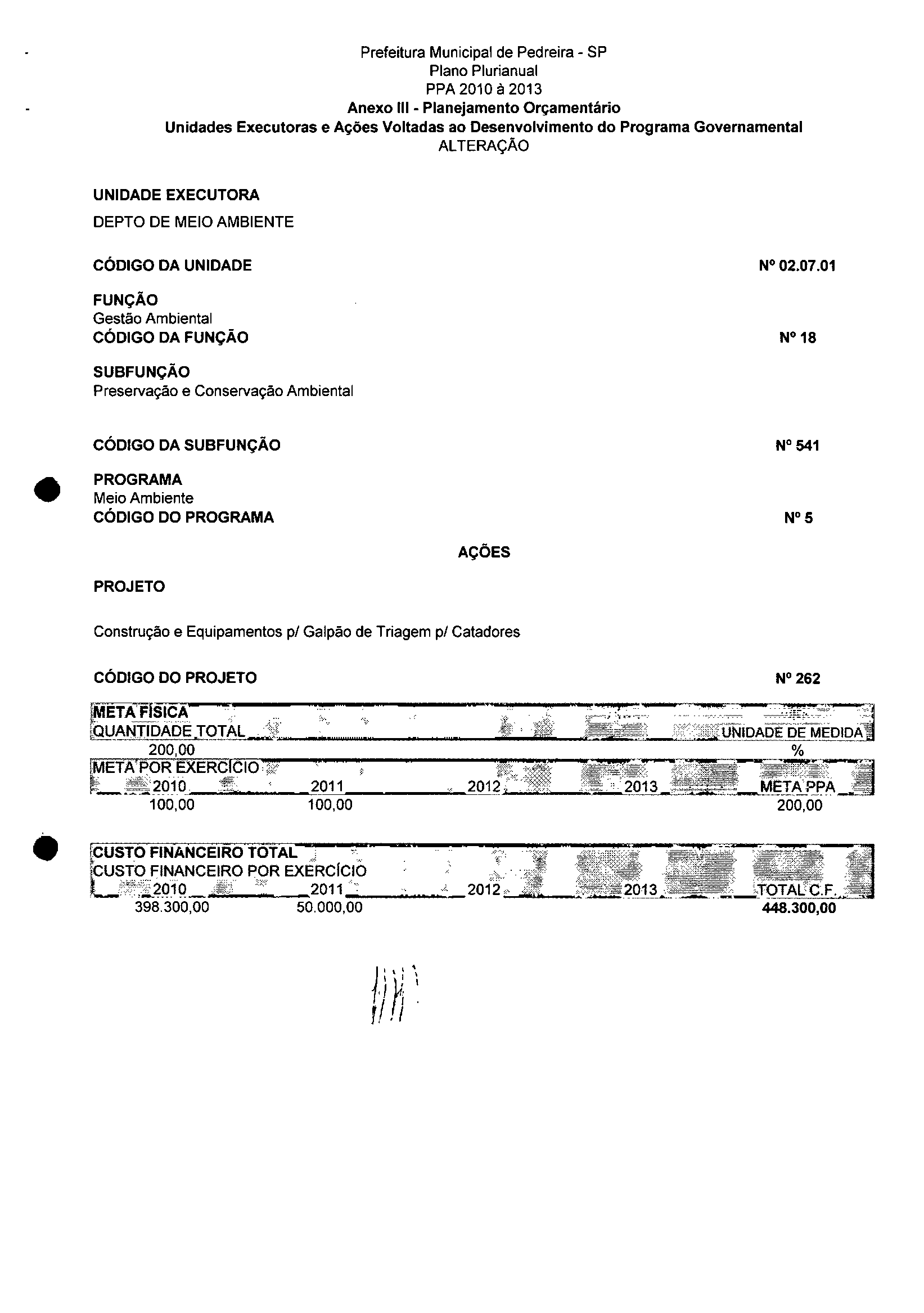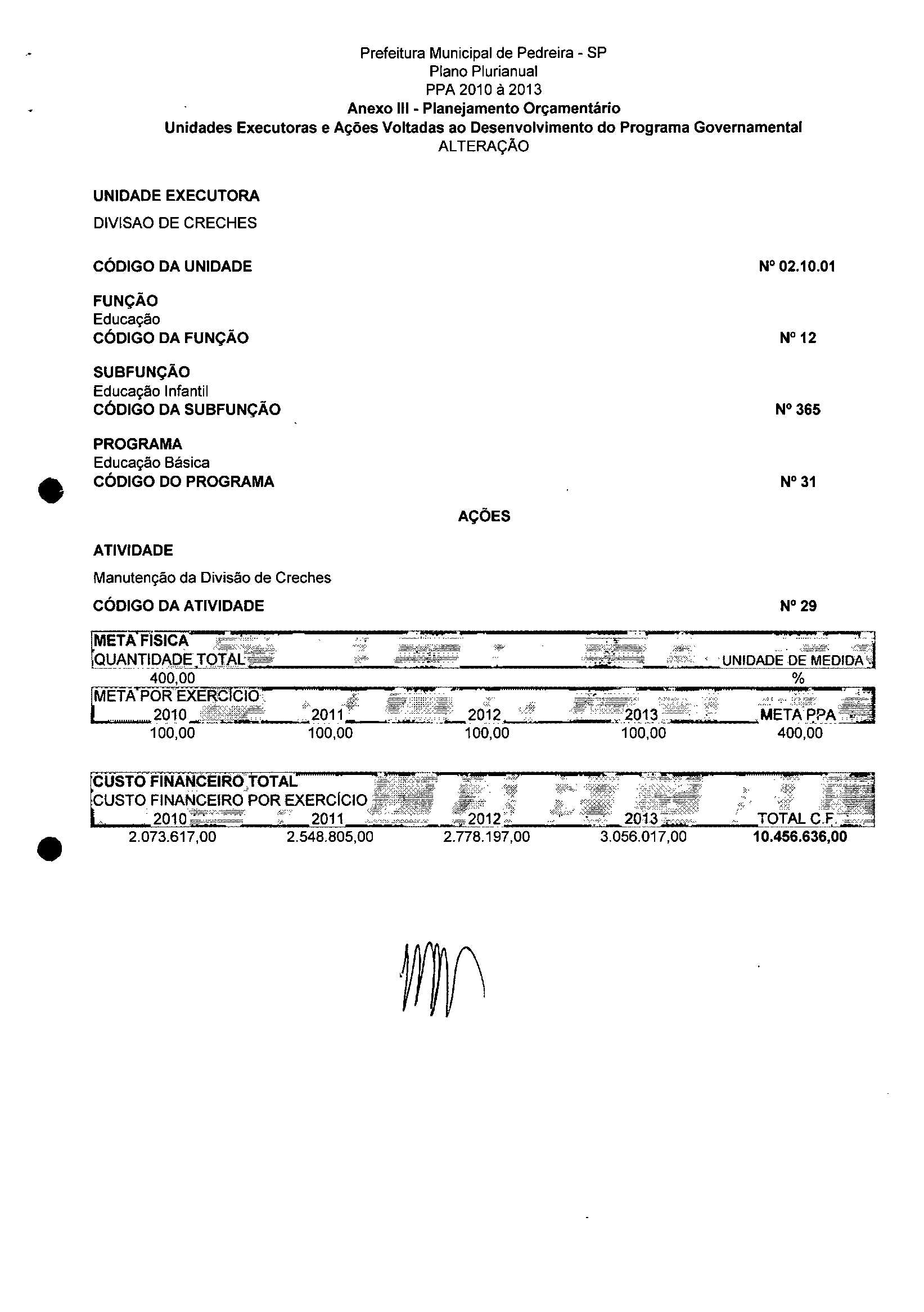 Ementa: Dispõe sobre a alteração dos anexos II e III -da Lei nº 2.977, de 5 de novembro de 2009 -Plano Plurianual para o Quadriênio de 201012013 e a alteração dos anexos Ve VI-da Lei nº 2.929, de 17 de junho de 2009 -Lei de Diretn'zes Orçamentárias para o exercicio de 2010.