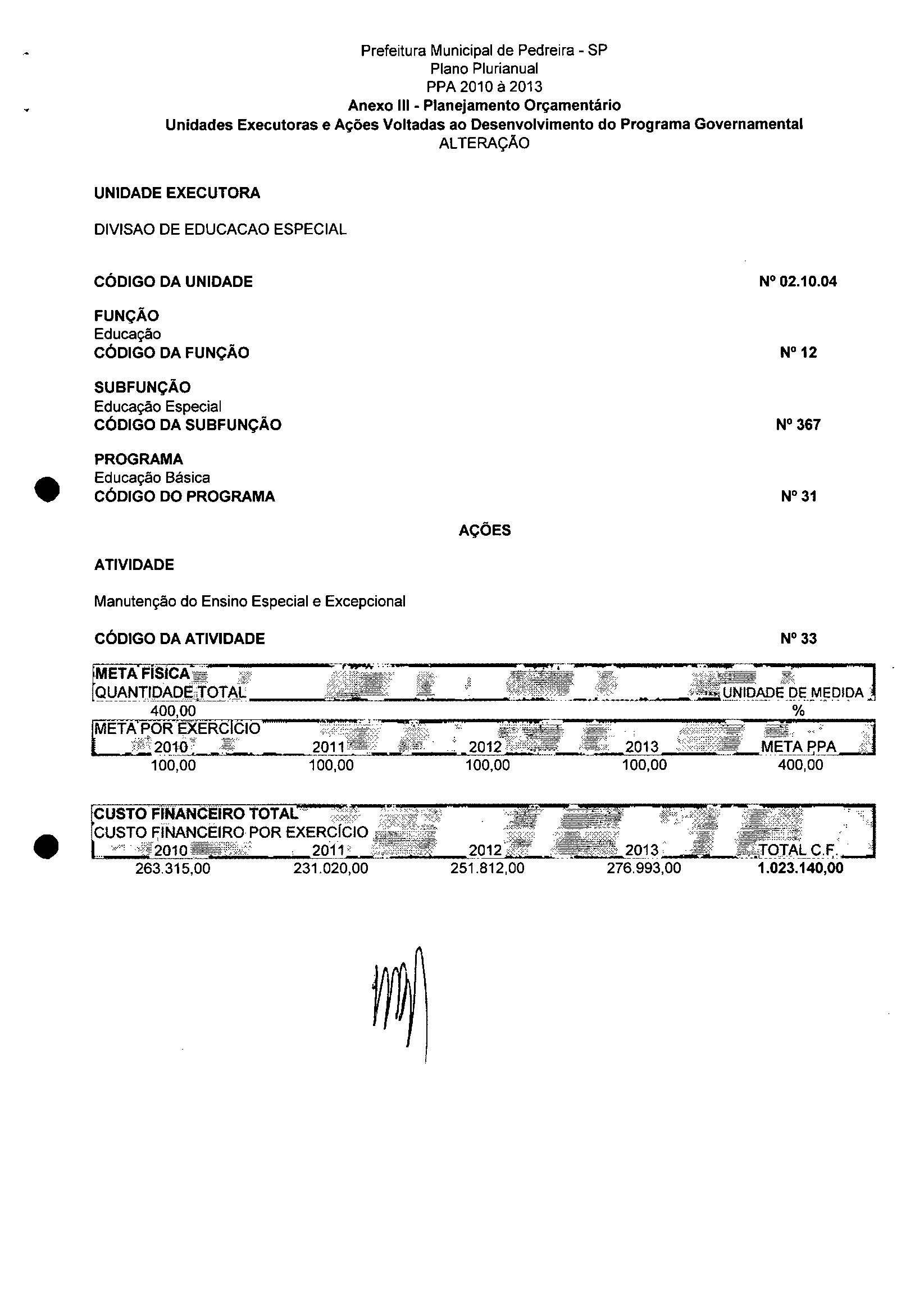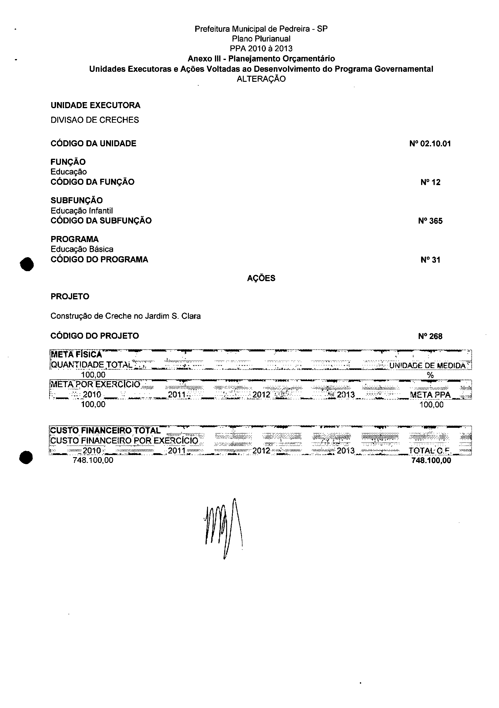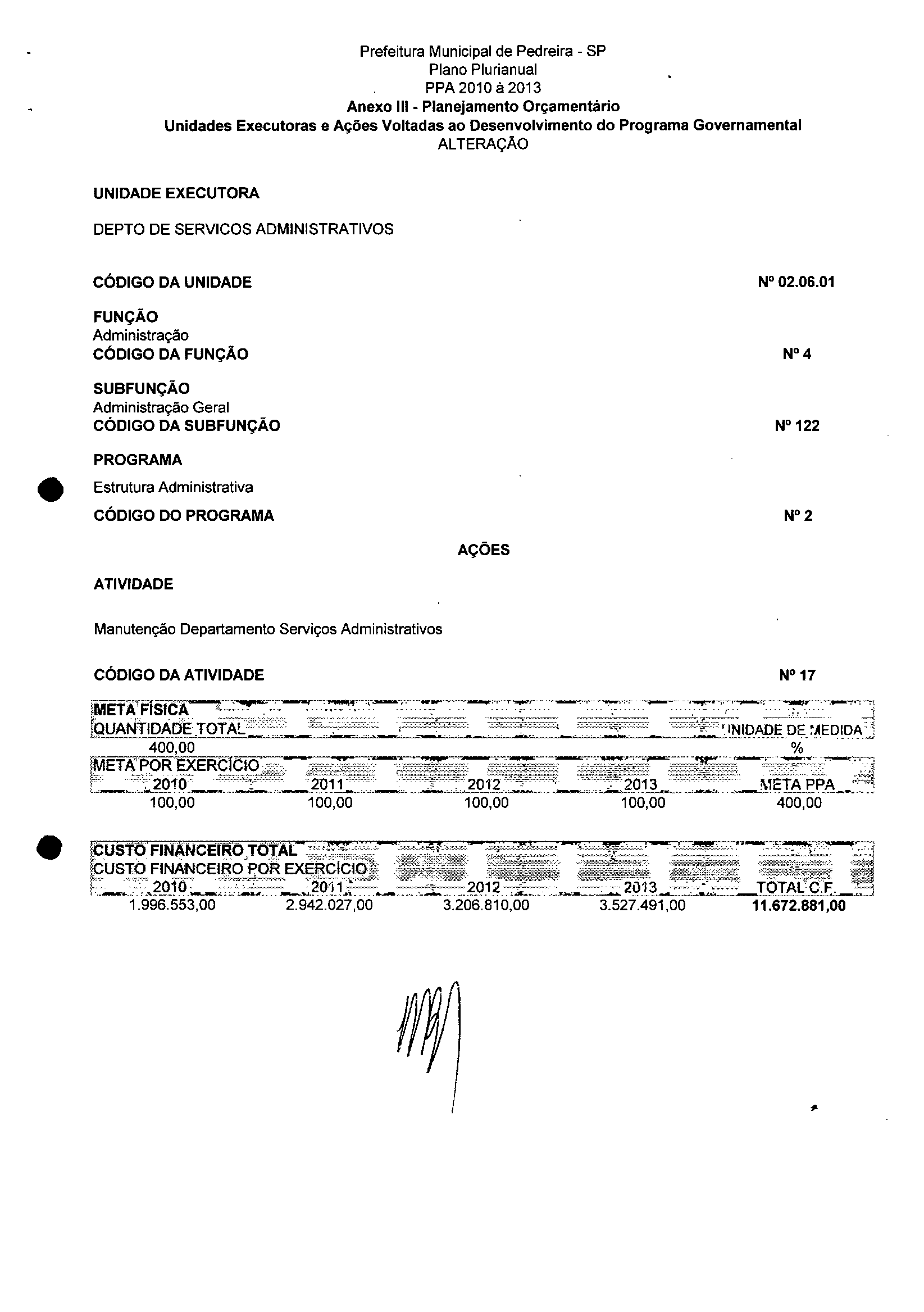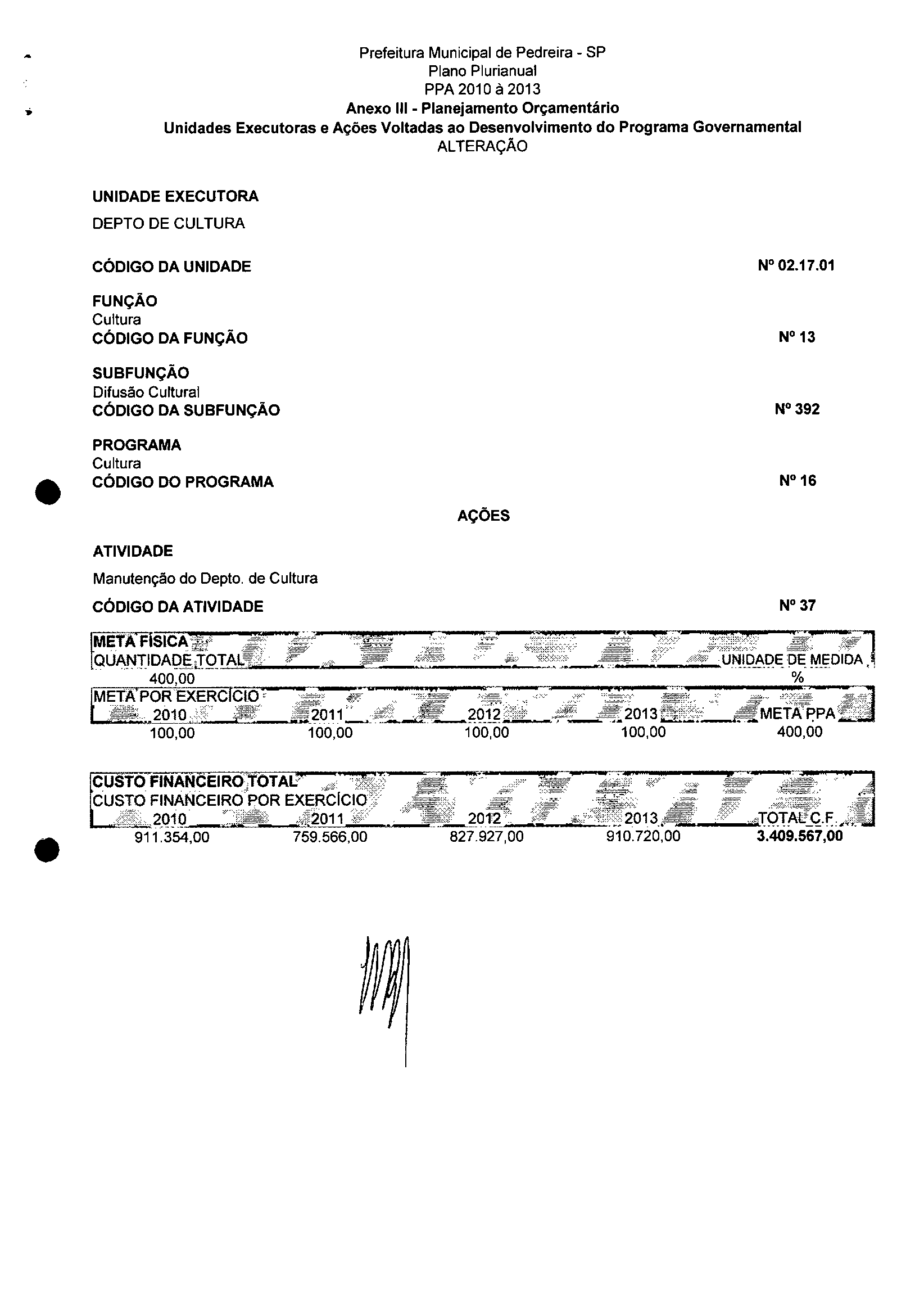 Ementa: Dispõe sobre a alteração dos anexos II e III -da Lei nº 2.977, de 5 de novembro de 2009 -Plano Plurianual para o Quadriênio de 201012013 e a alteração dos anexos Ve VI-da Lei nº 2.929, de 17 de junho de 2009 -Lei de Diretn'zes Orçamentárias para o exercicio de 2010.