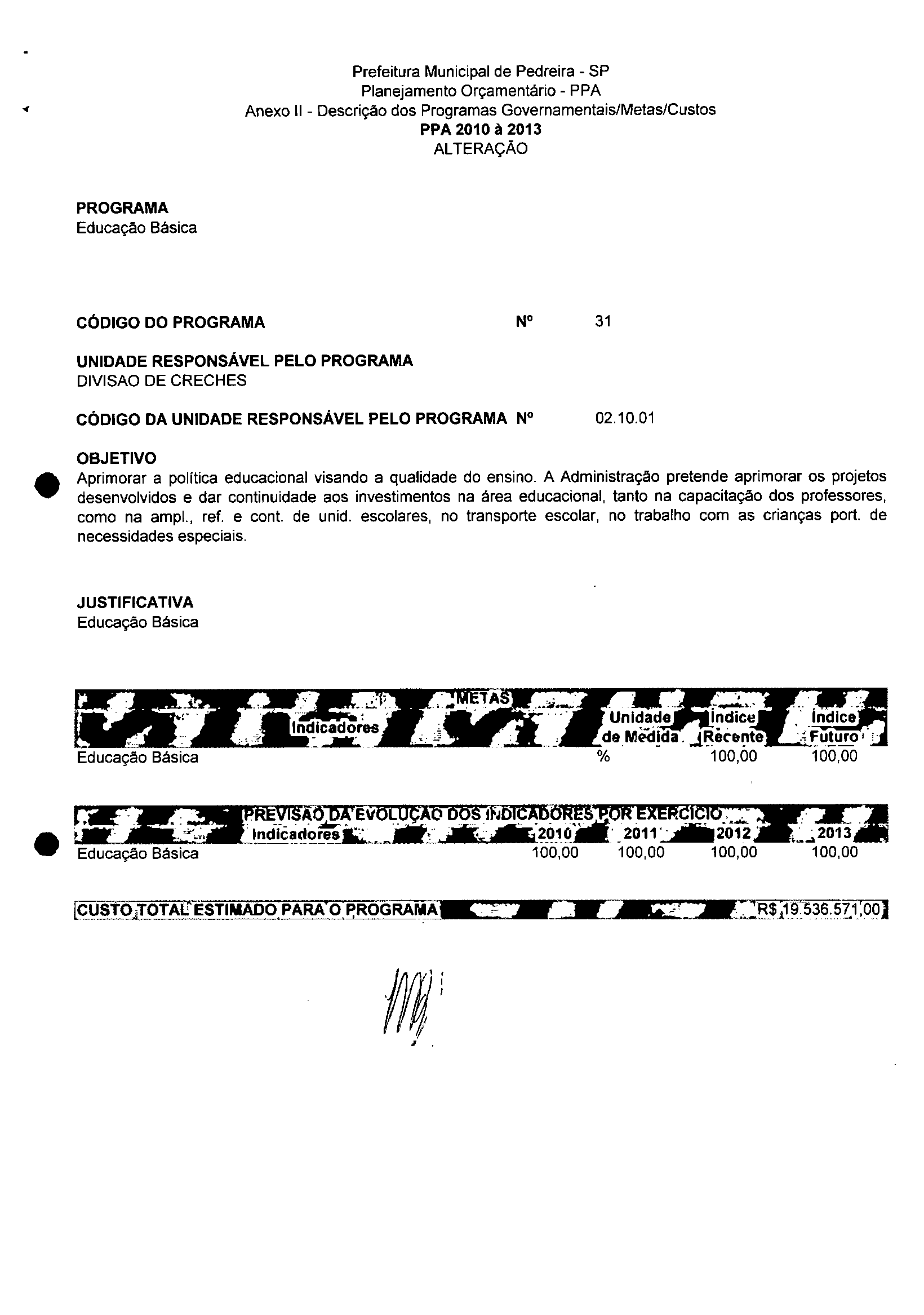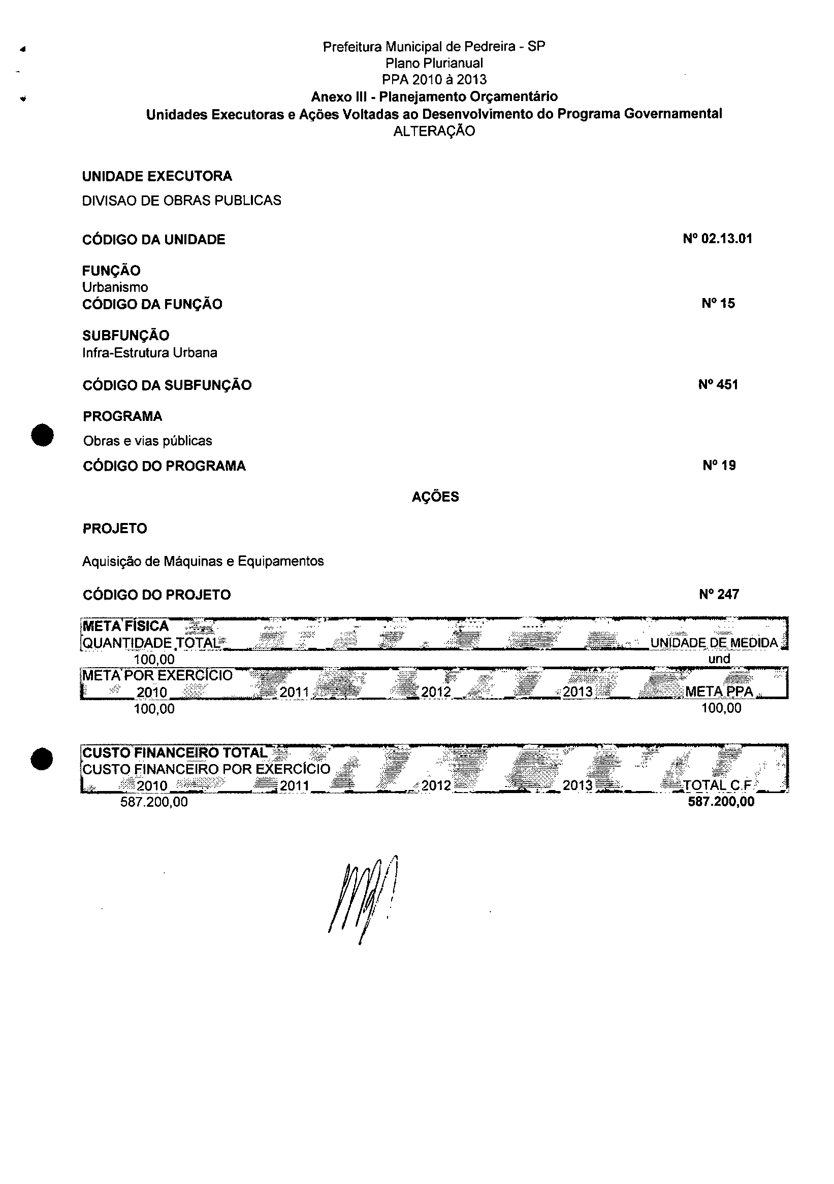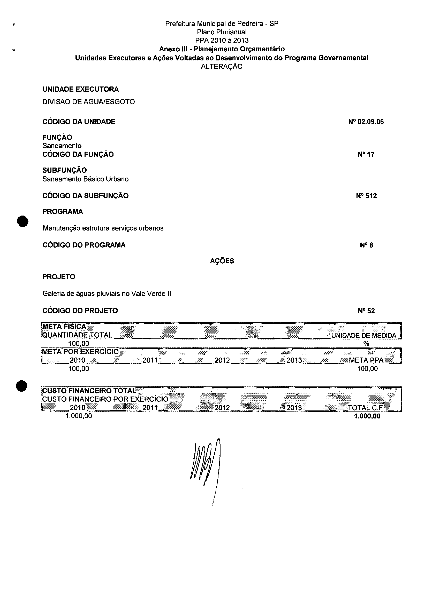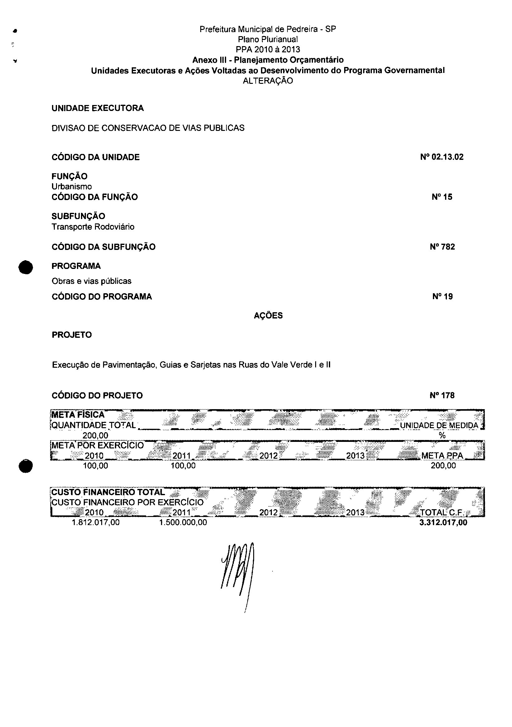 Ementa: Dispõe sobre a alteração dos anexos II e III -da Lei nº 2.977, de 5 de novembro de 2009 -Plano Plurianual para o Quadriênio de 2010/2013 e a alteração dos anexos Ve VI-da Lei nº 2.929, de 17 de junho de 2009 -Lei de Diretrizes Orçamentárias para o exercício de 2010.