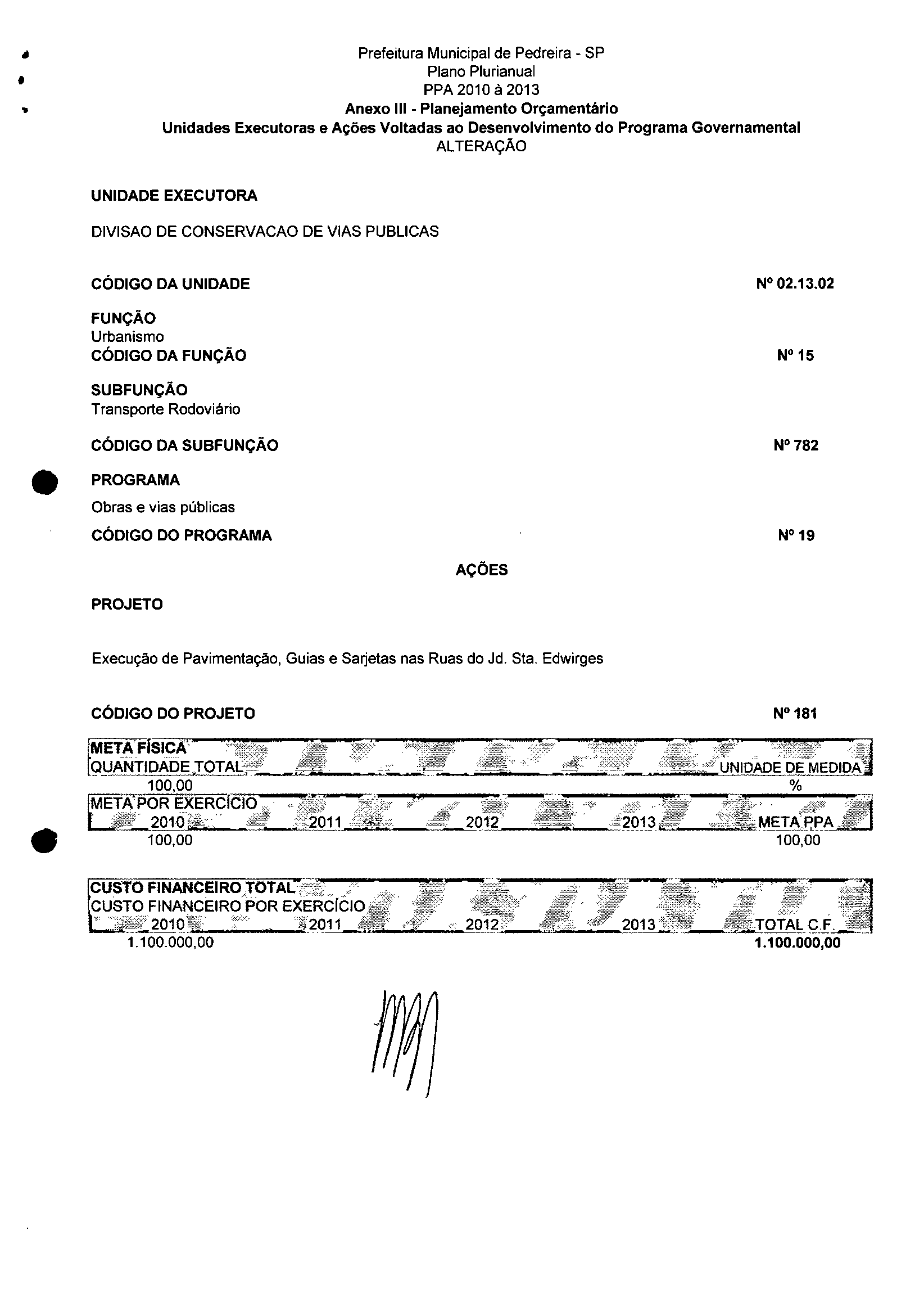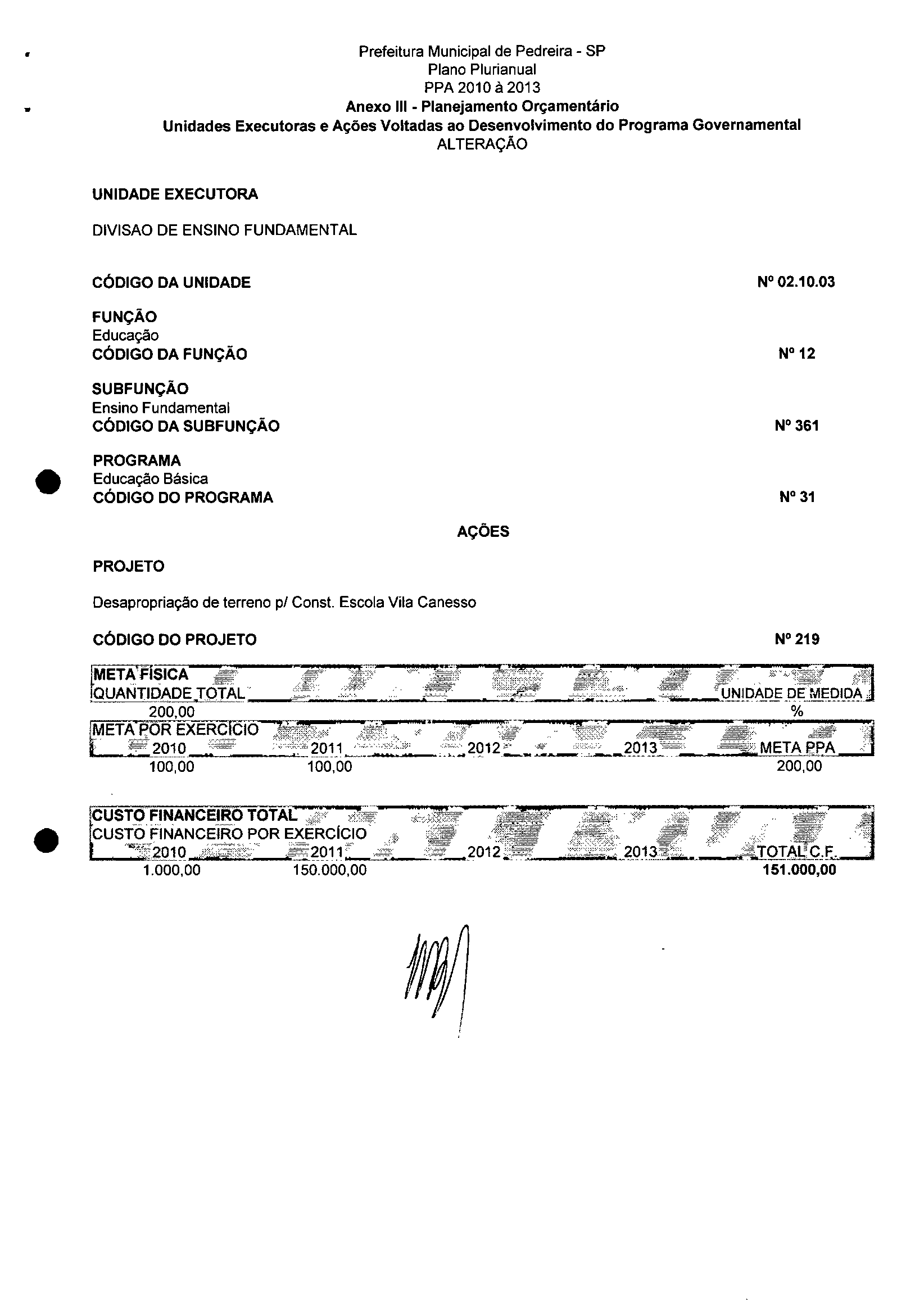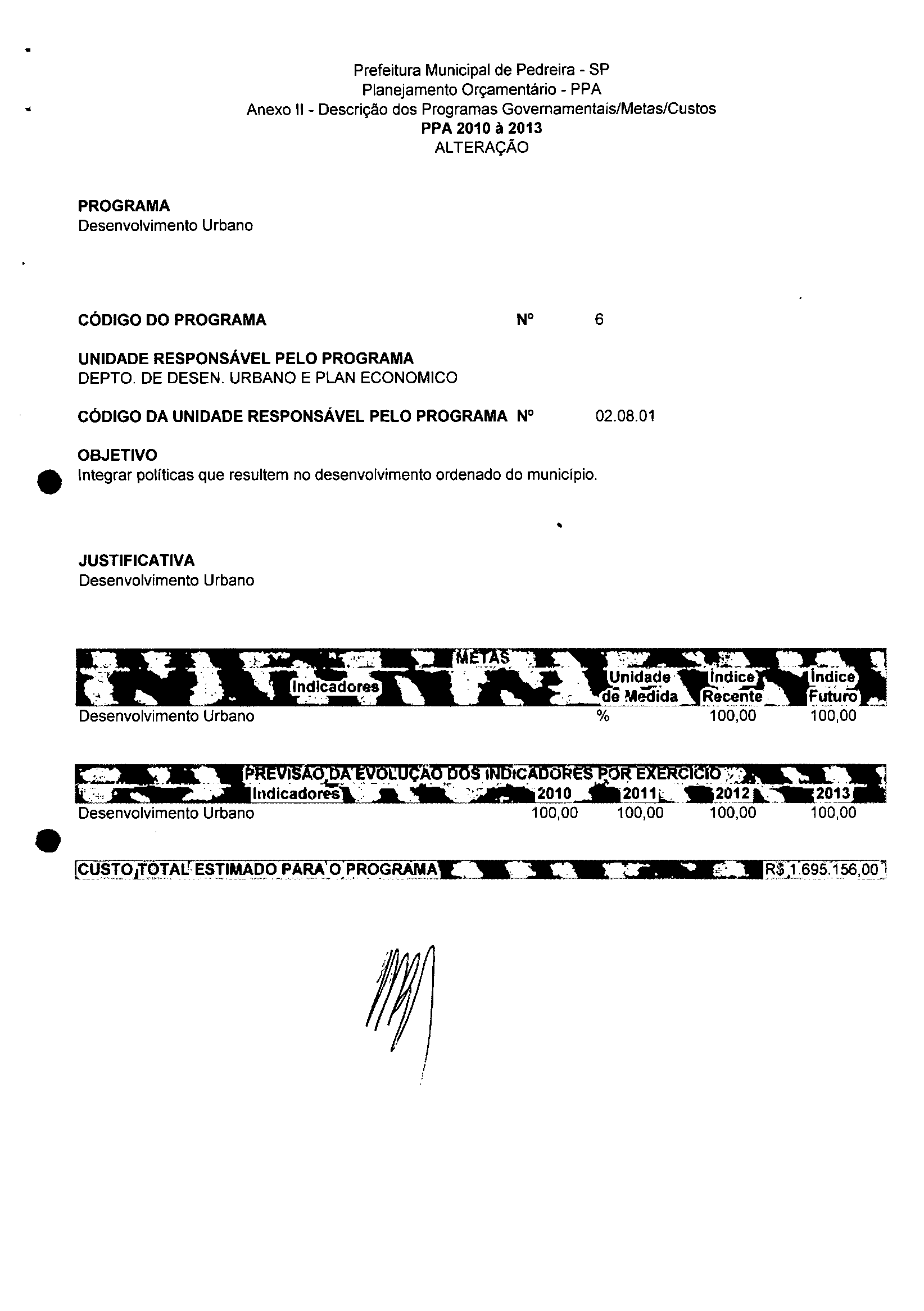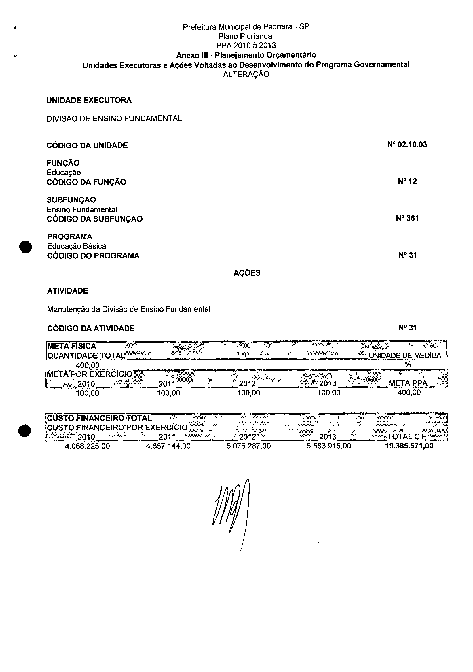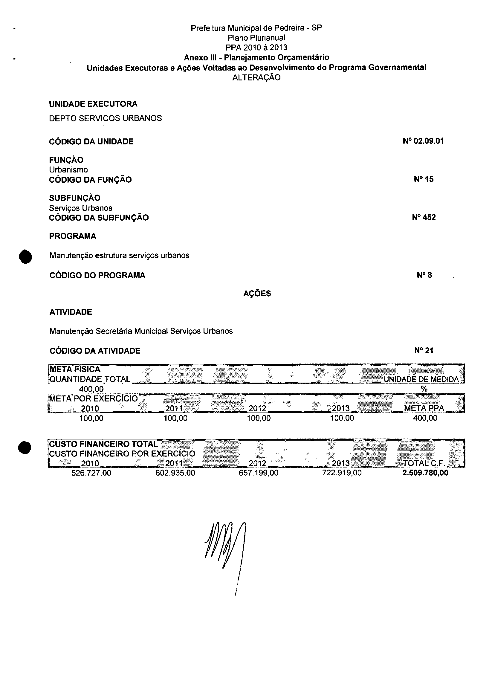 Ementa: Dispõe sobre a alteração dos anexos II e III -da Lei nº 2.977, de 5 de novembro de 2009 -Plano Plurianual para o Quadriênio de 2010/2013 e a alteração dos anexos Ve VI-da Lei nº 2.929, de 17 de junho de 2009 -Lei de Diretrizes Orçamentárias para o exercício de 2010.