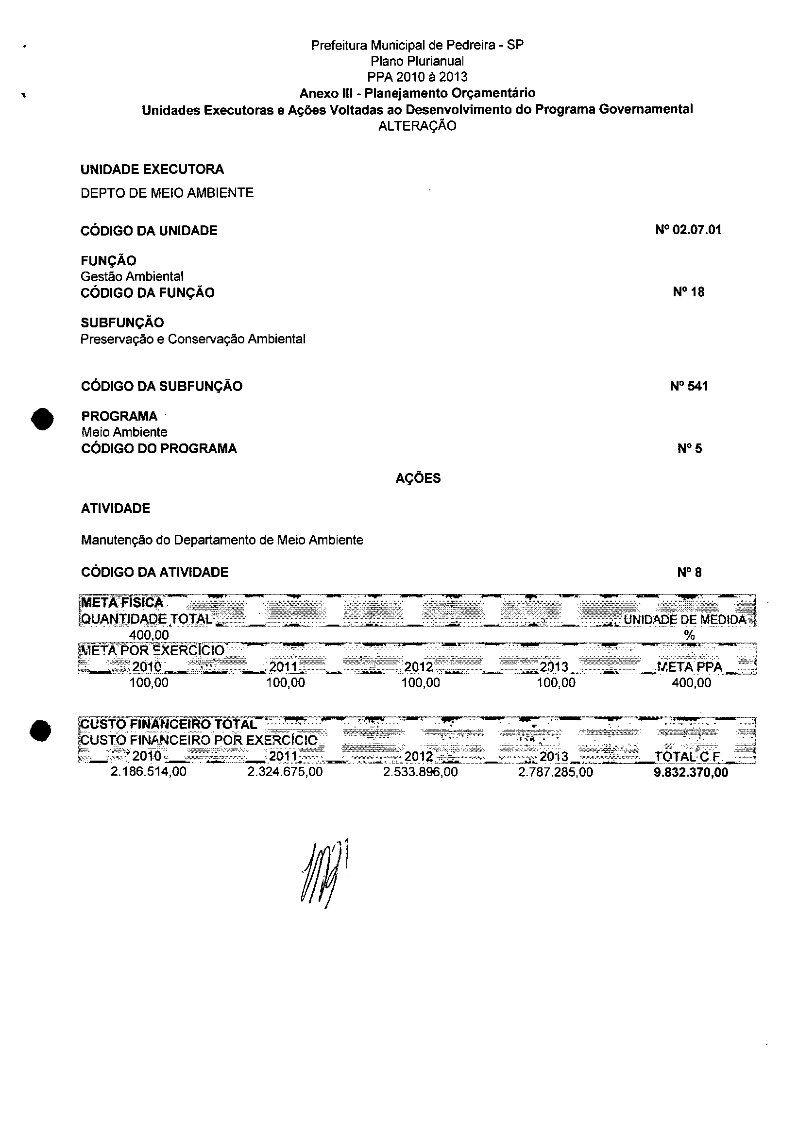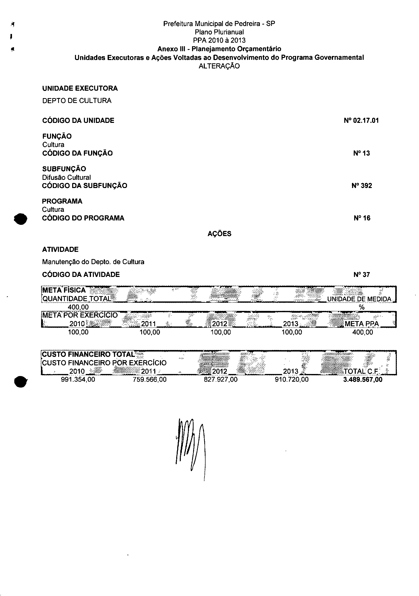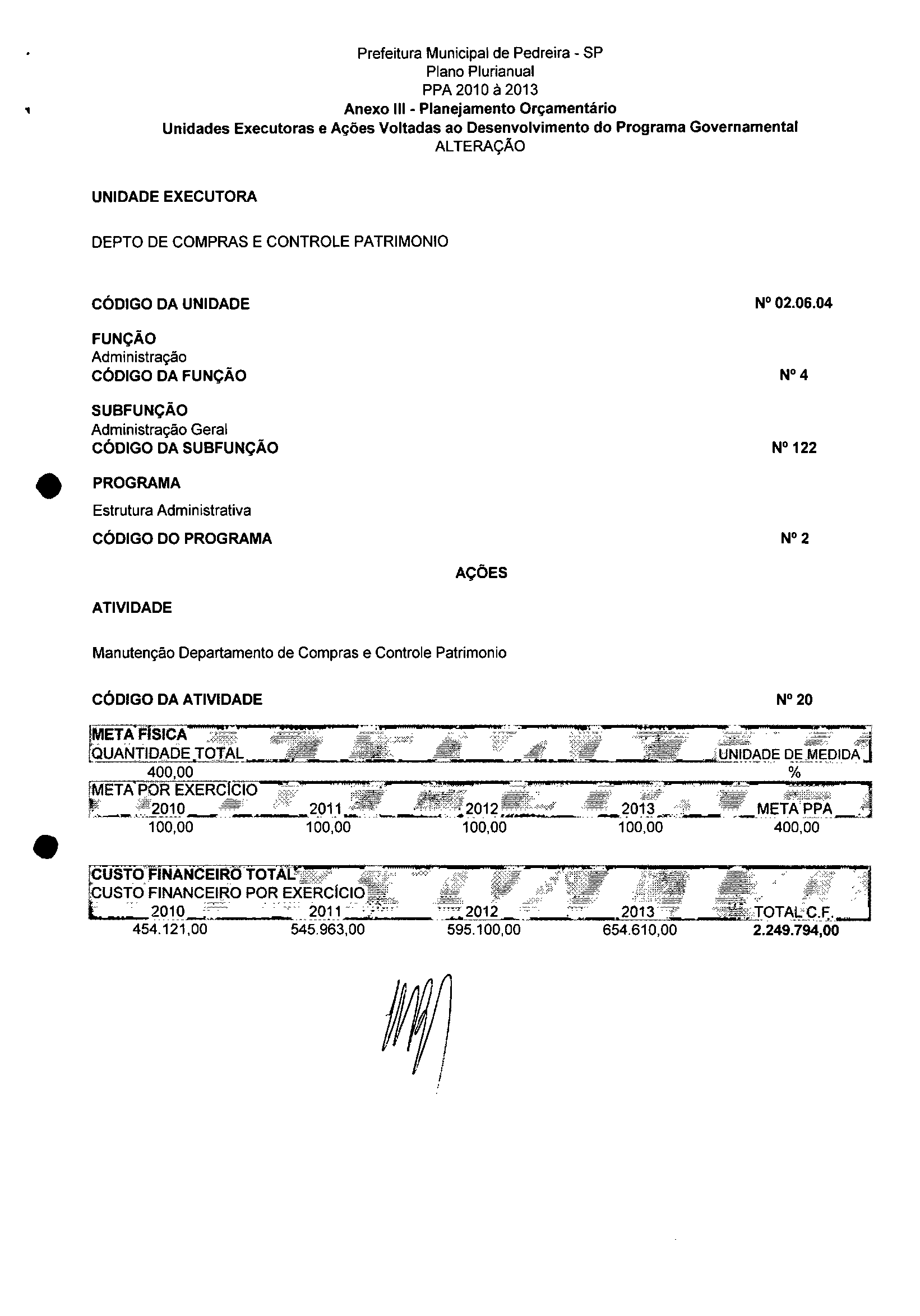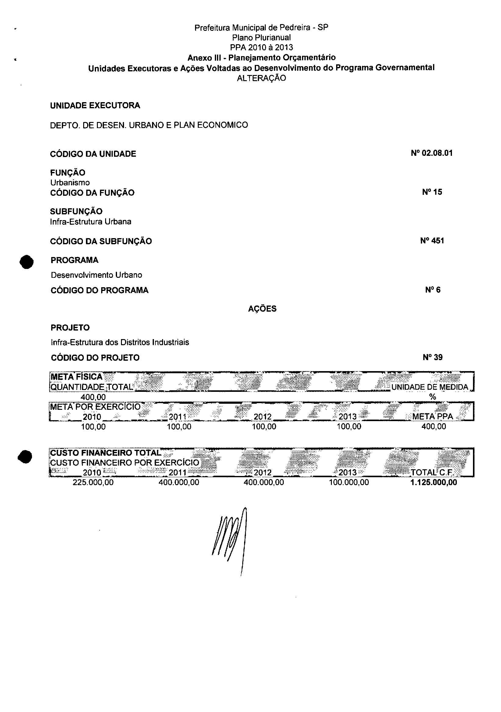 Ementa: Dispõe sobre a alteração dos anexos II e III -da Lei nº 2.977, de 5 de novembro de 2009 -Plano Plurianual para o Quadriênio de 2010/2013 e a alteração dos anexos Ve VI-da Lei nº 2.929, de 17 de junho de 2009 -Lei de Diretrizes Orçamentárias para o exercício de 2010.