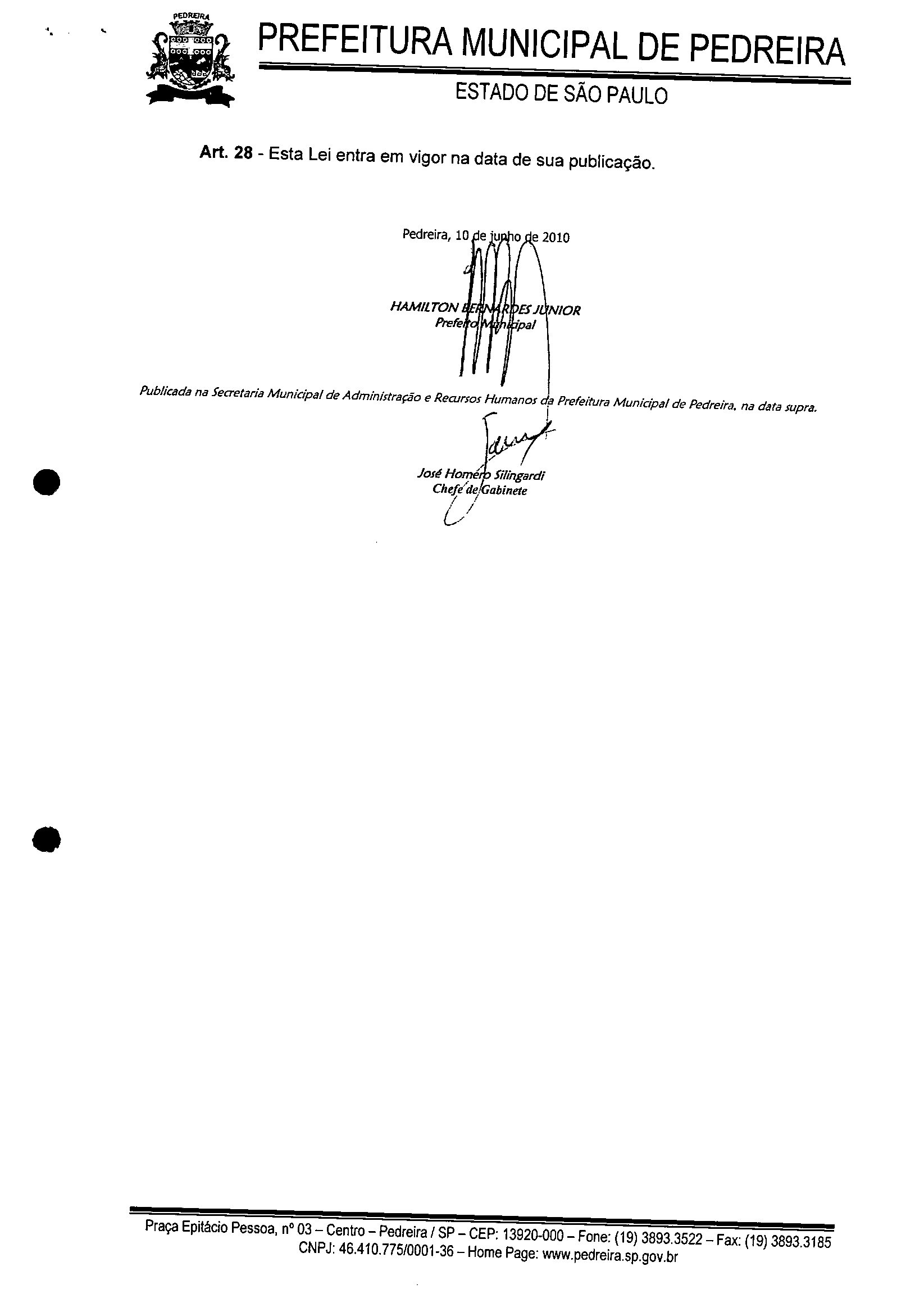 Lei Municipal - N° 3040 de 10/06/2010