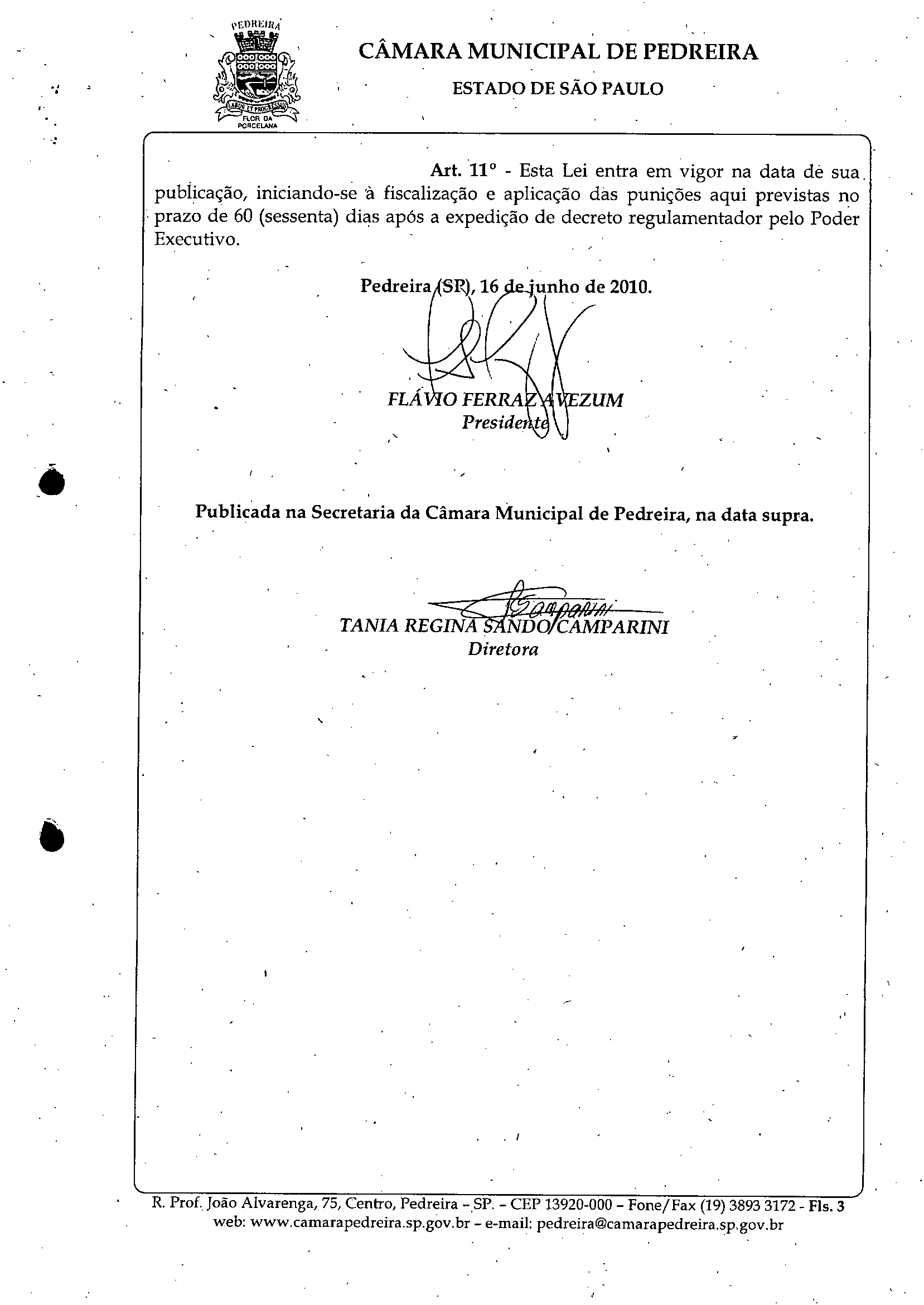 Lei Municipal - N° 3041 de 16/06/2010