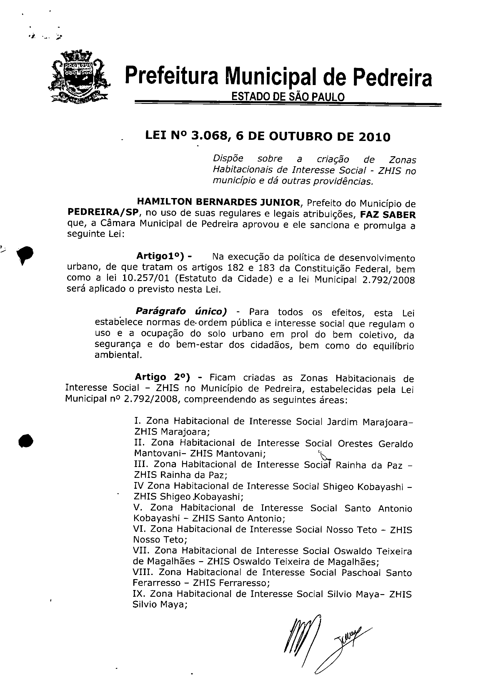 Ementa: Dispõe sobre a criação de Zonas Habitacionais de Interesse Social -ZHIS no município e dá outras providências.