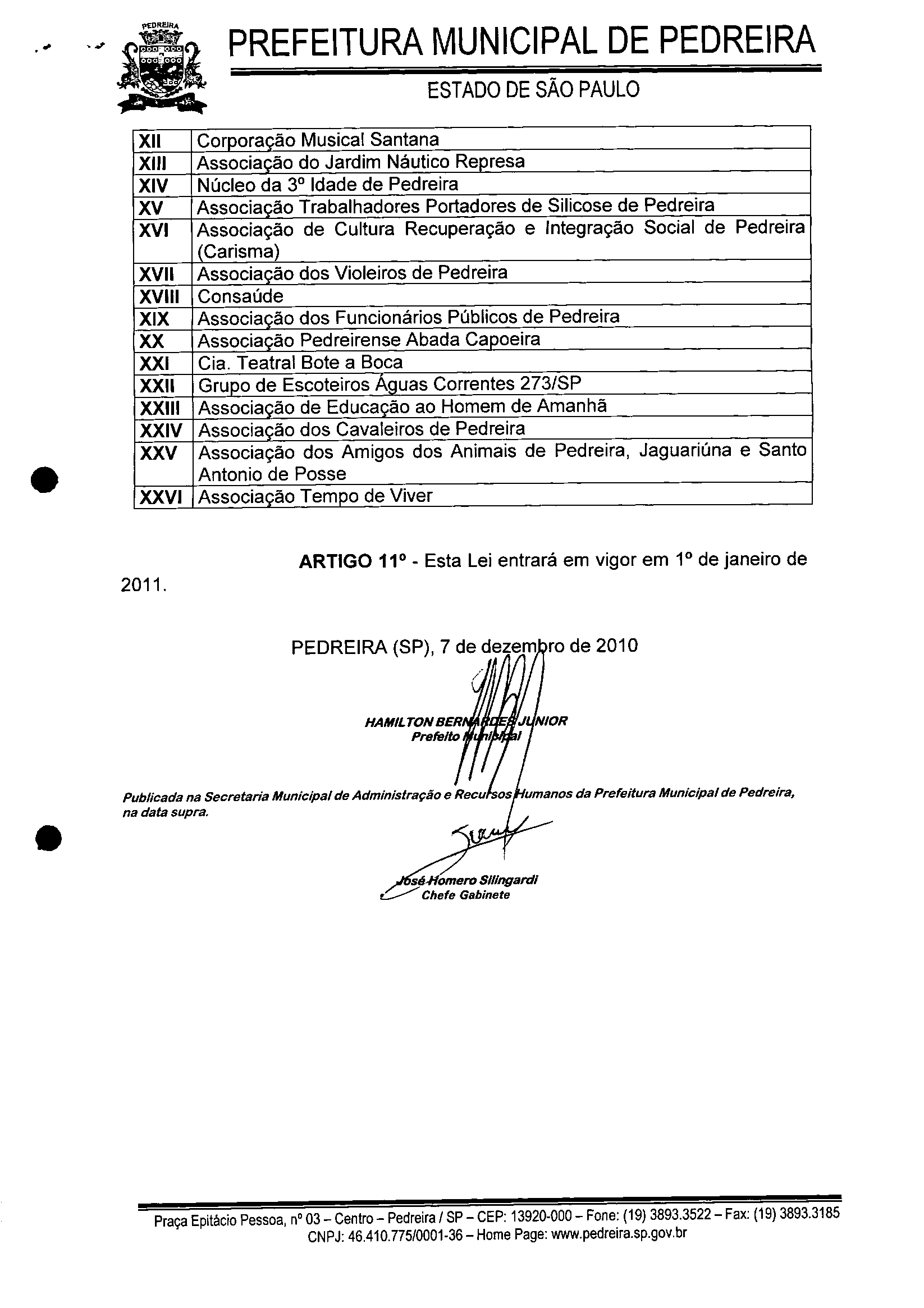 Lei Municipal - N° 3075 de 07/12/2010