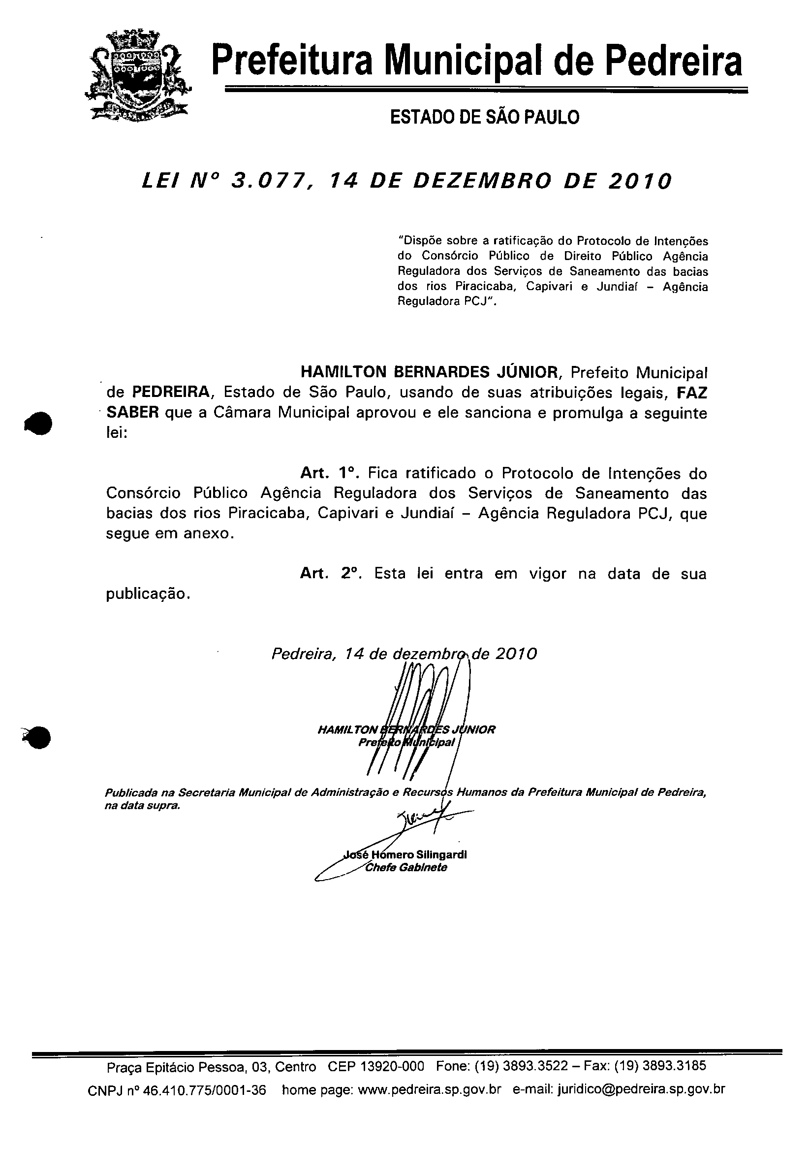 Lei Municipal - N° 3077 de 14/12/2010