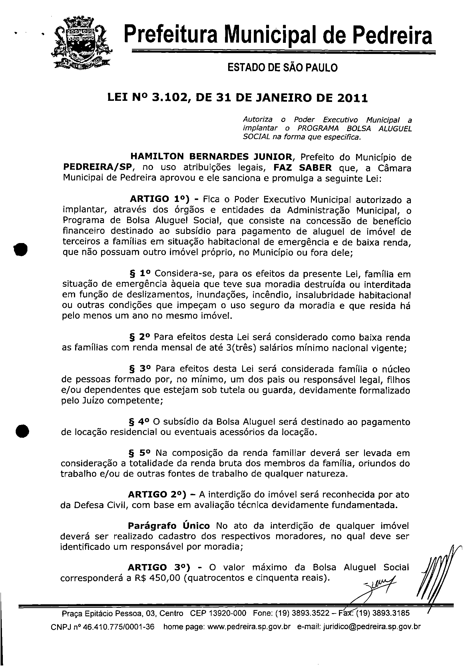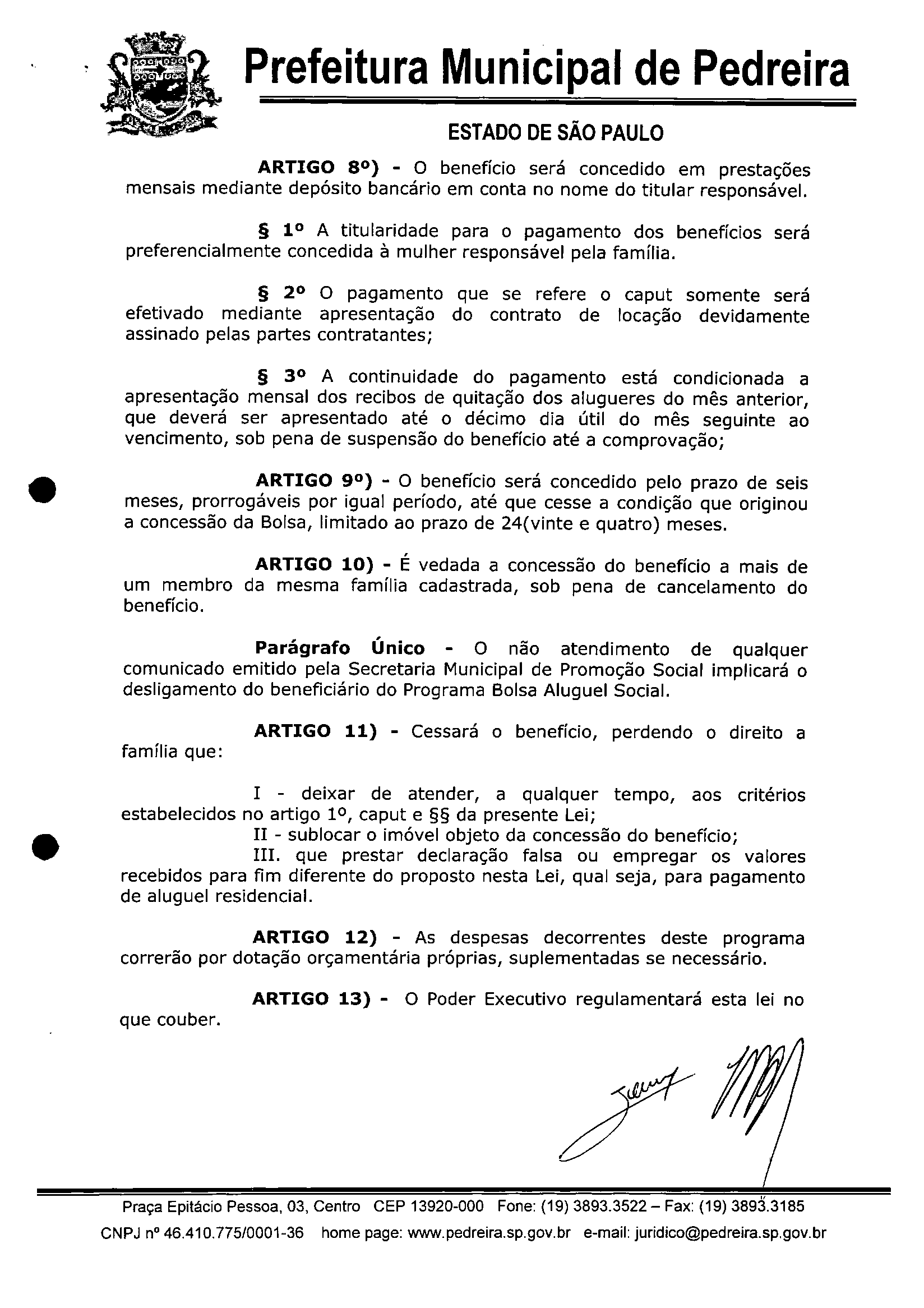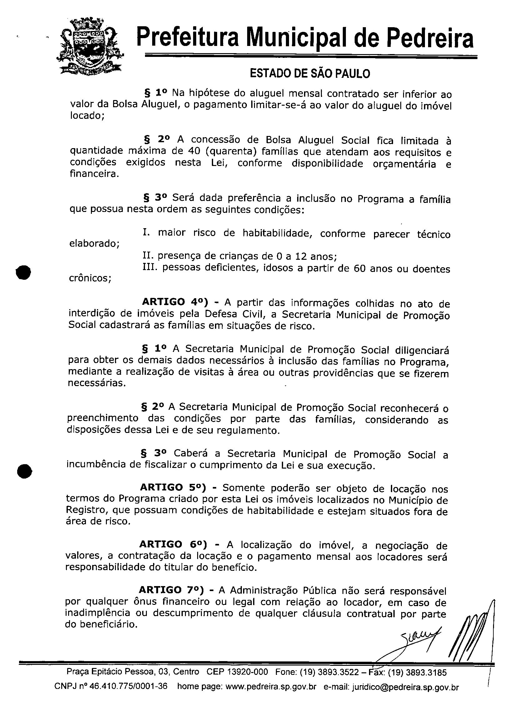 Ementa: autoriza o Poder Executivo Municipal a implantar o PROGRAMA BOLSA ALUGUEL SOCIAL na forma que especifíca.