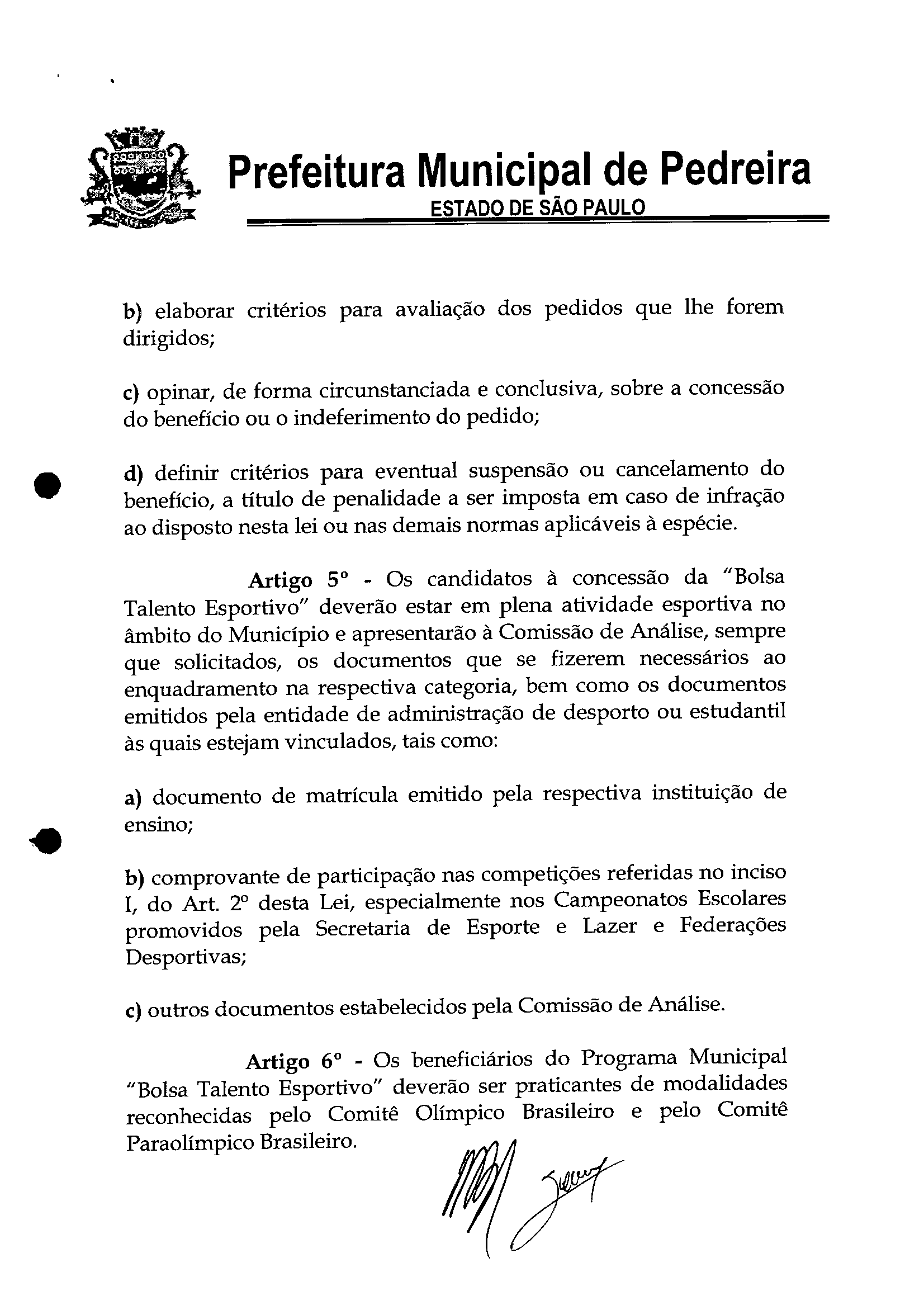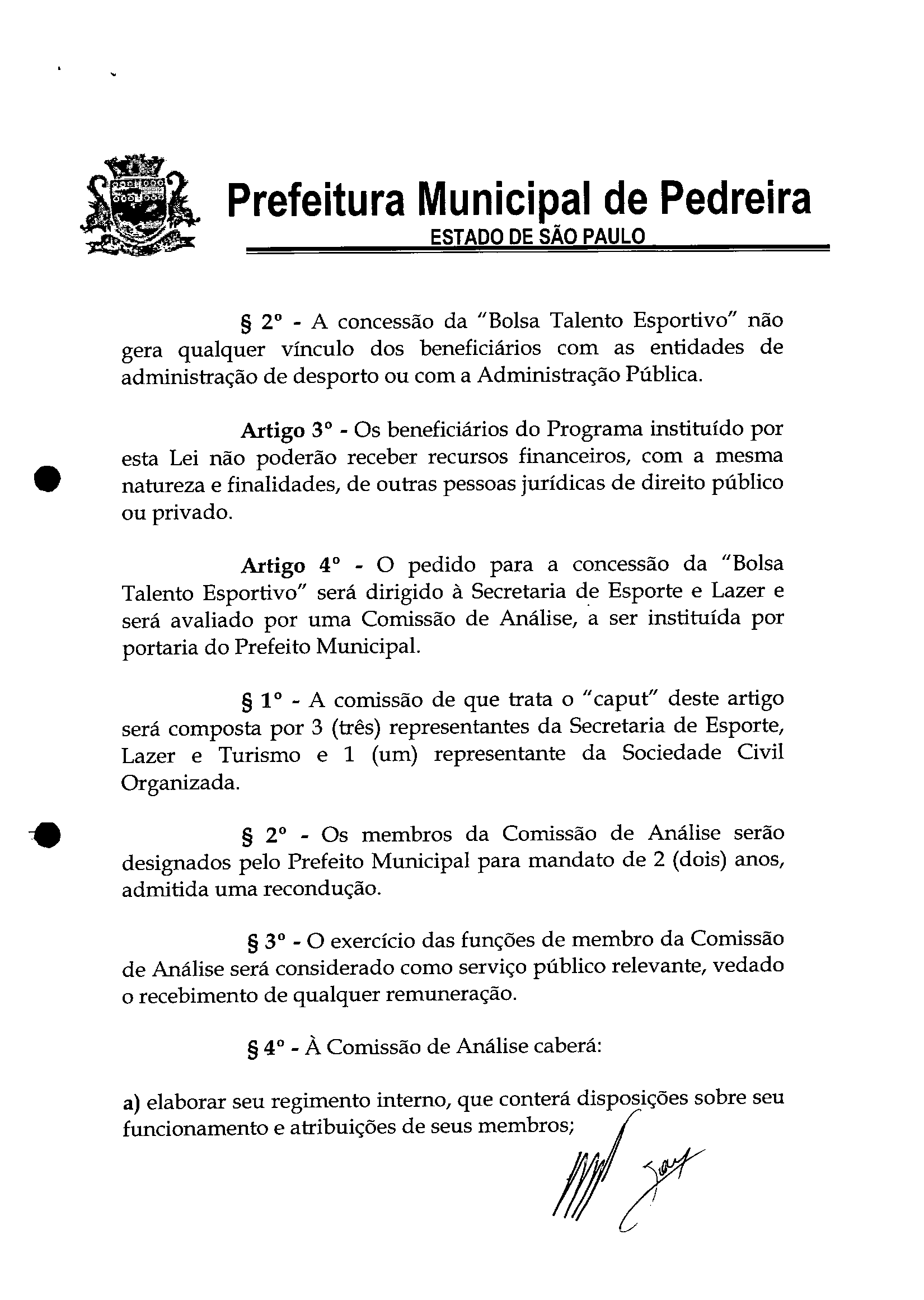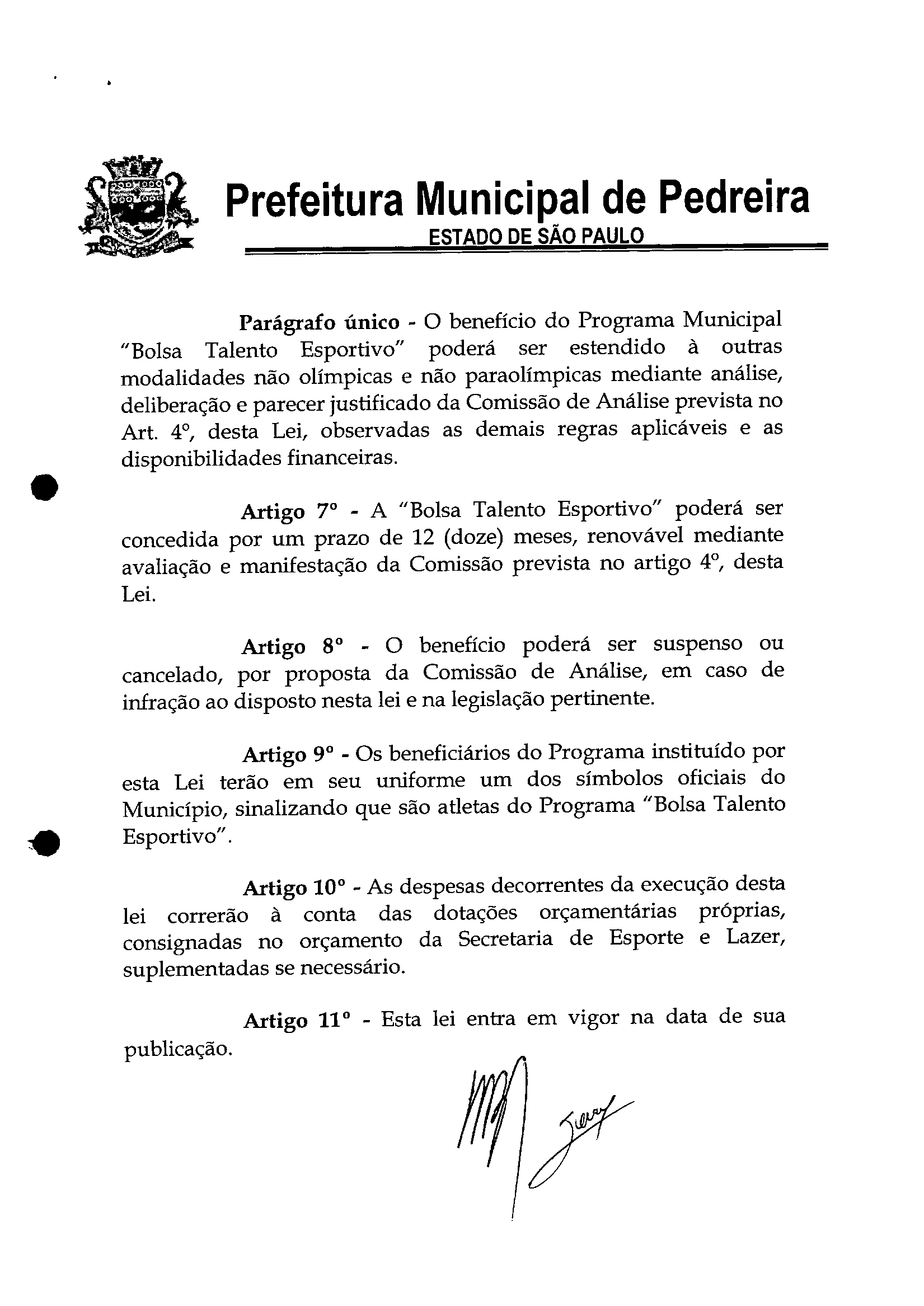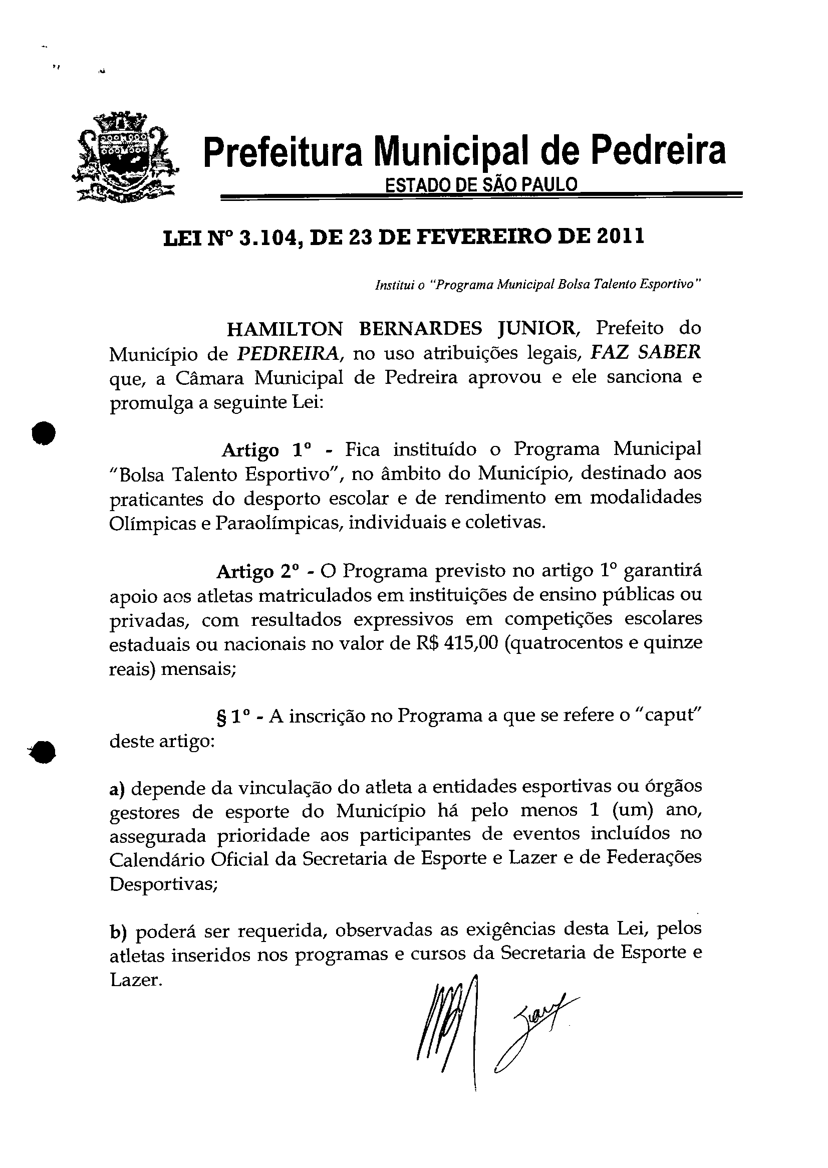 Ementa: Institui o "Programa Municipal Bolsa Talento Esportivo"