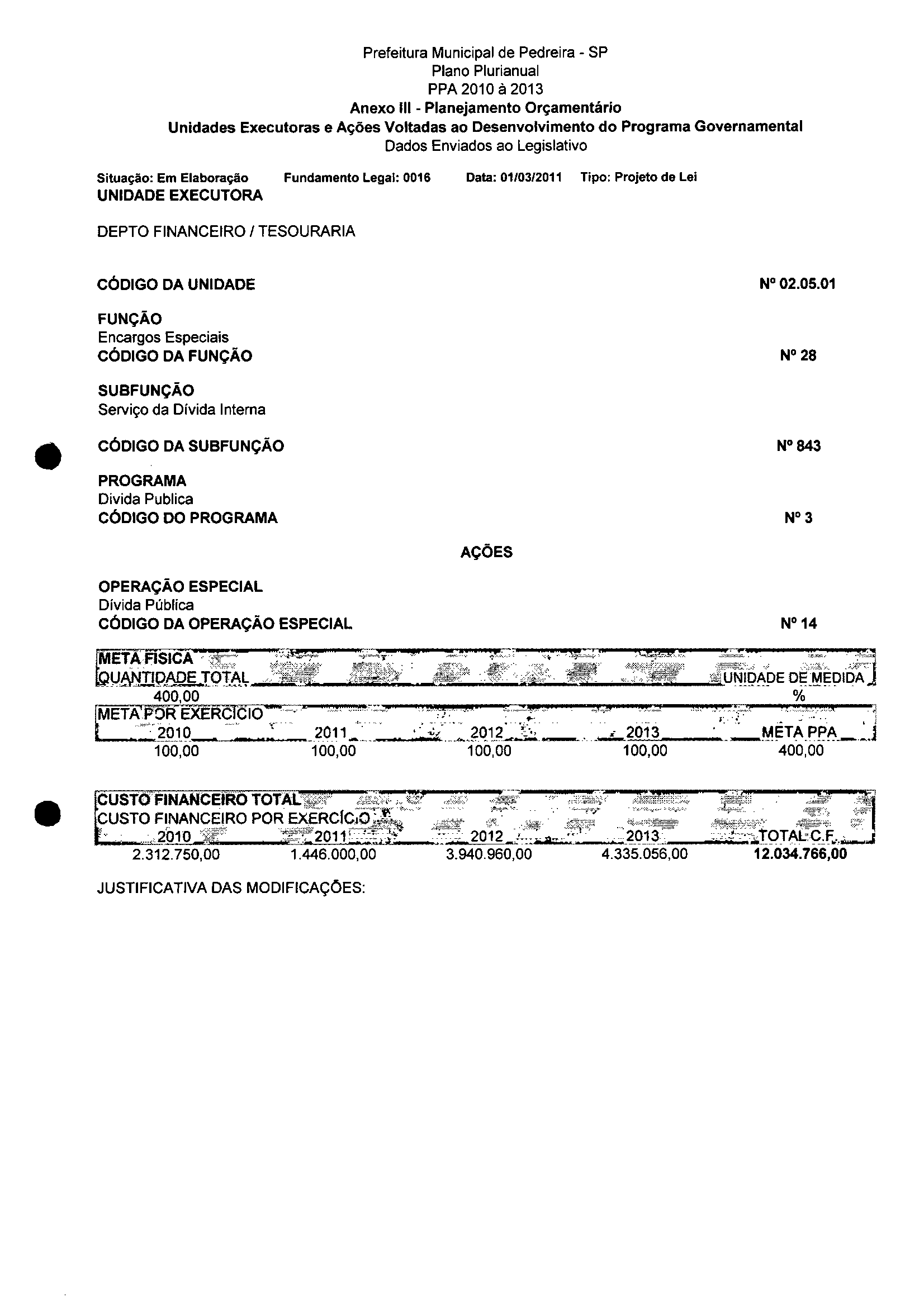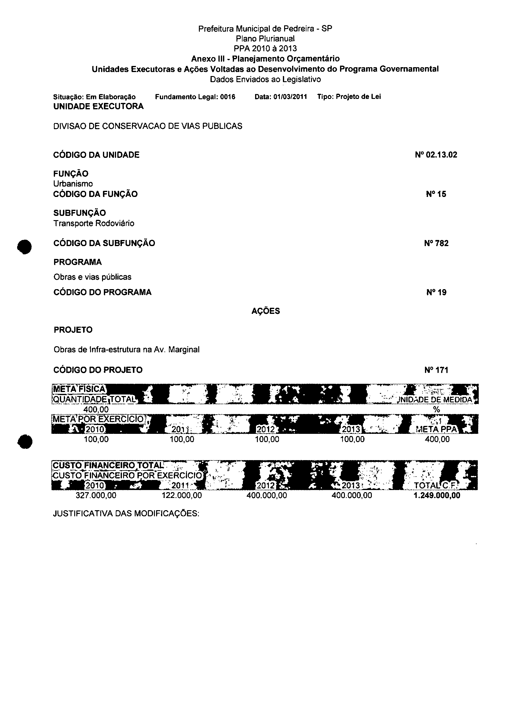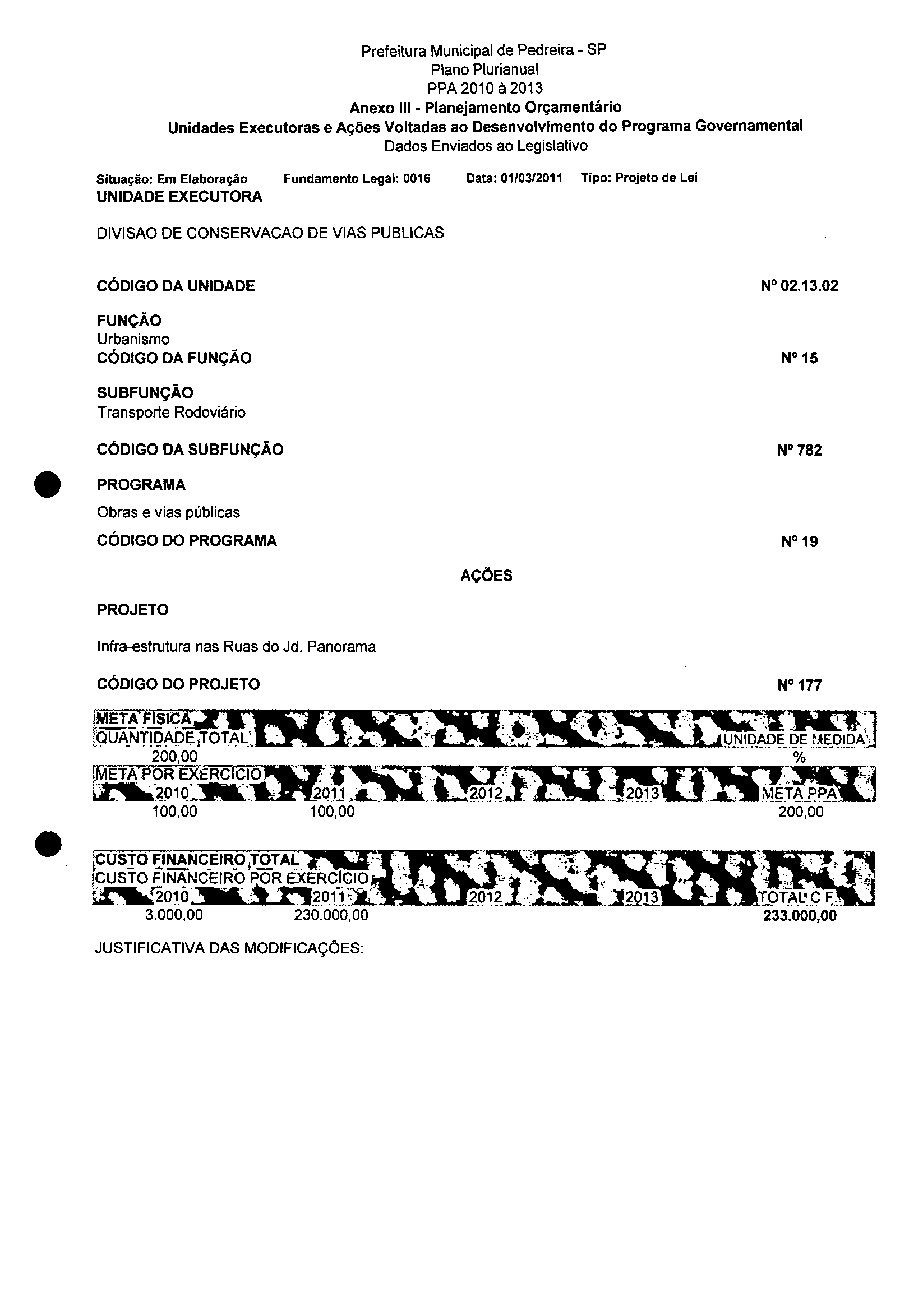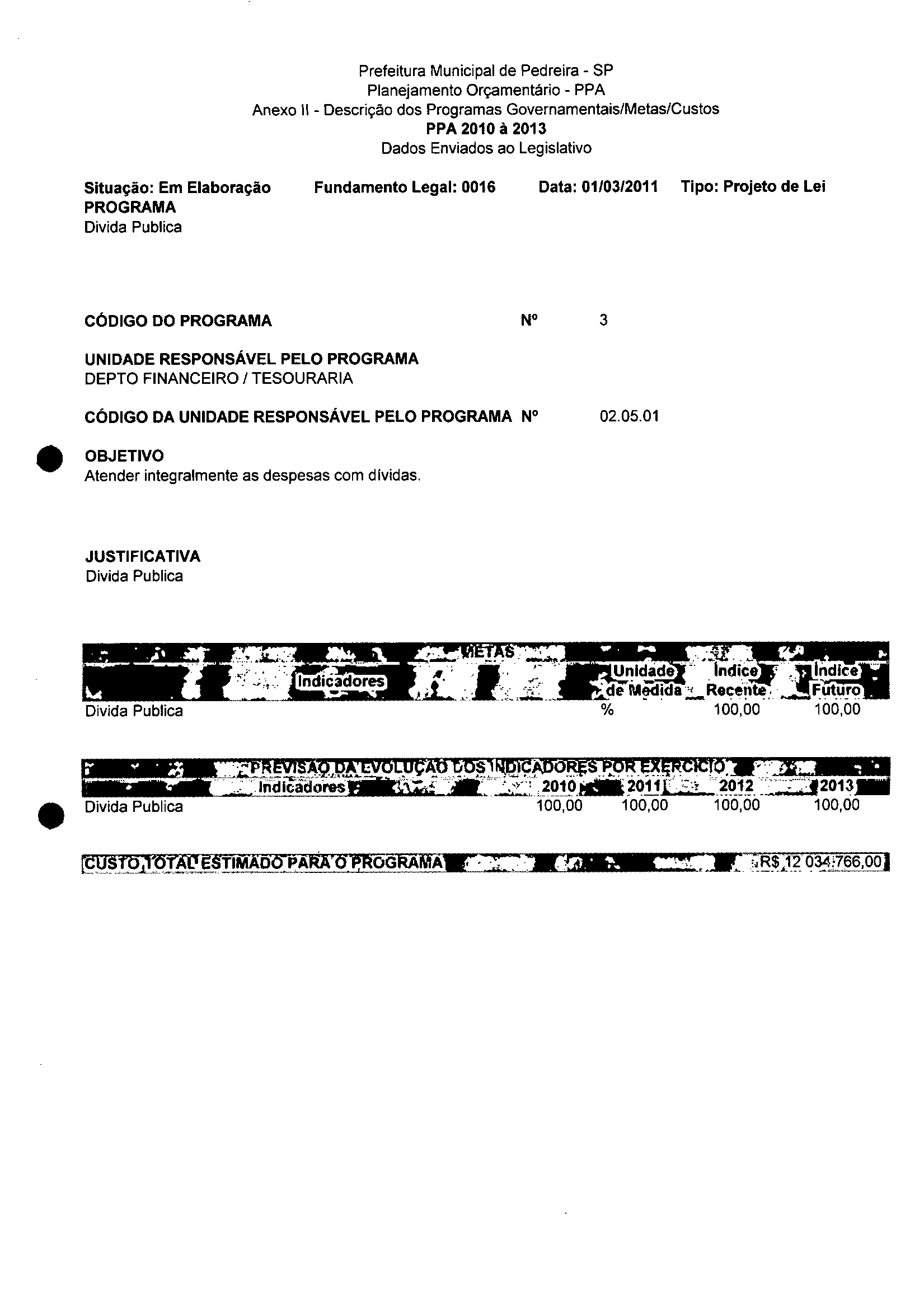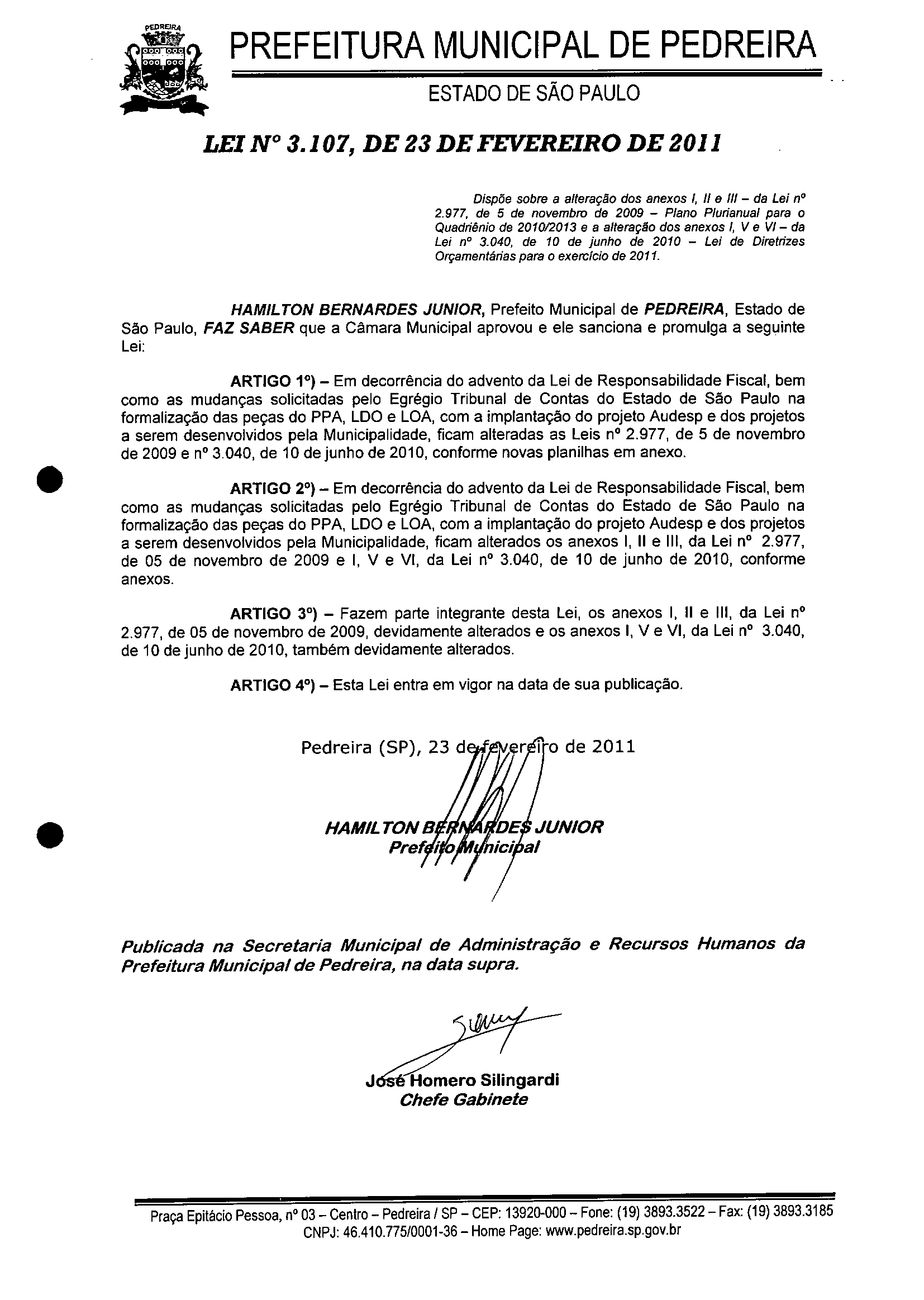 Ementa: Dispõe sobre a alteração dos anexos II e III -da Lei nº 2.977, de 5 de novembro de 2009 -Plano Plurianual para o Quadriênio de 2010/2013 e a alteração dos anexos " V e VI - da Lei nº 3.040, de 10 de junho de 2010 -Lei de Diretrizes Orçamentárias para o exercício de 2011.