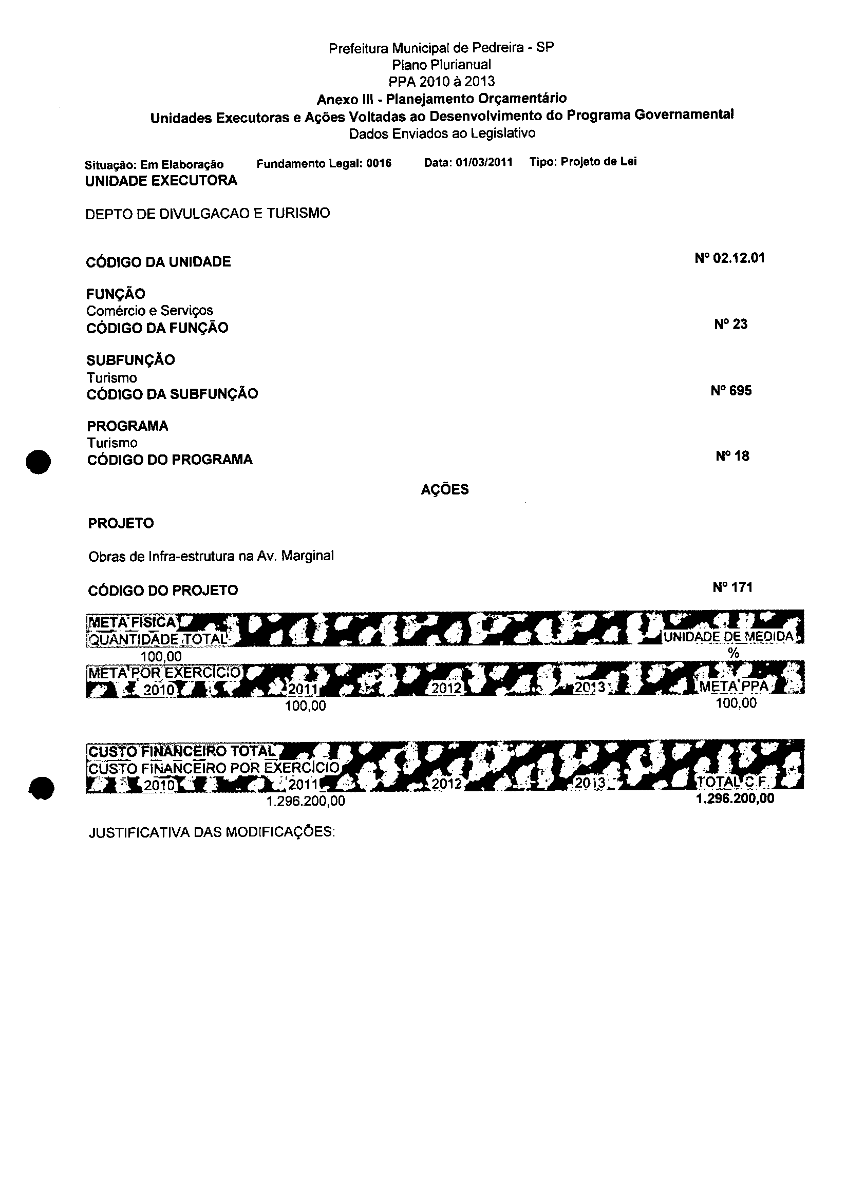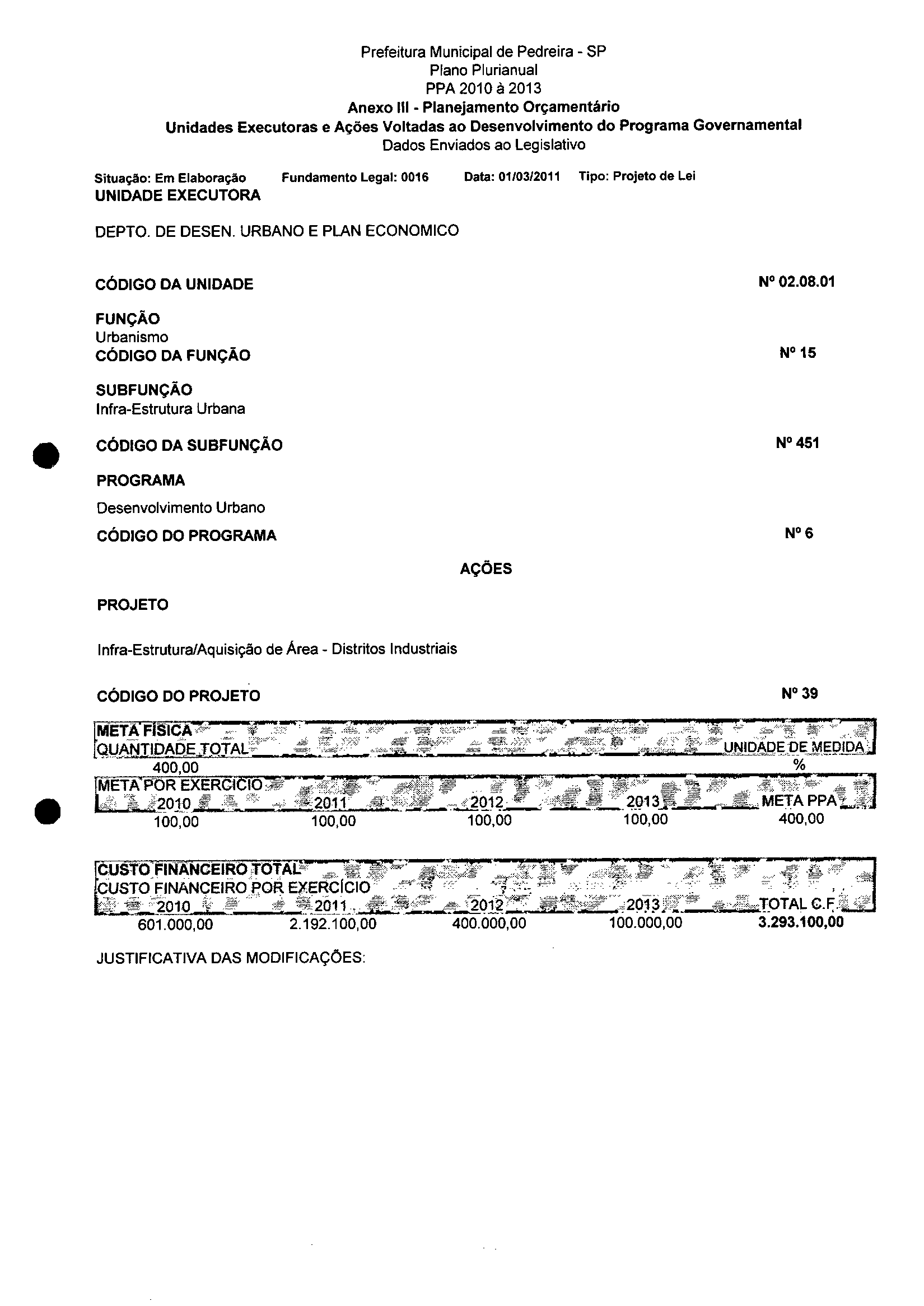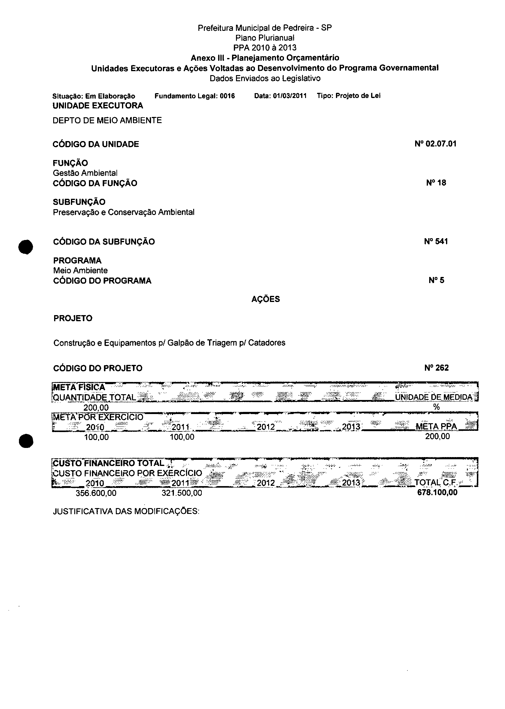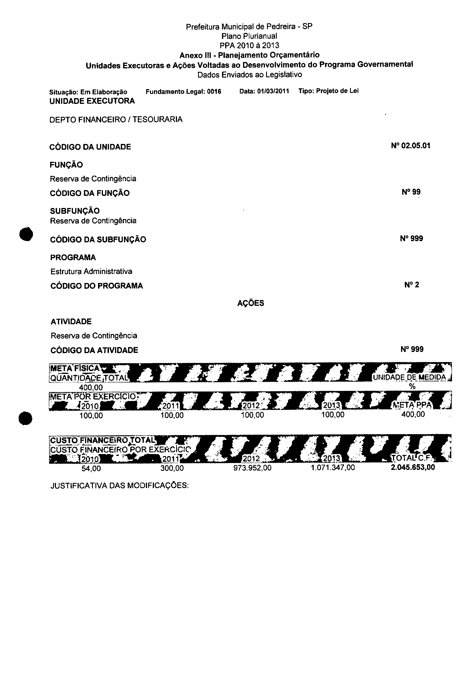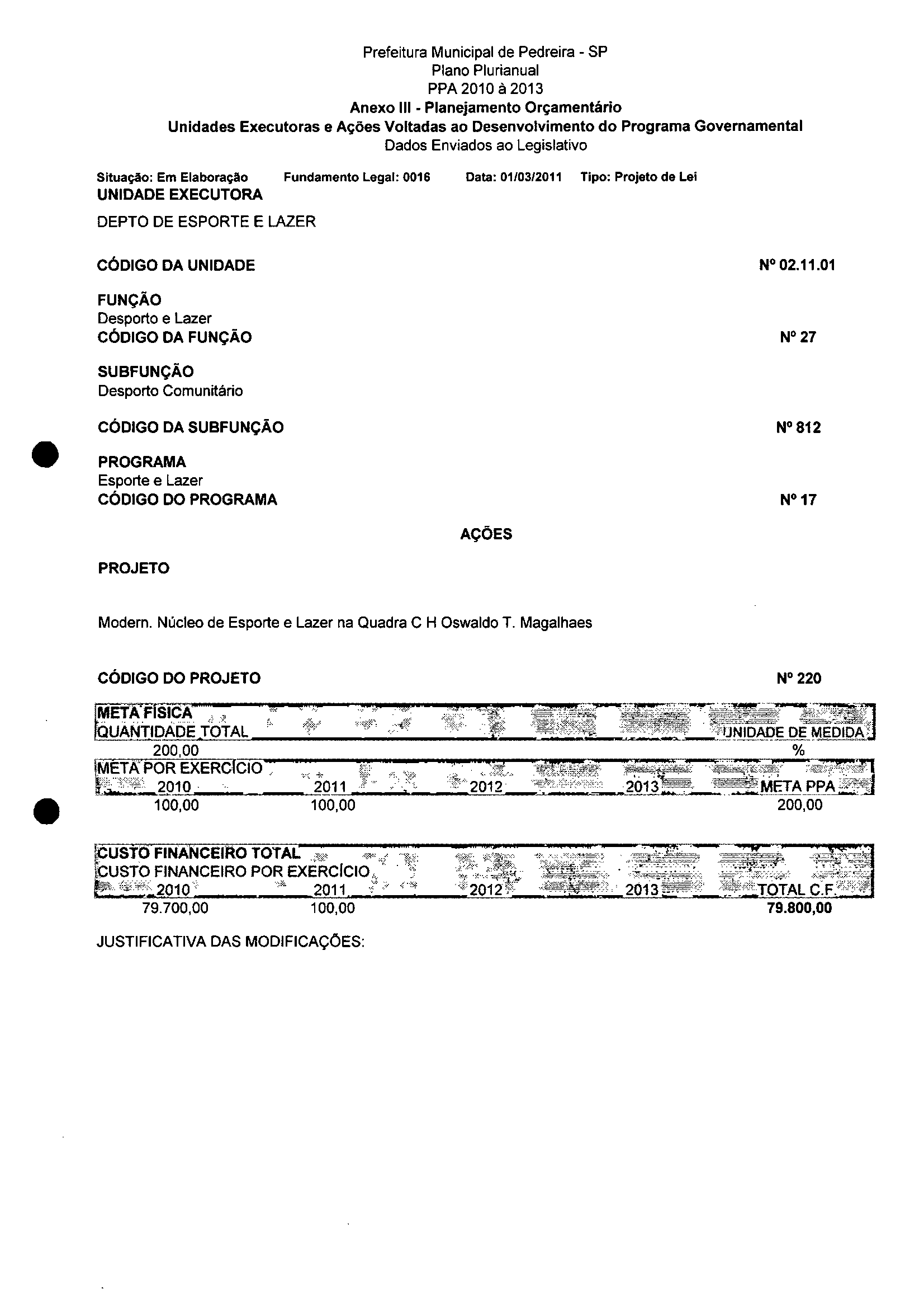 Ementa: Dispõe sobre a alteração dos anexos II e III -da Lei nº 2.977, de 5 de novembro de 2009 -Plano Plurianual para o Quadriênio de 2010/2013 e a alteração dos anexos " V e VI - da Lei nº 3.040, de 10 de junho de 2010 -Lei de Diretrizes Orçamentárias para o exercício de 2011.