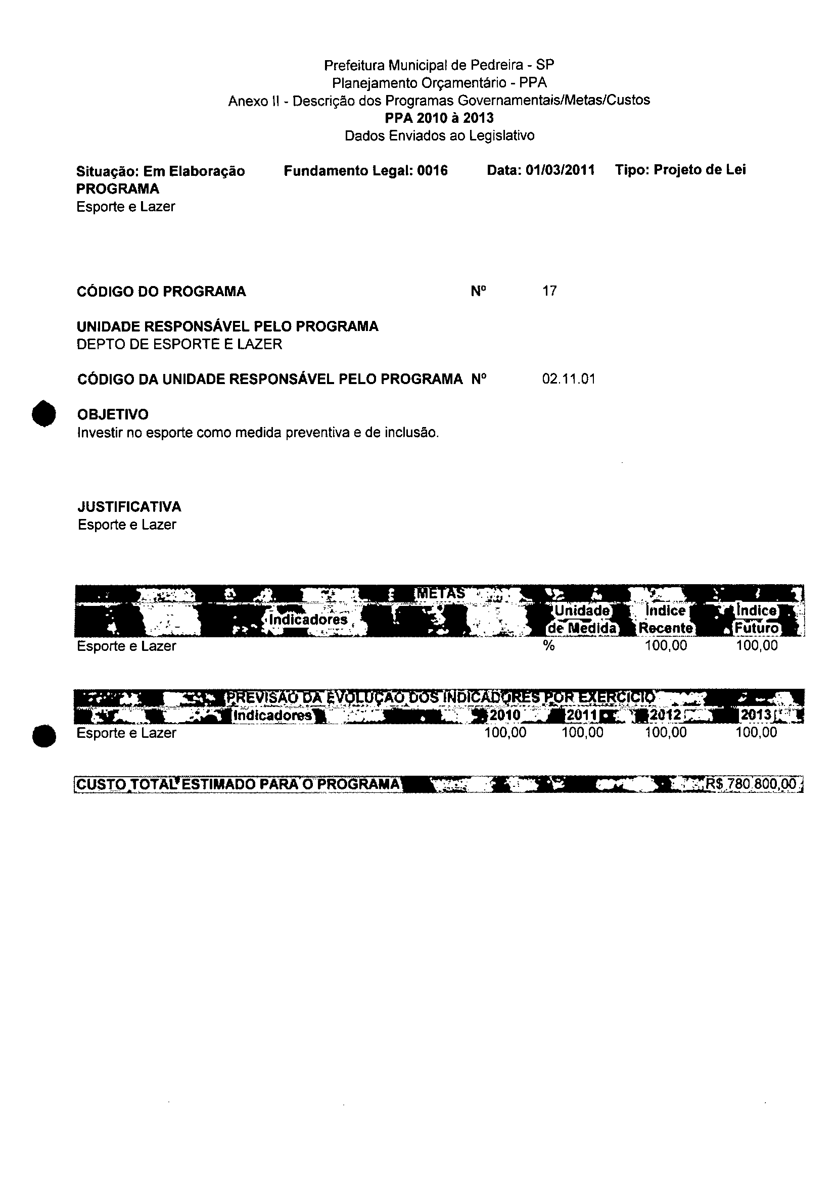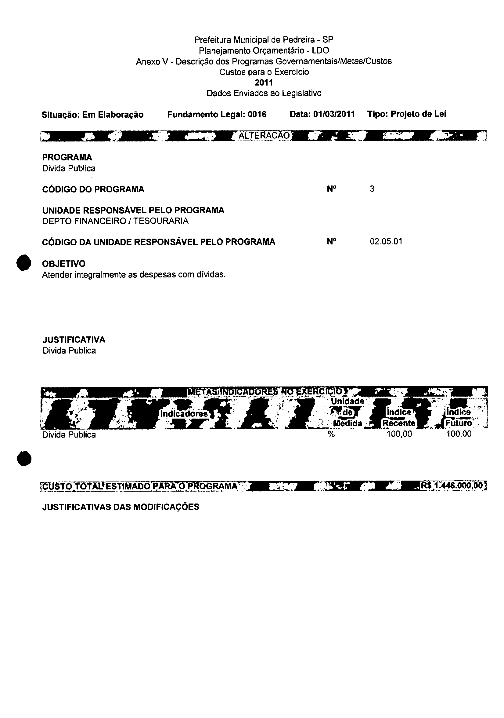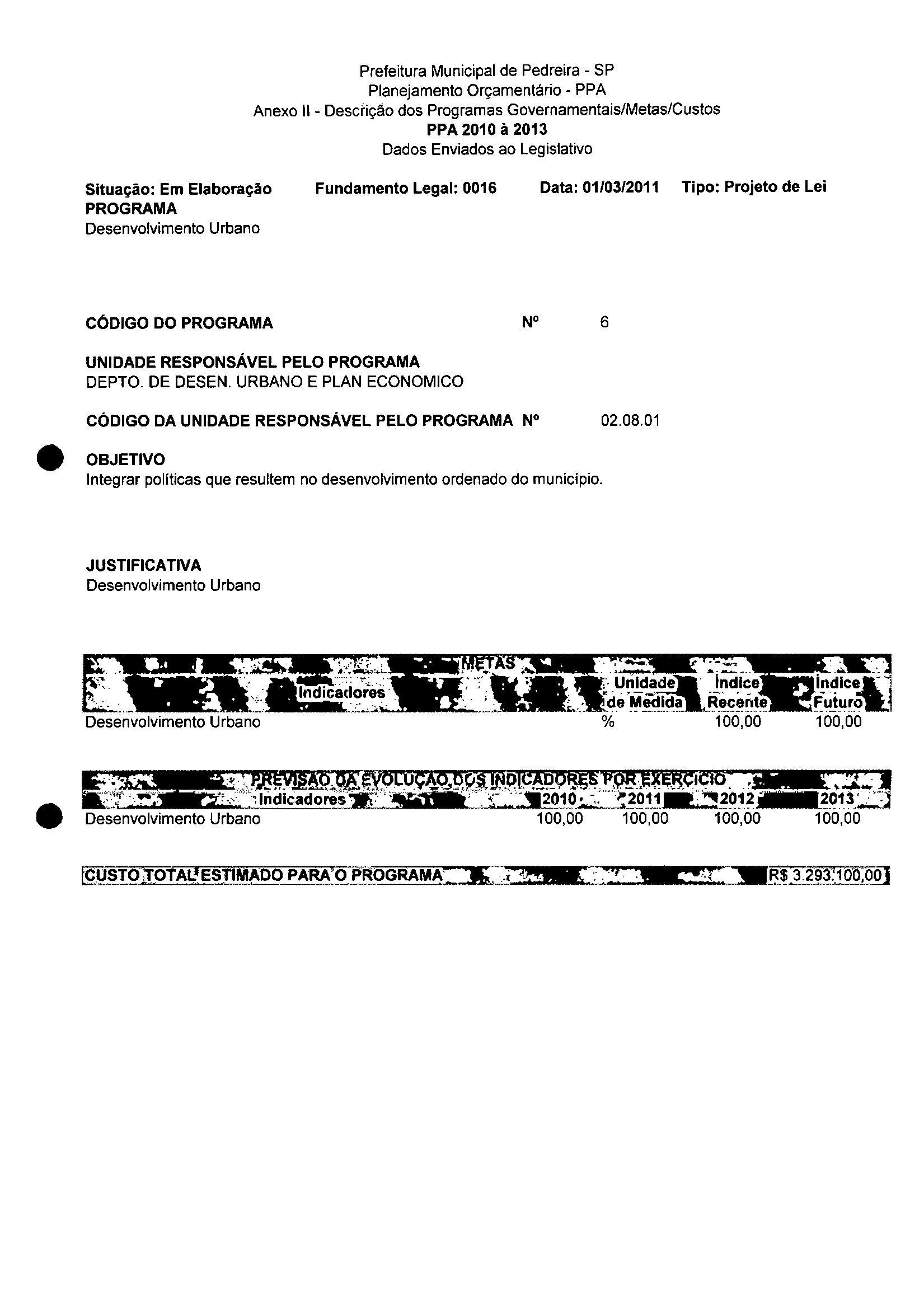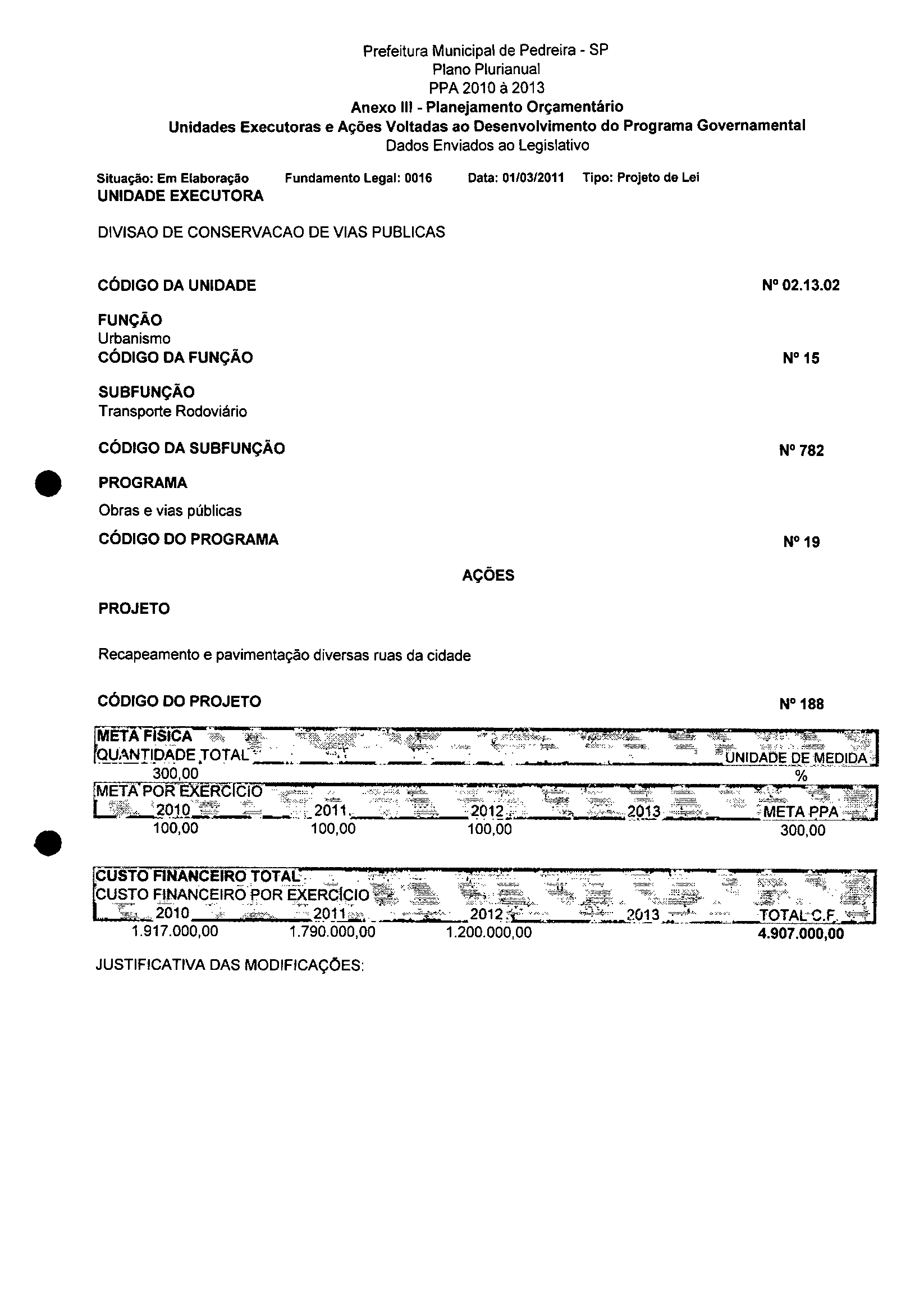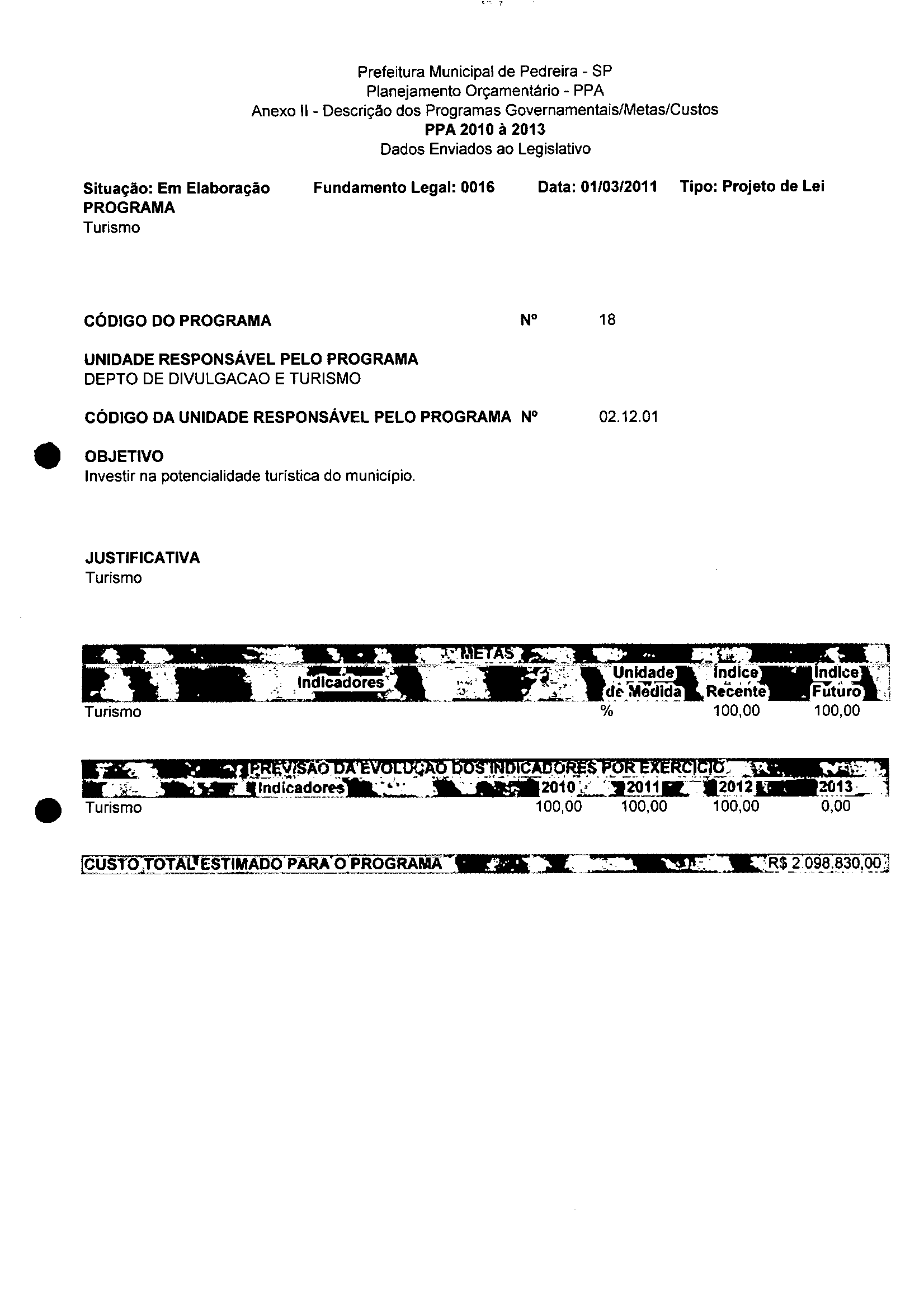Ementa: Dispõe sobre a alteração dos anexos II e III -da Lei nº 2.977, de 5 de novembro de 2009 -Plano Plurianual para o Quadriênio de 2010/2013 e a alteração dos anexos " V e VI - da Lei nº 3.040, de 10 de junho de 2010 -Lei de Diretrizes Orçamentárias para o exercício de 2011.