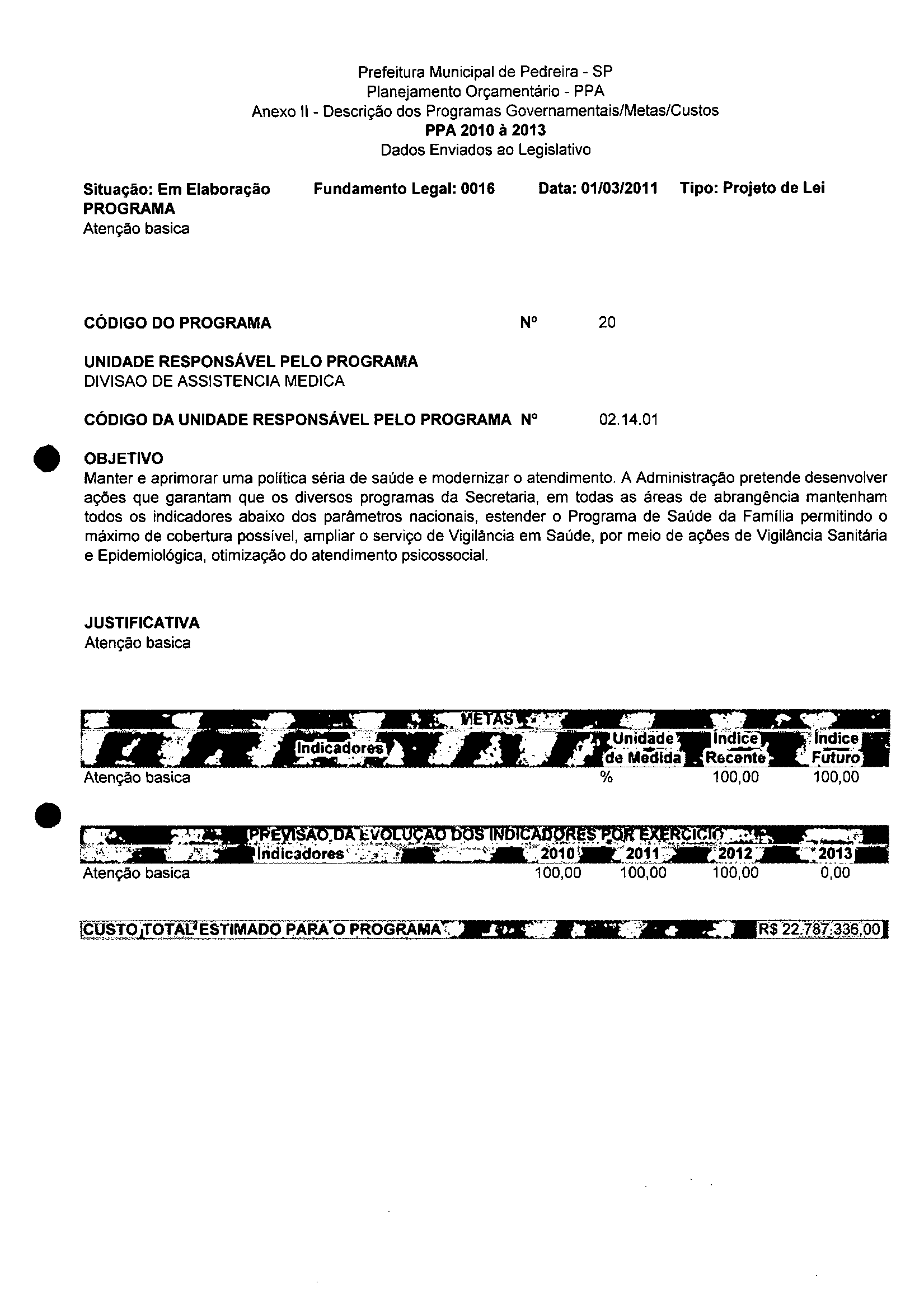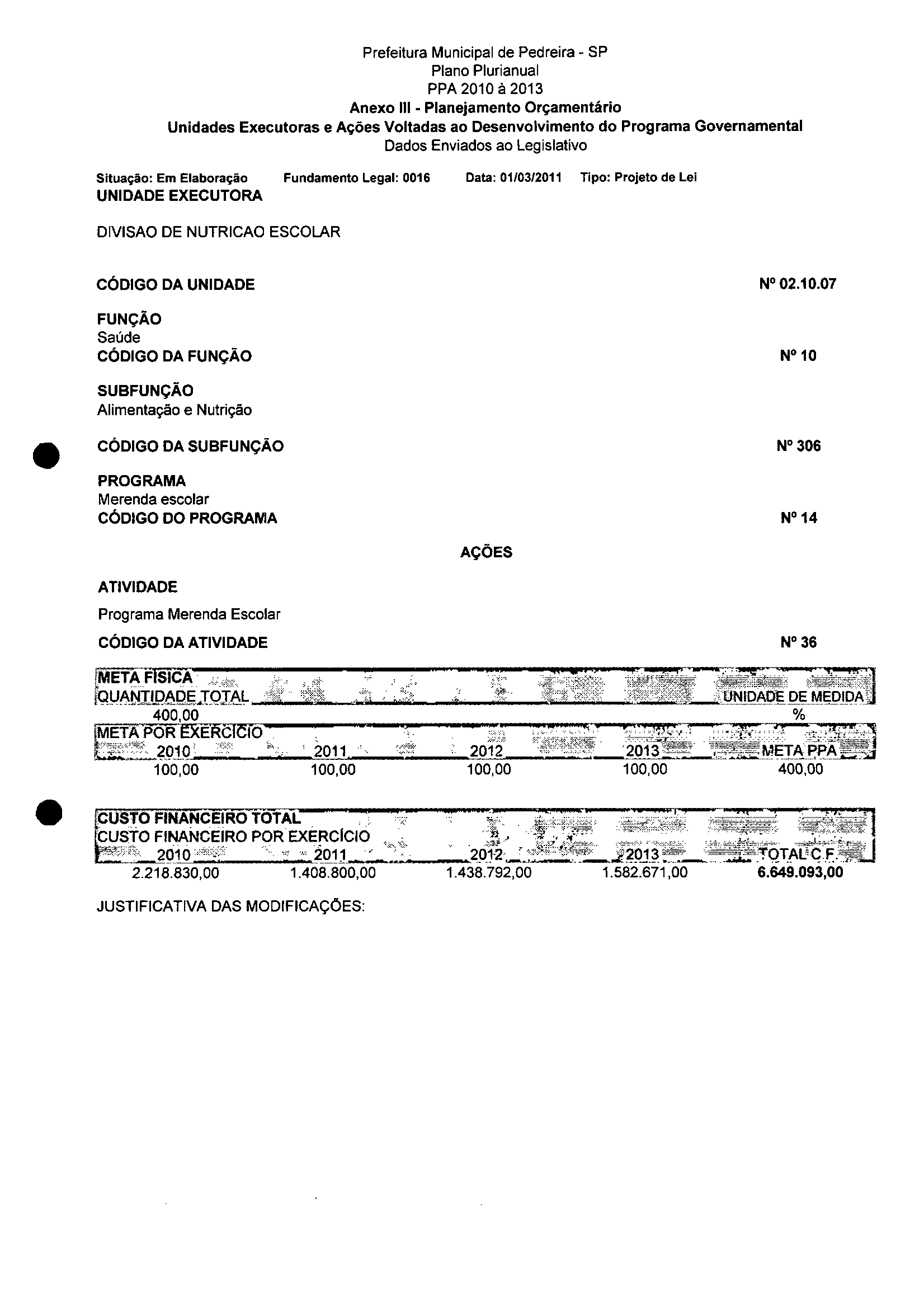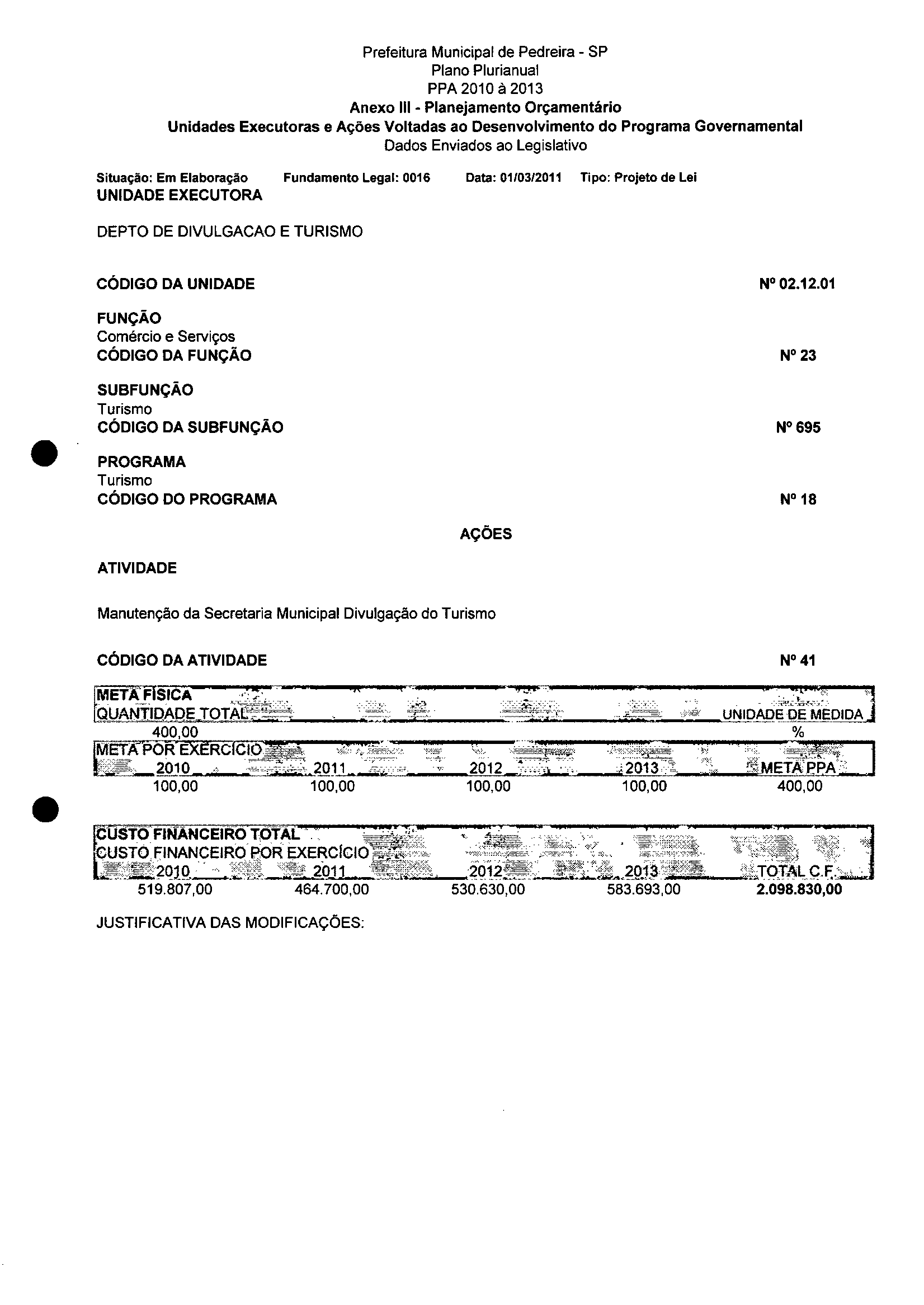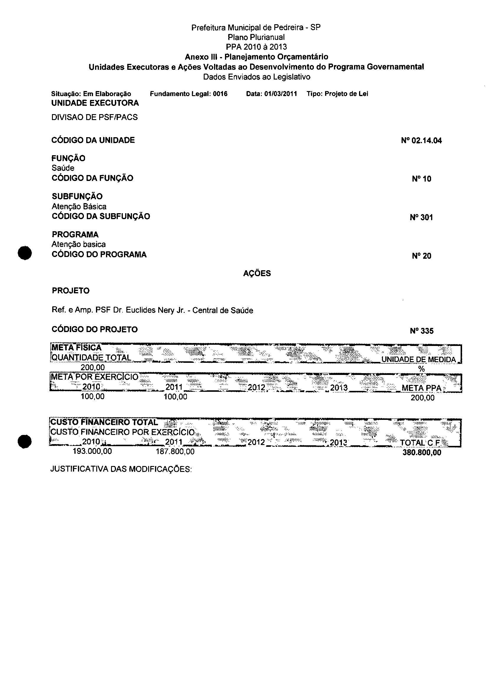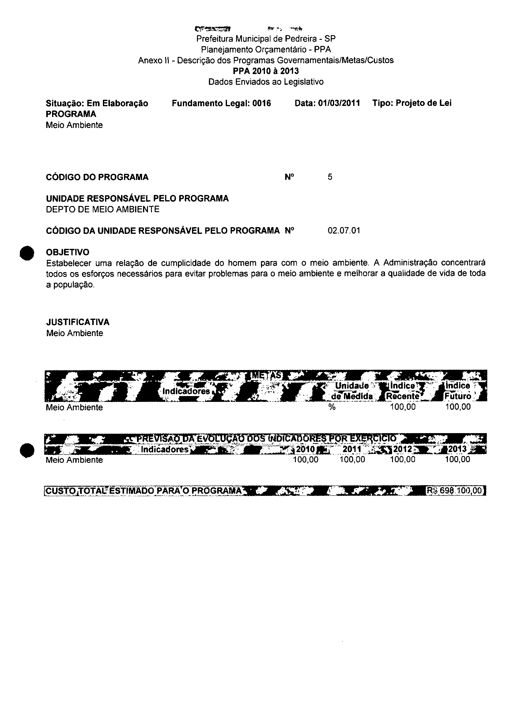 Ementa: Dispõe sobre a alteração dos anexos II e III -da Lei nº 2.977, de 5 de novembro de 2009 -Plano Plurianual para o Quadriênio de 2010/2013 e a alteração dos anexos " V e VI - da Lei nº 3.040, de 10 de junho de 2010 -Lei de Diretrizes Orçamentárias para o exercício de 2011.