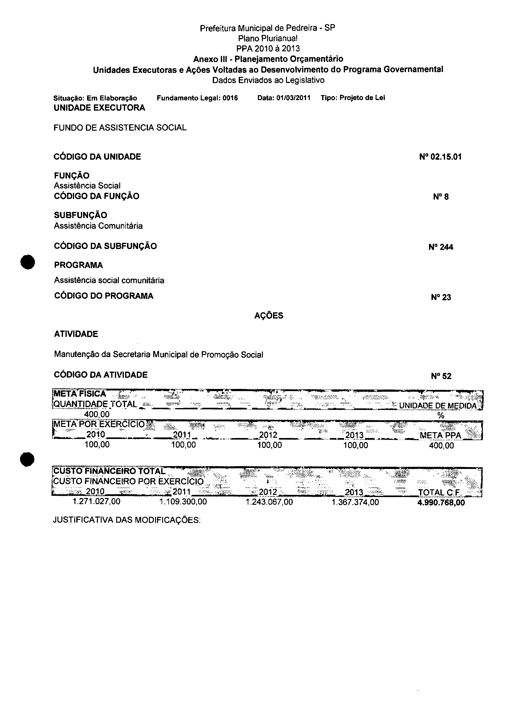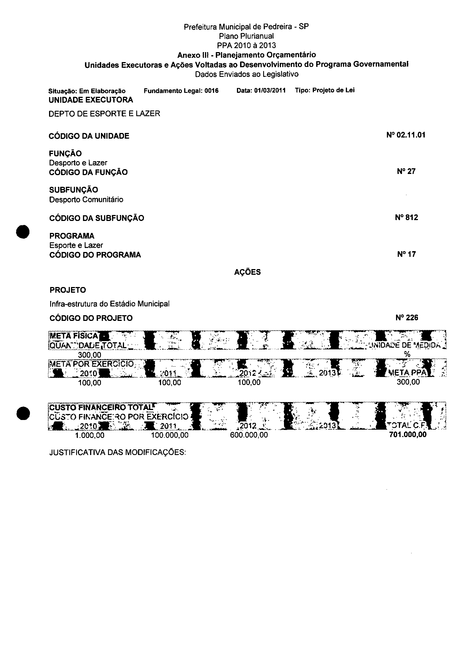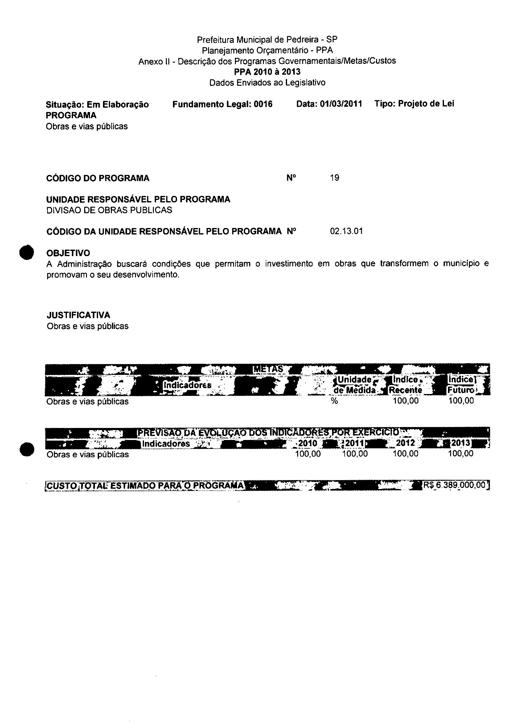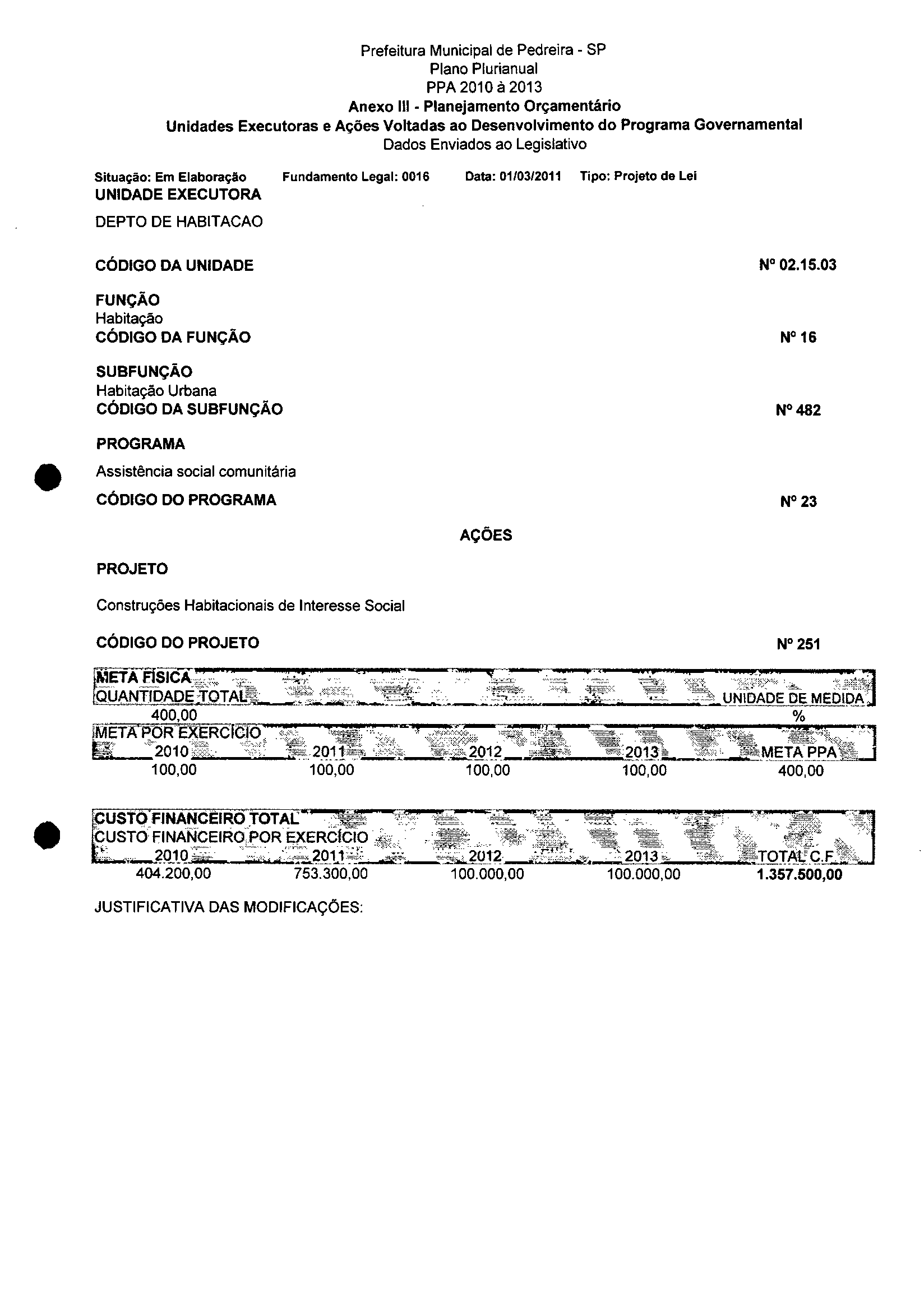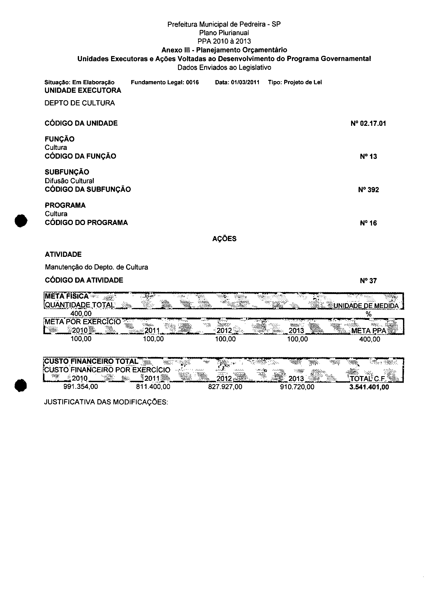 Ementa: Dispõe sobre a alteração dos anexos II e III -da Lei nº 2.977, de 5 de novembro de 2009 -Plano Plurianual para o Quadriênio de 2010/2013 e a alteração dos anexos " V e VI - da Lei nº 3.040, de 10 de junho de 2010 -Lei de Diretrizes Orçamentárias para o exercício de 2011.