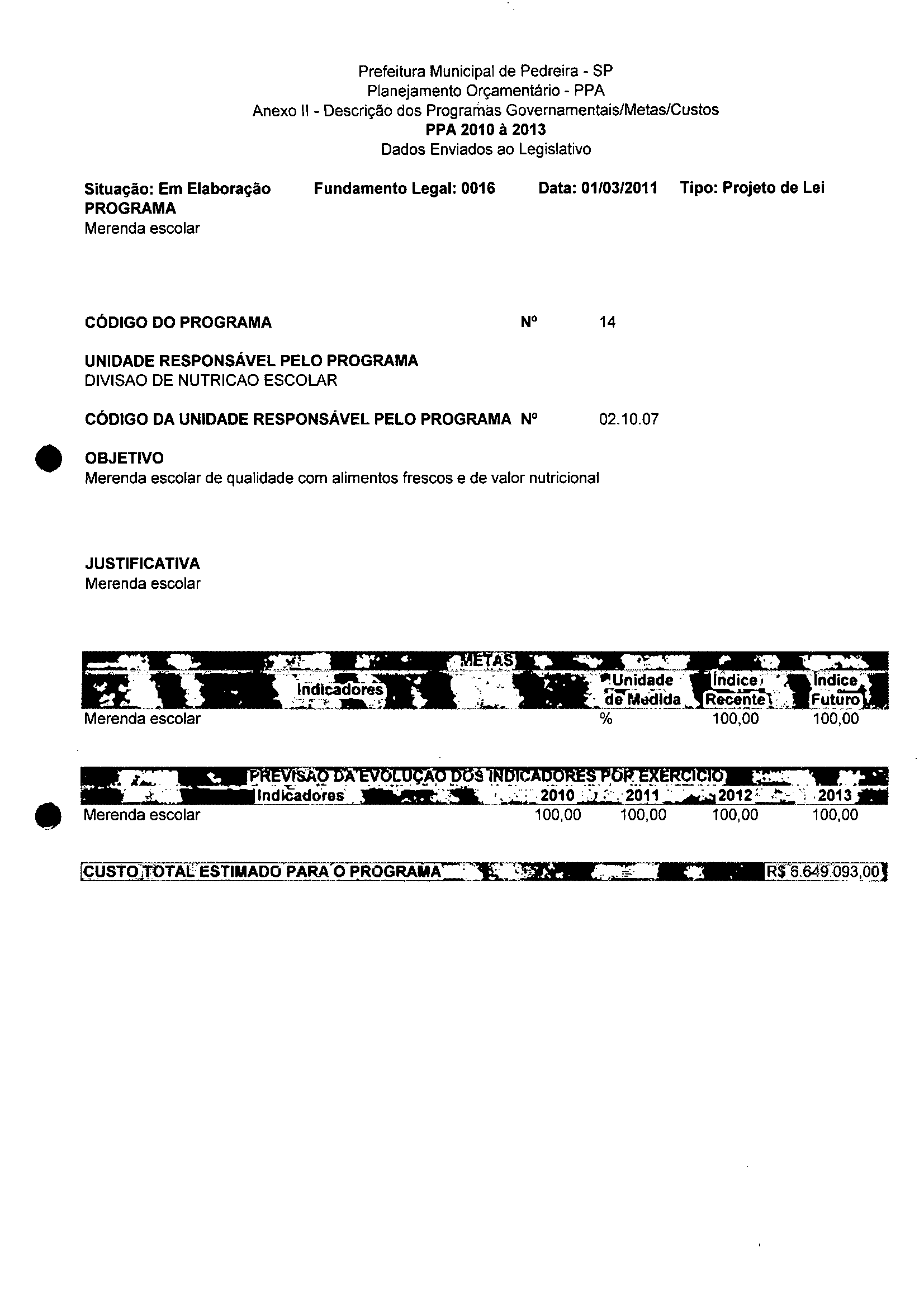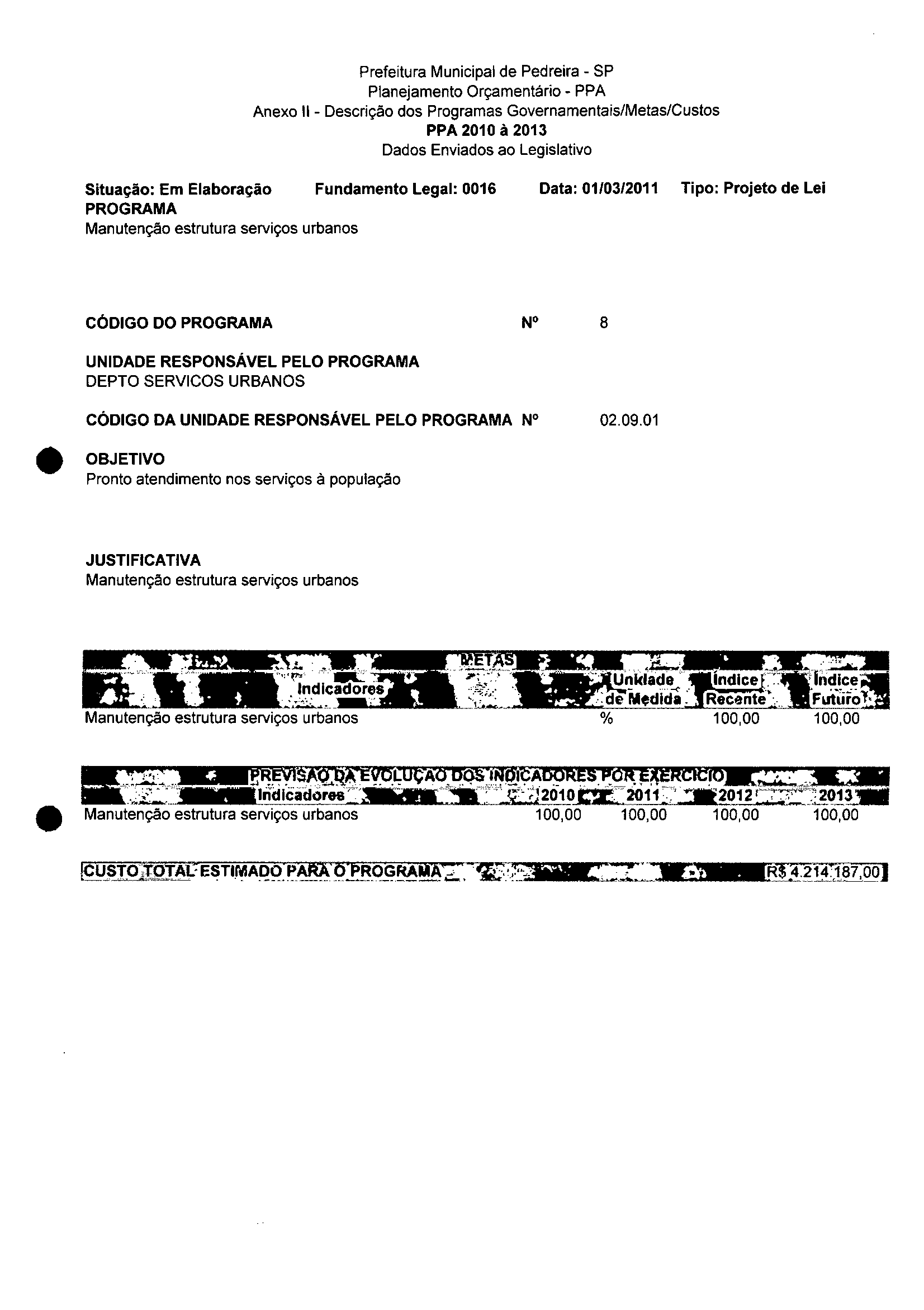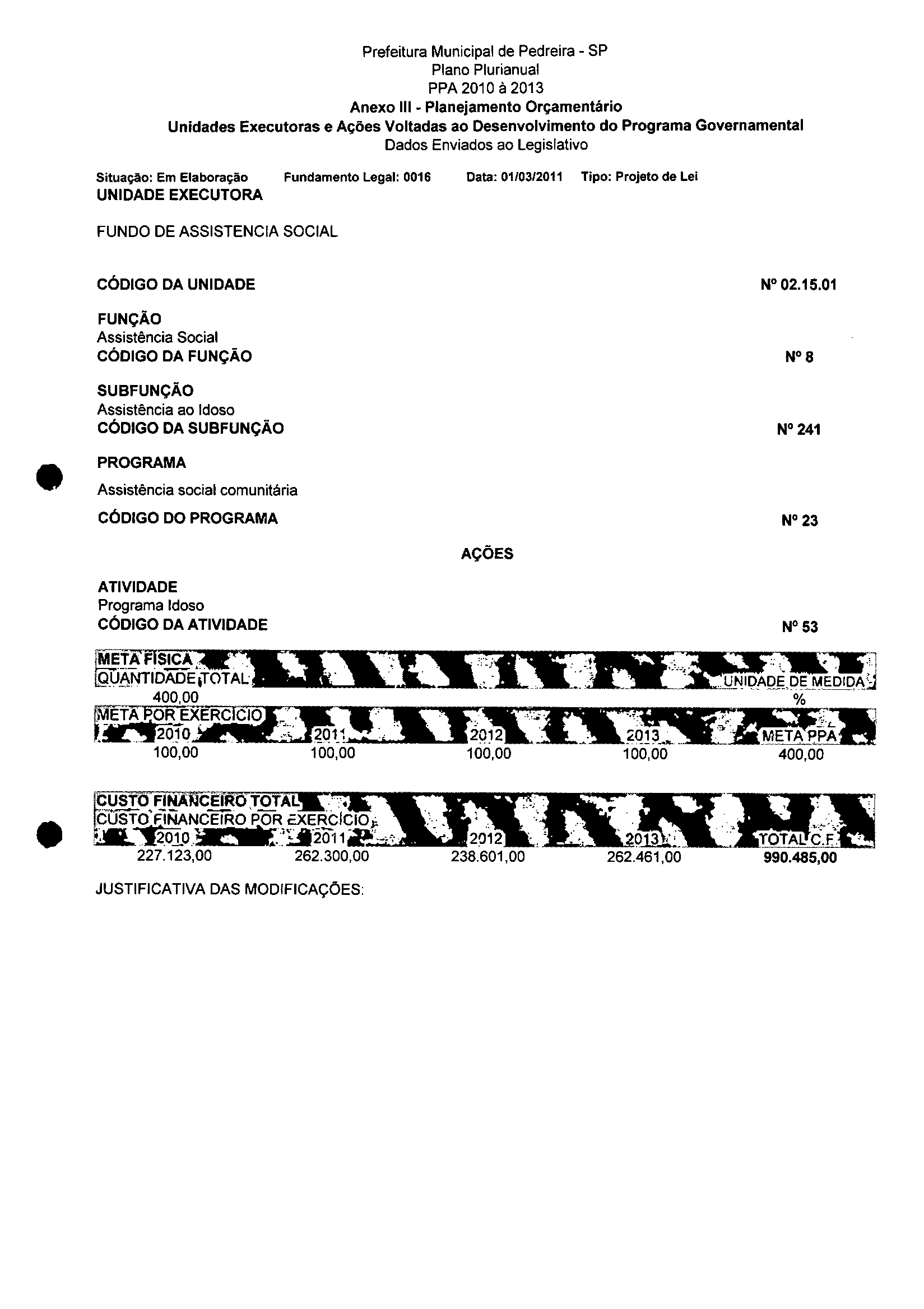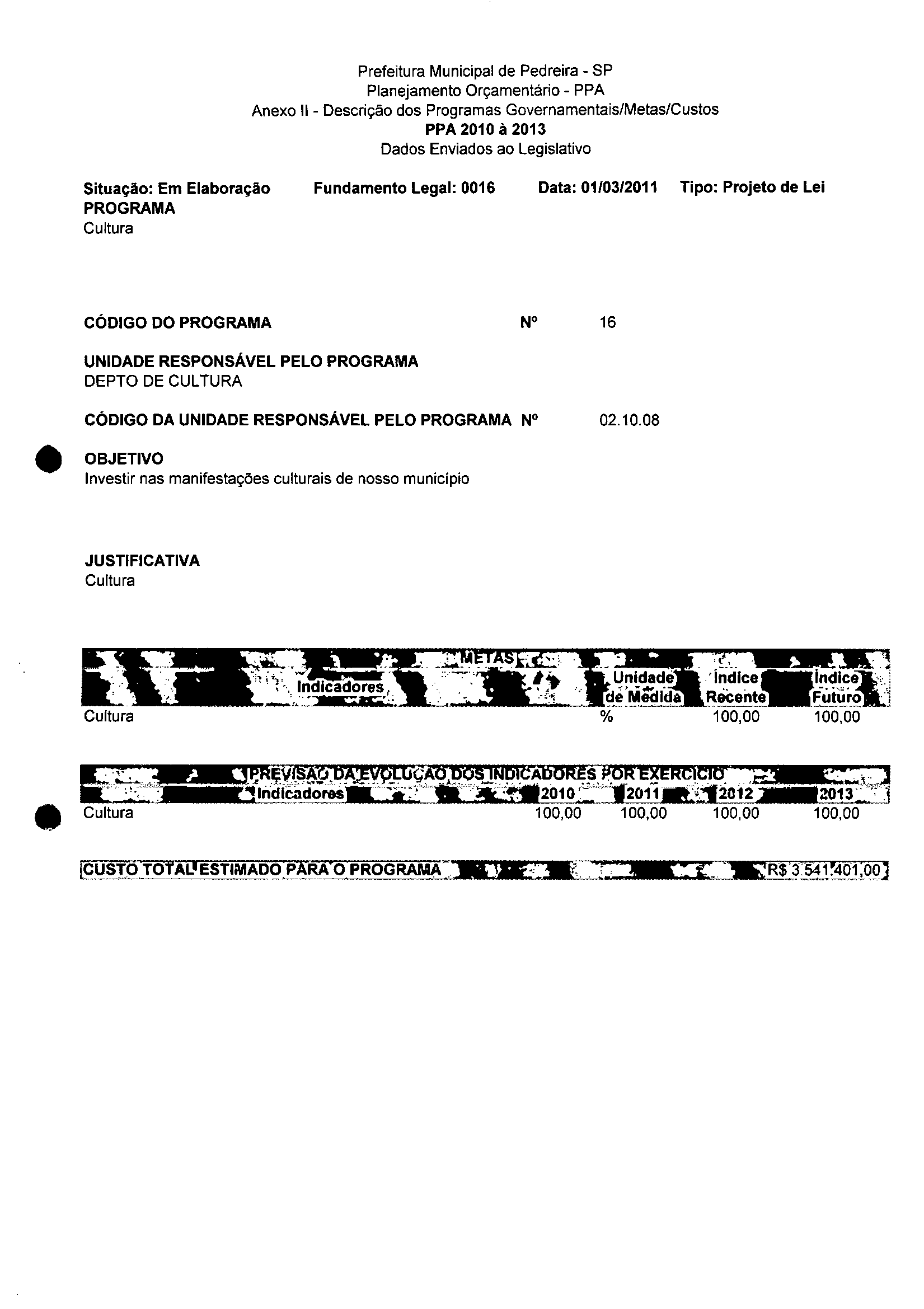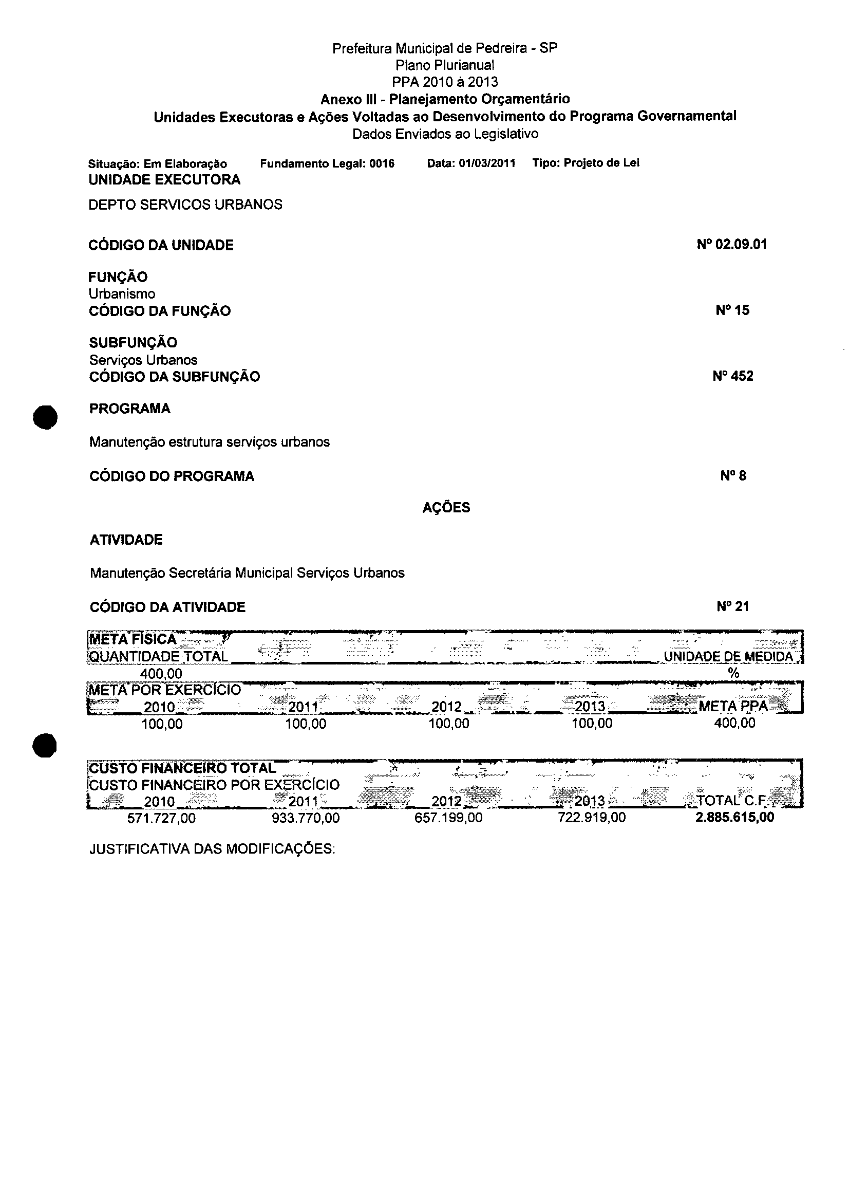 Ementa: Dispõe sobre a alteração dos anexos II e III -da Lei nº 2.977, de 5 de novembro de 2009 -Plano Plurianual para o Quadriênio de 2010/2013 e a alteração dos anexos " V e VI - da Lei nº 3.040, de 10 de junho de 2010 -Lei de Diretrizes Orçamentárias para o exercício de 2011.