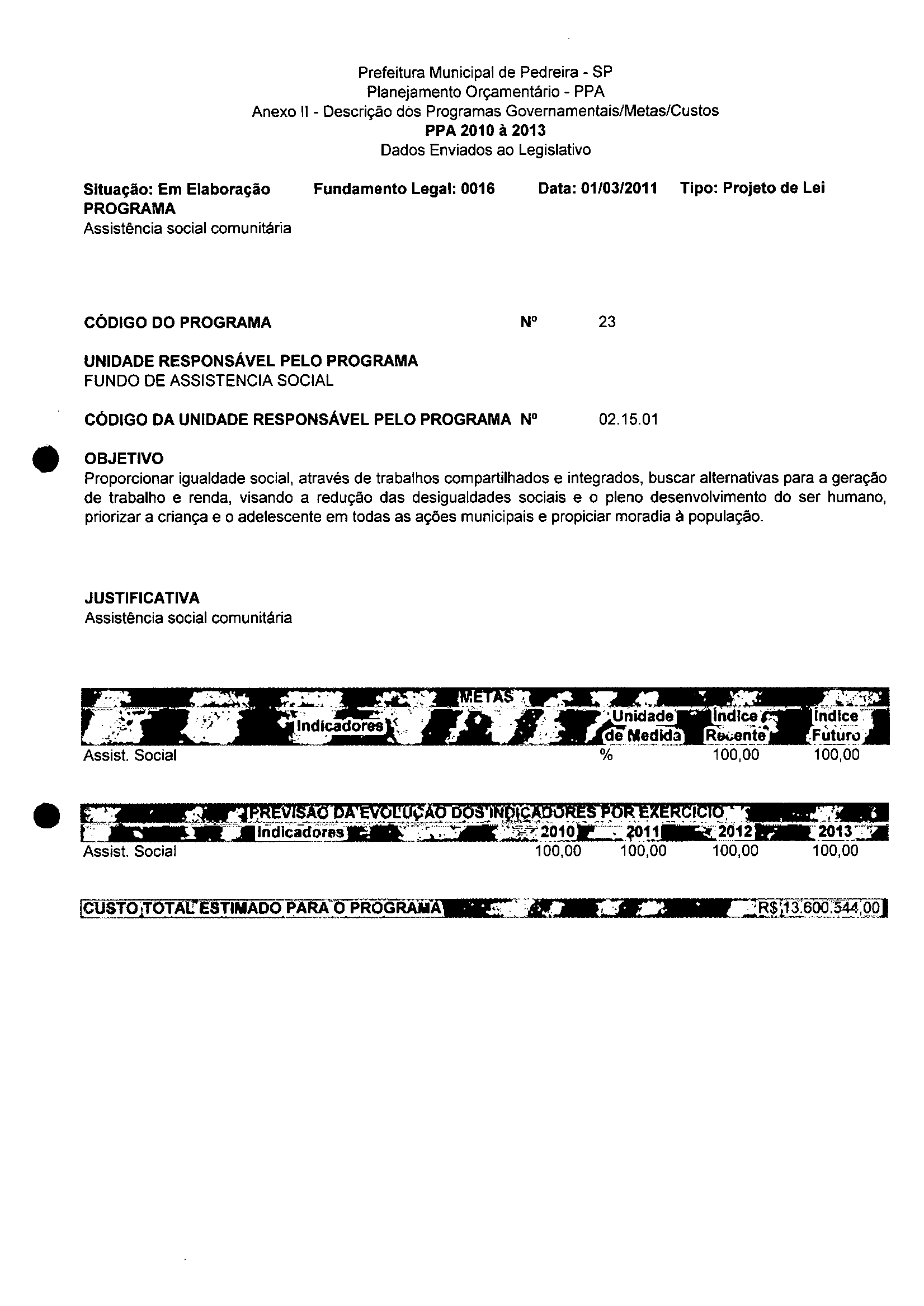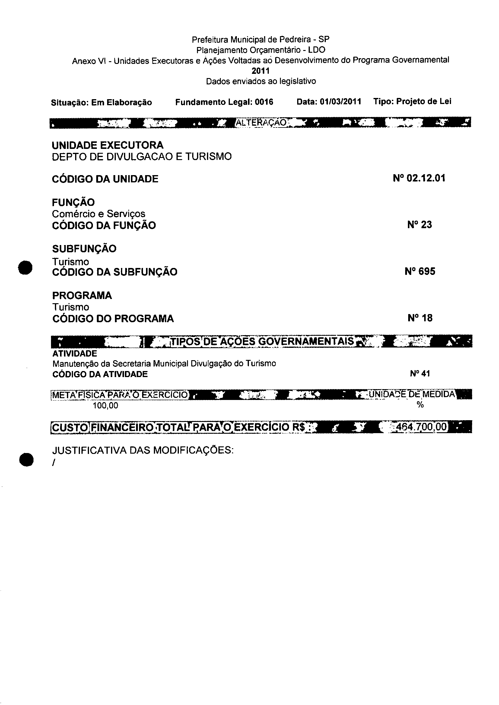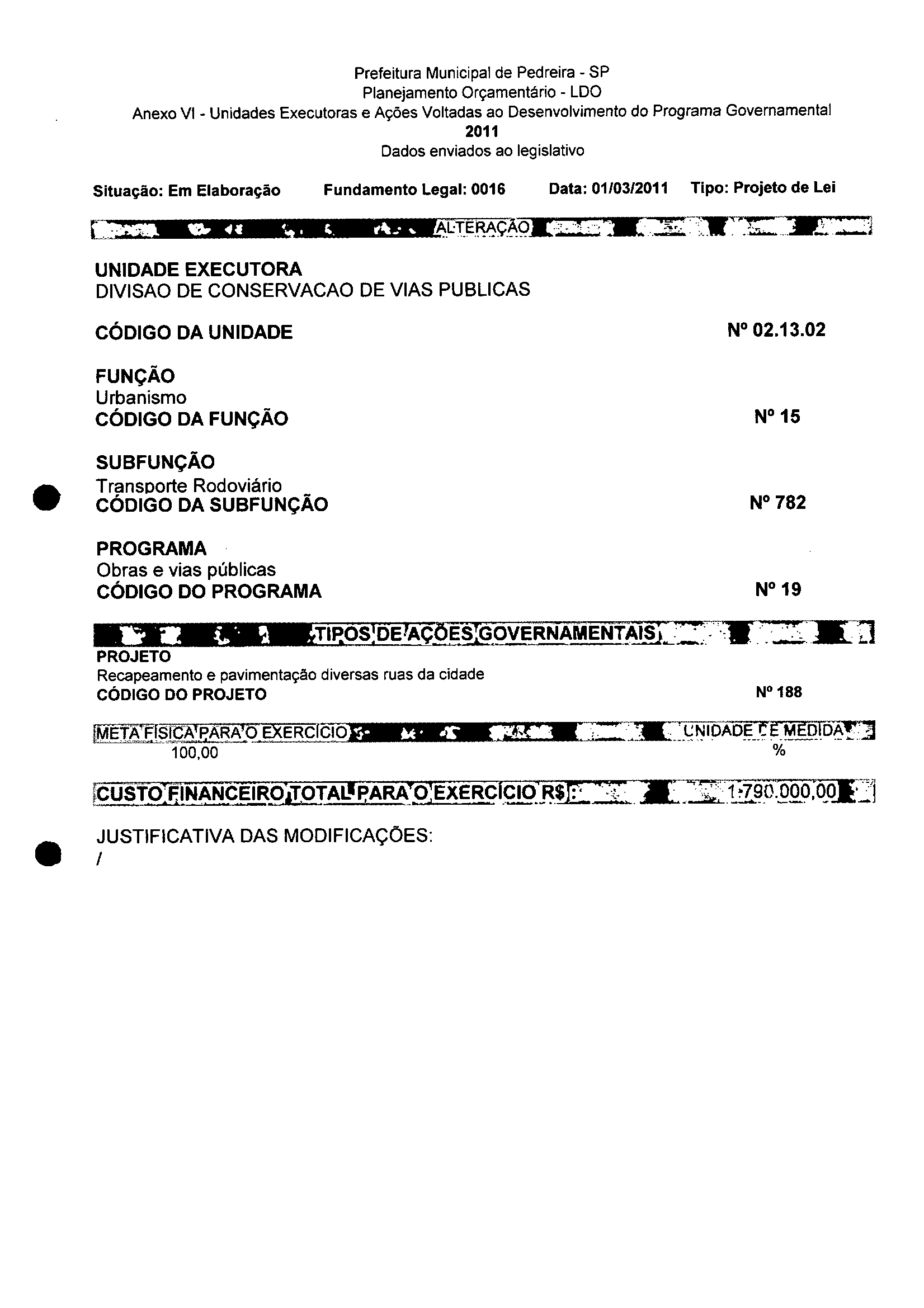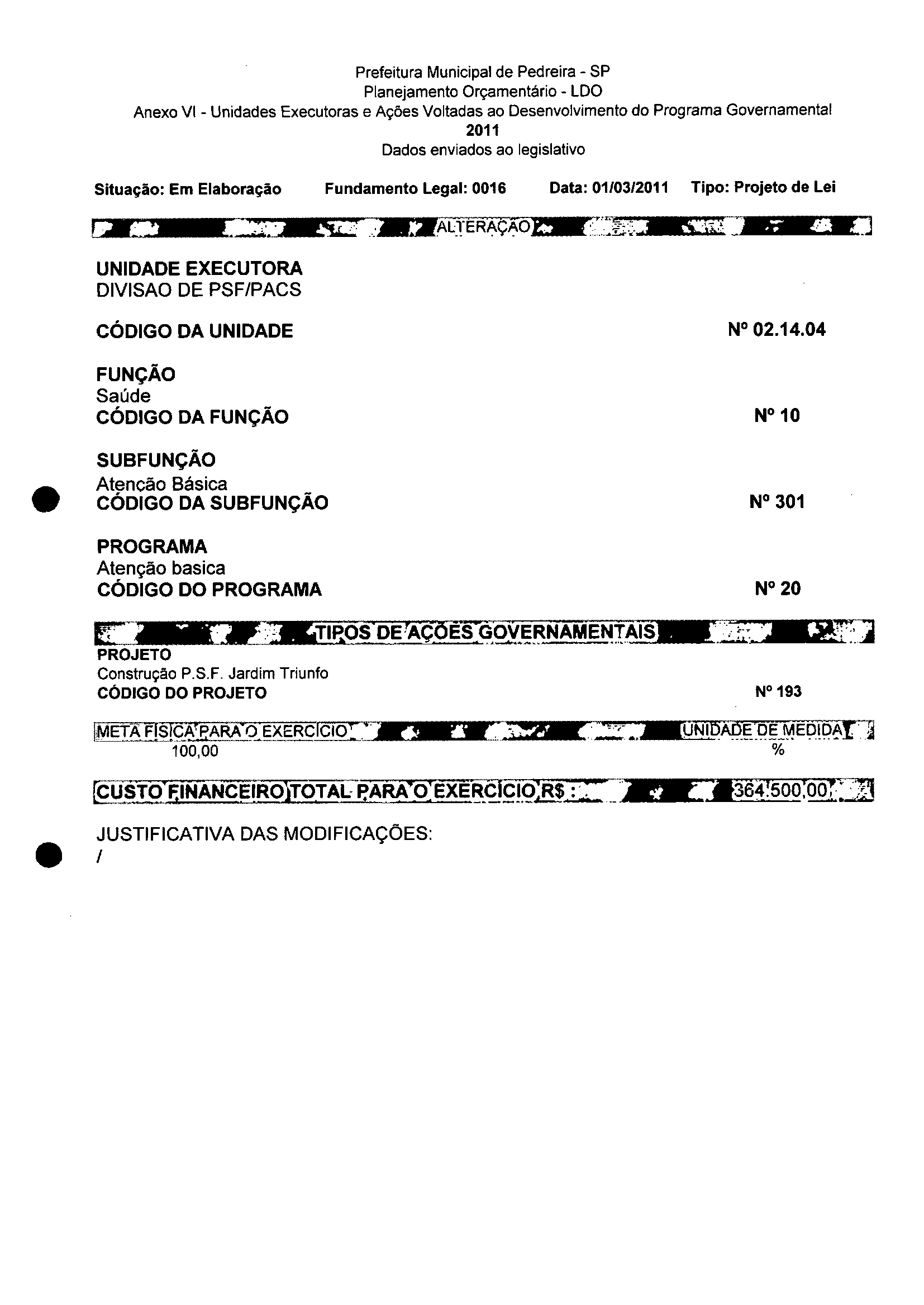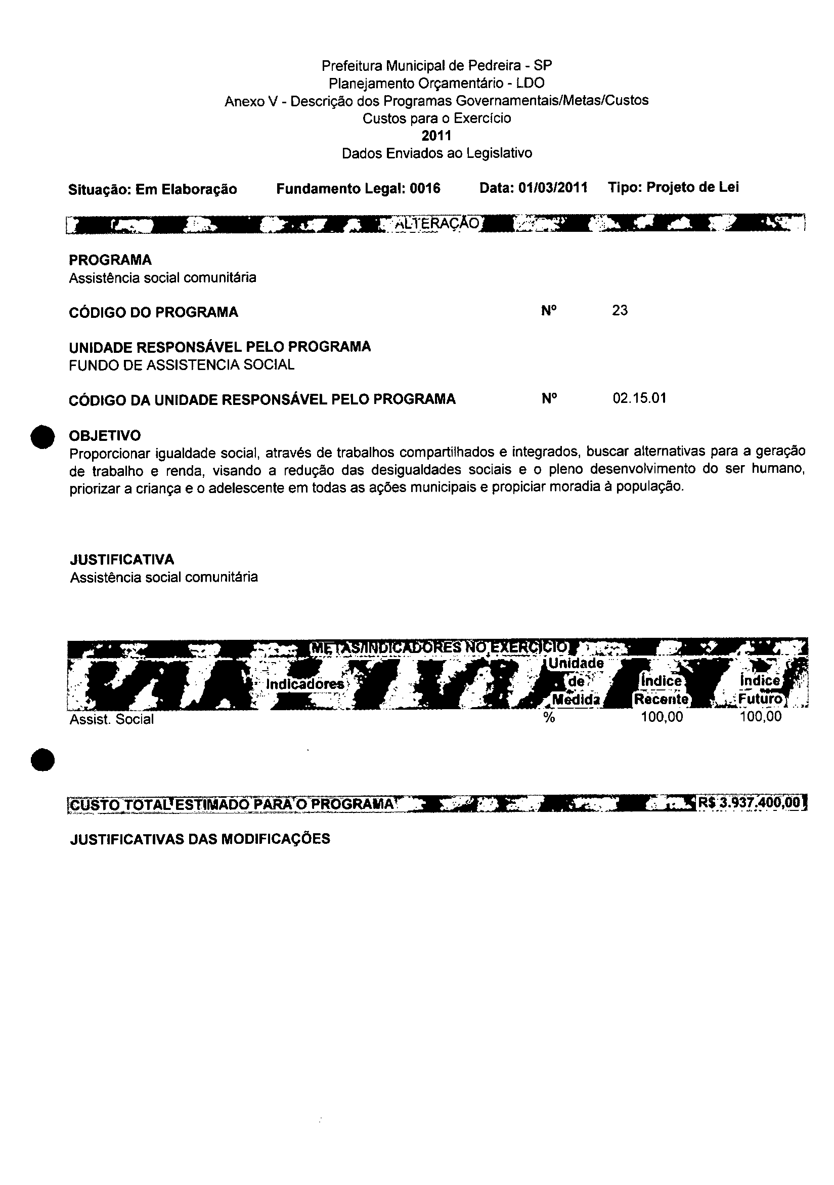 Ementa: Dispõe sobre a alteração dos anexos II e III -da Lei nº 2.977, de 5 de novembro de 2009 -Plano Plurianual para o Quadriênio de 2010/2013 e a alteração dos anexos " V e VI - da Lei nº 3.040, de 10 de junho de 2010 -Lei de Diretrizes Orçamentárias para o exercício de 2011.