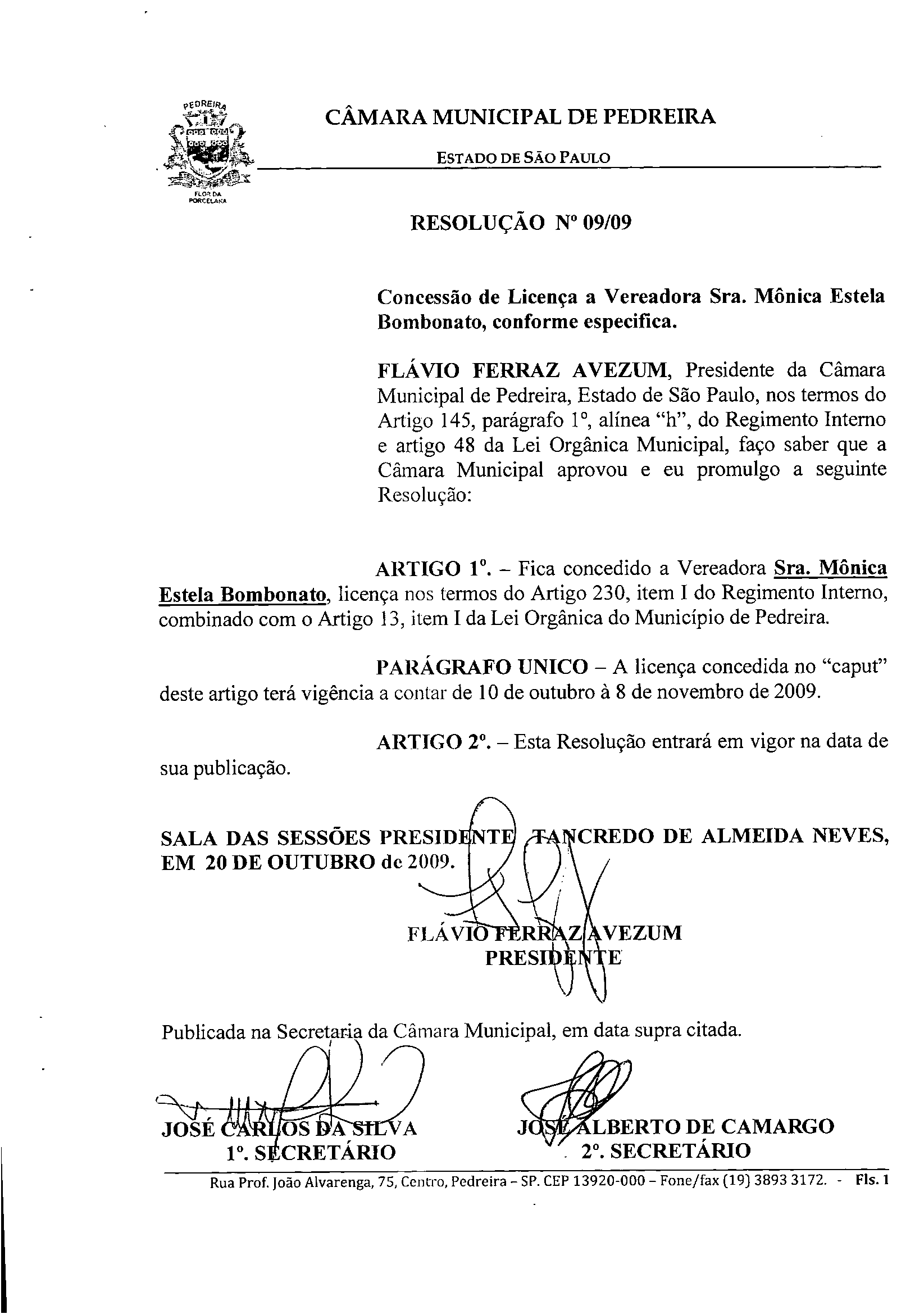 Ementa: Concessão de Licença a Vereadora Sra. Mônica Estela Bombonato, conforme especifica .