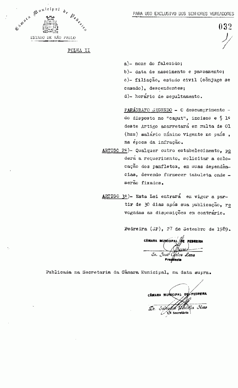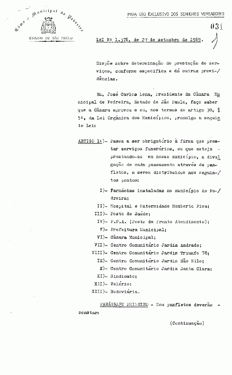 Lei Municipal - N° 1378 de 27/09/1989