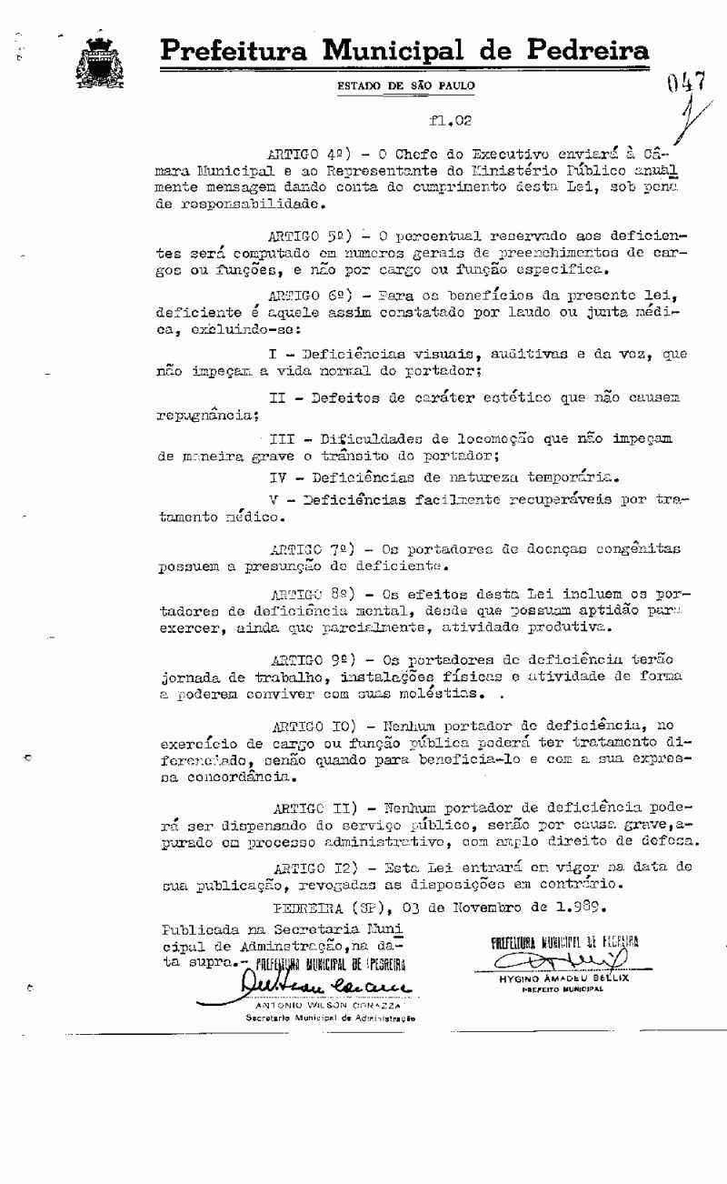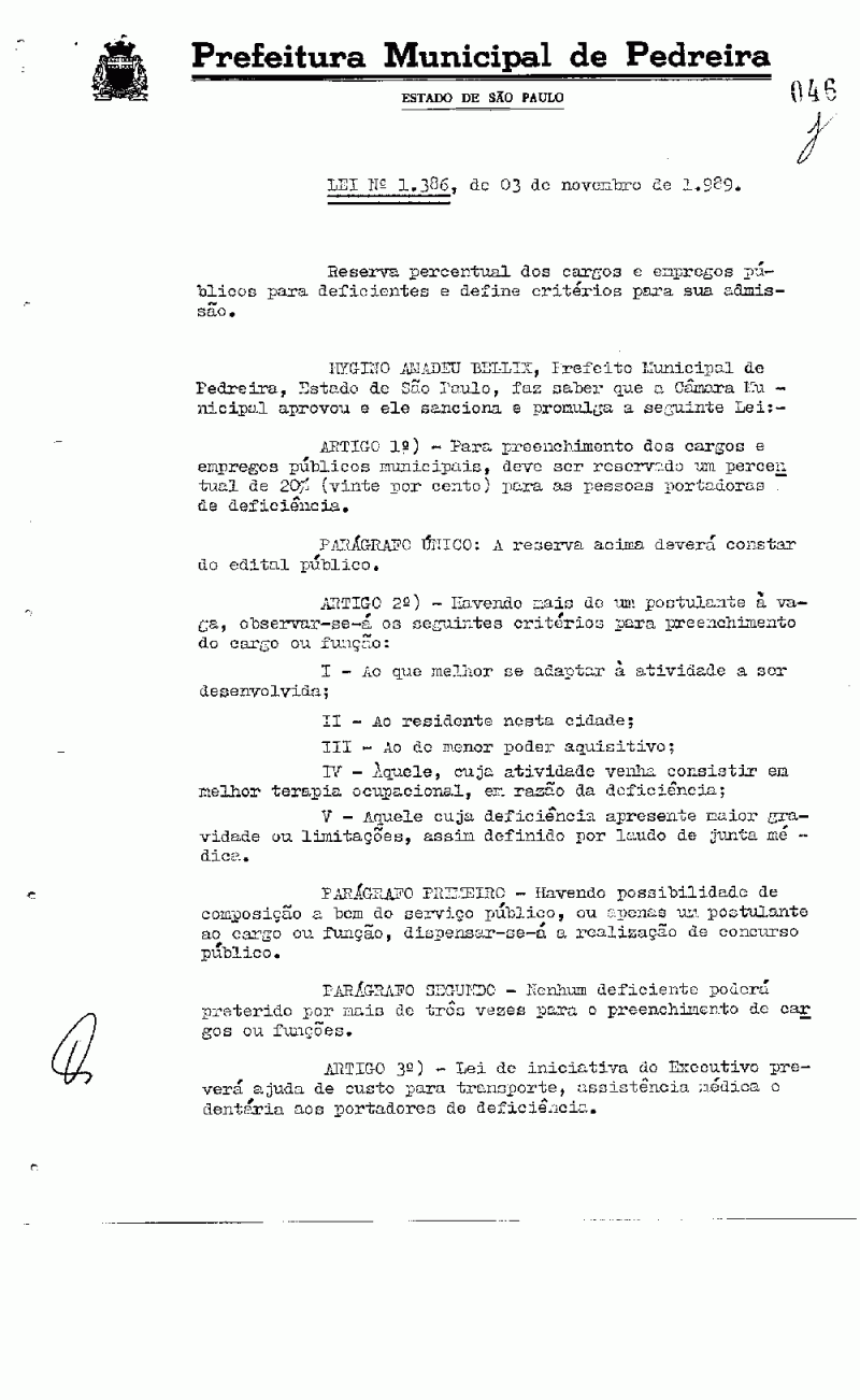 Lei Municipal - N° 1386 de 03/11/1989