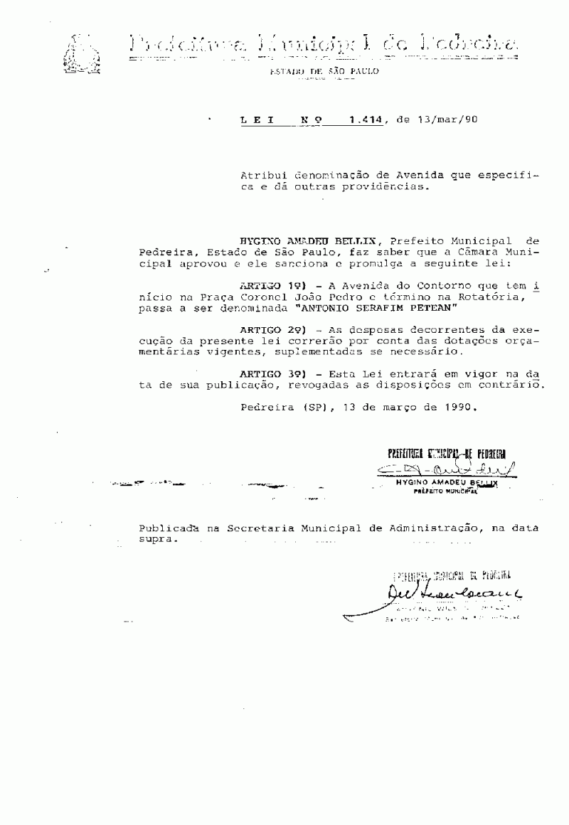 Lei Municipal - N° 1414 de 13/03/1990
