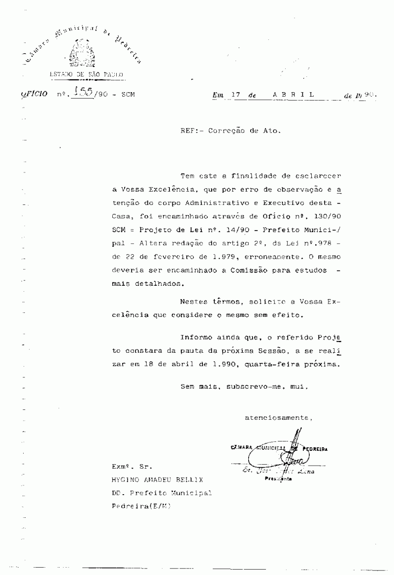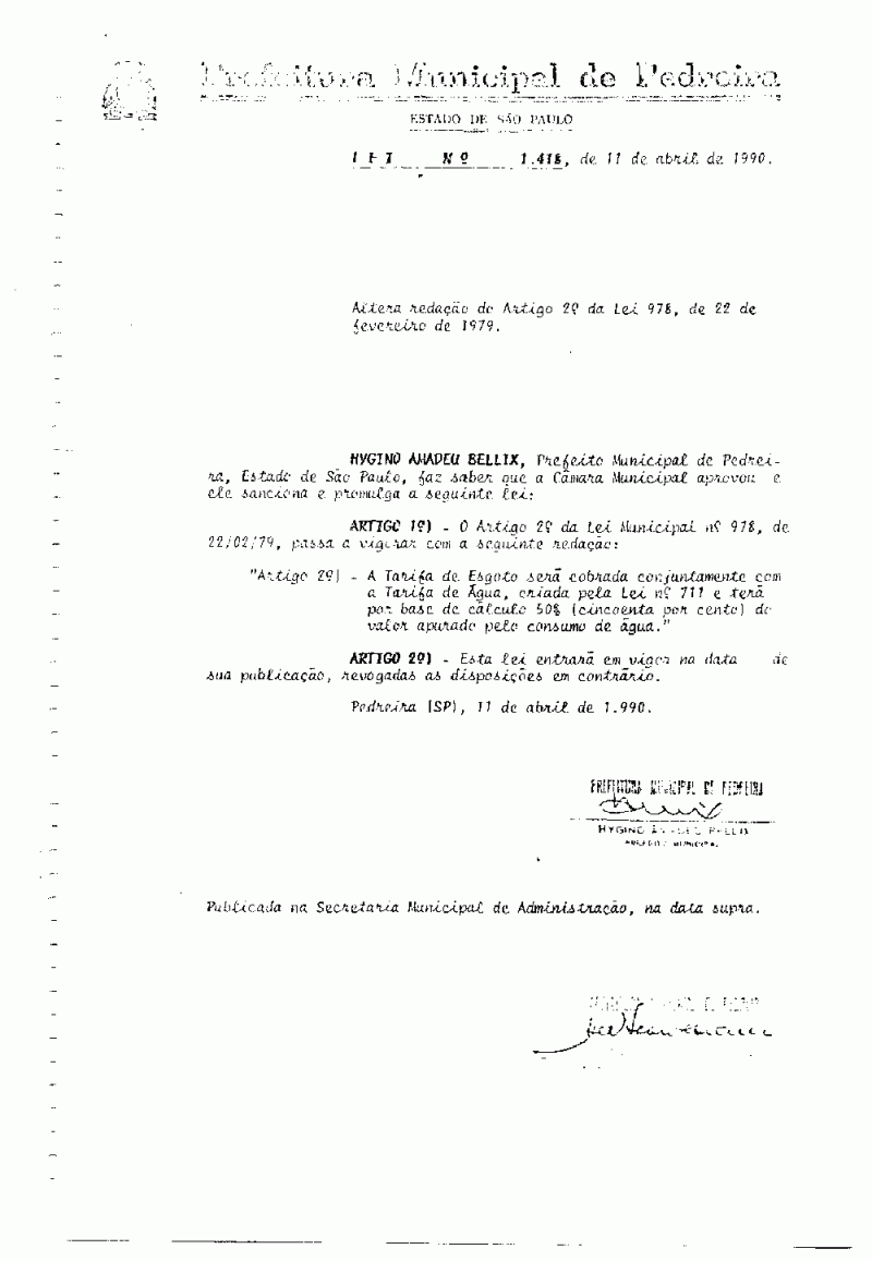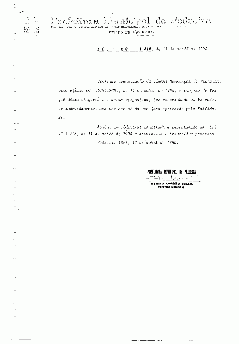 Lei Municipal - N° 1418 de 11/04/1990