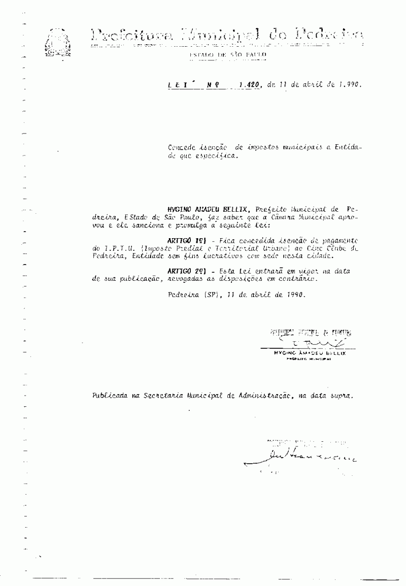Lei Municipal - N° 1420 de 11/04/1990