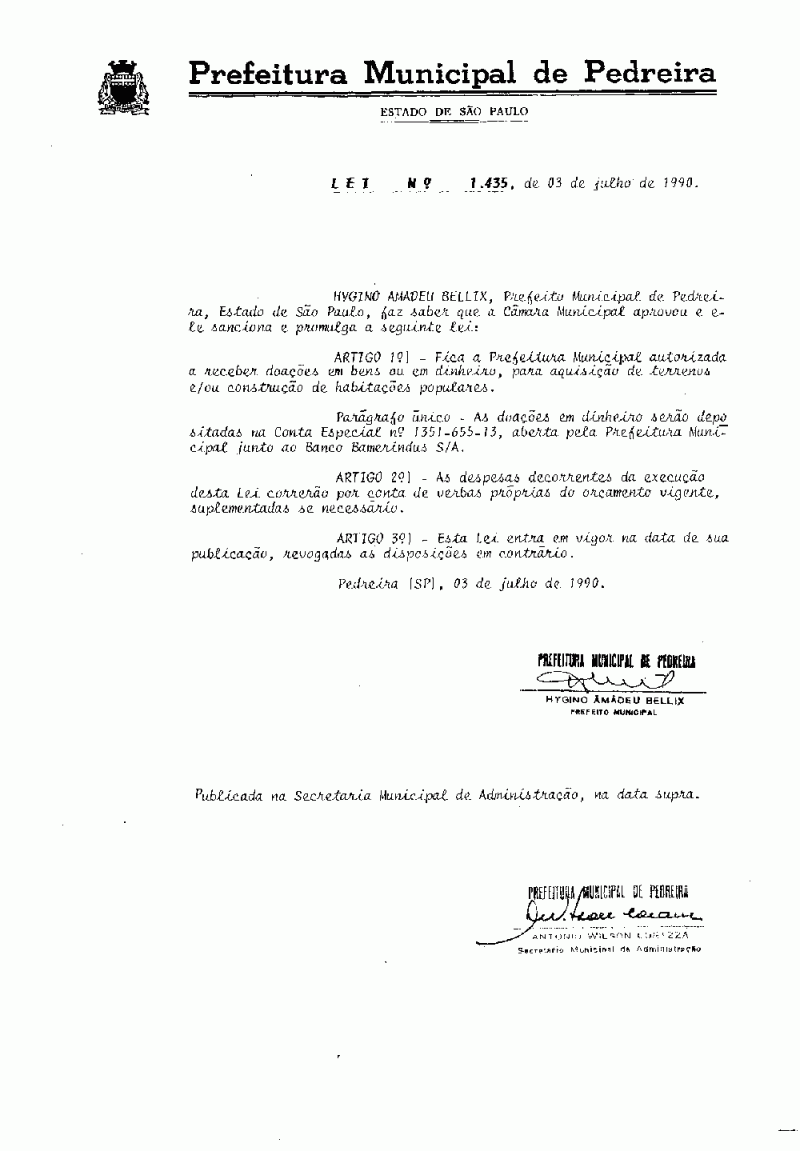 Lei Municipal - N° 1435 de 03/07/1990