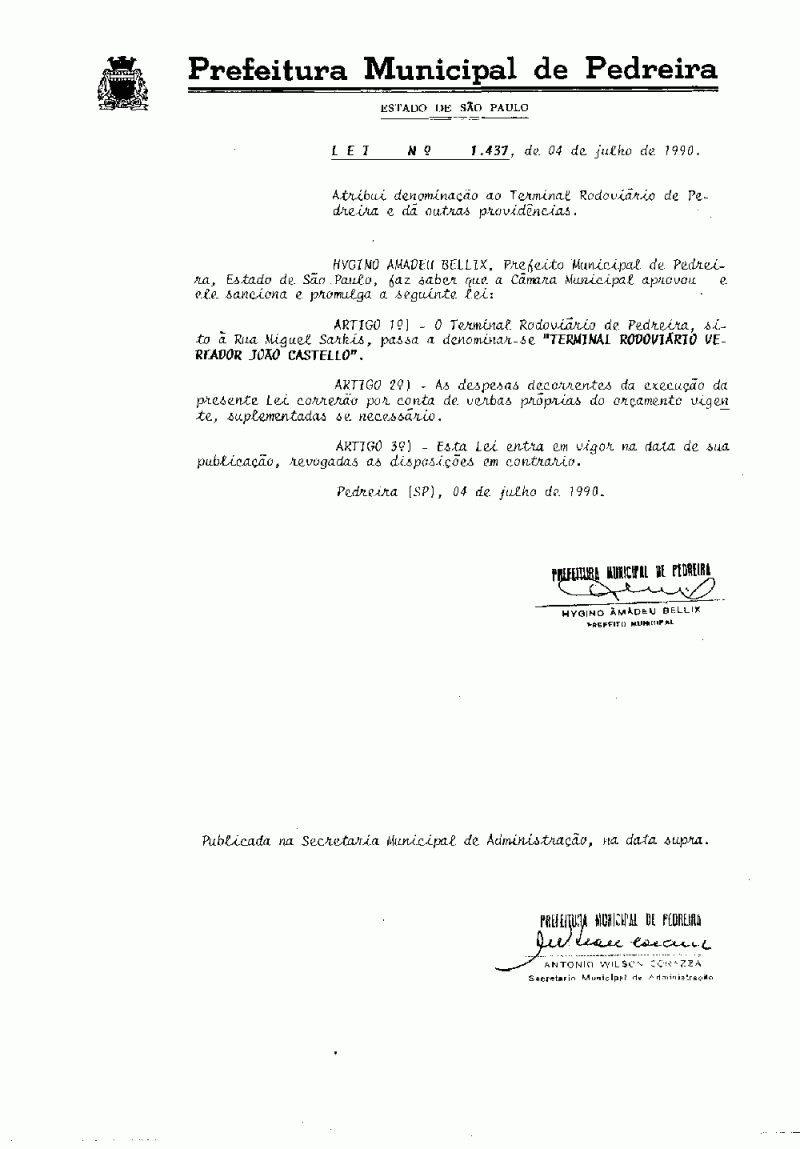Lei Municipal - N° 1437 de 04/07/1990