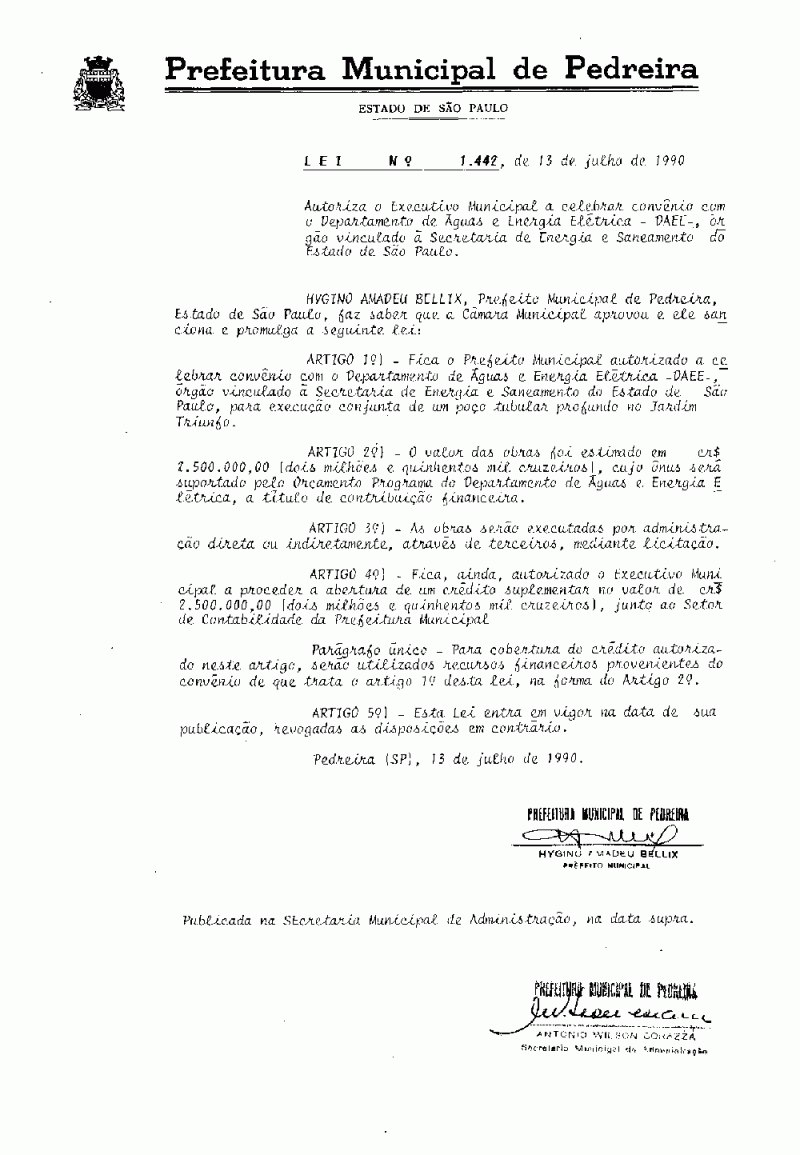Ementa: Autoriza o Executivo Municipal a celebrar convênio com o Departamento de Águas e Energia Elétrica - DAEE, órgão vinculado à Secretaria de Energia e Saneamento do Estado de São Paulo.