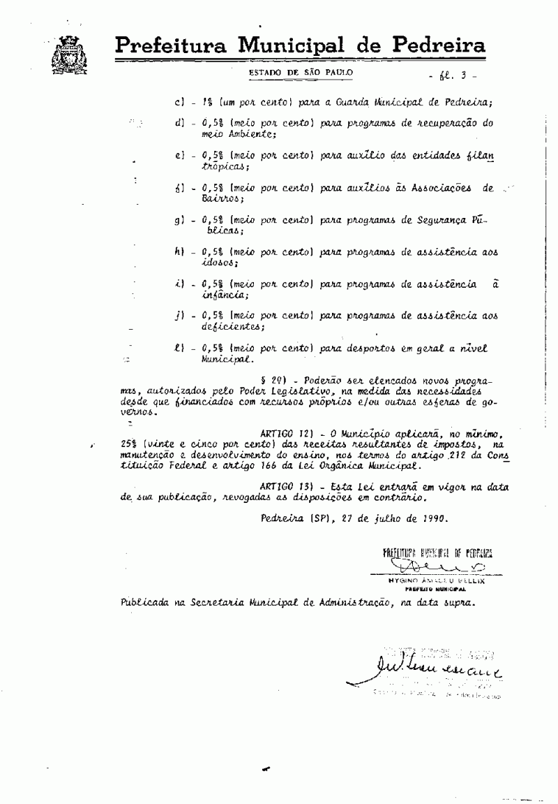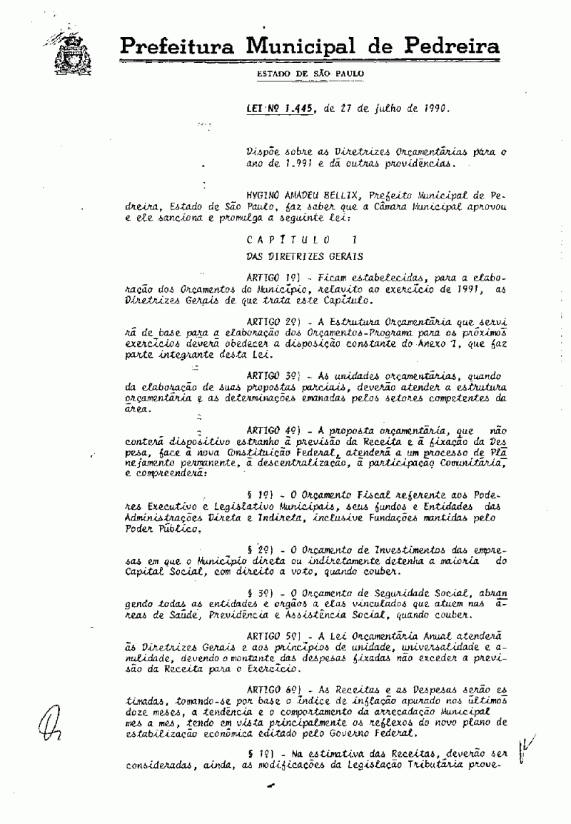 Lei Municipal - N° 1445 de 27/07/1990