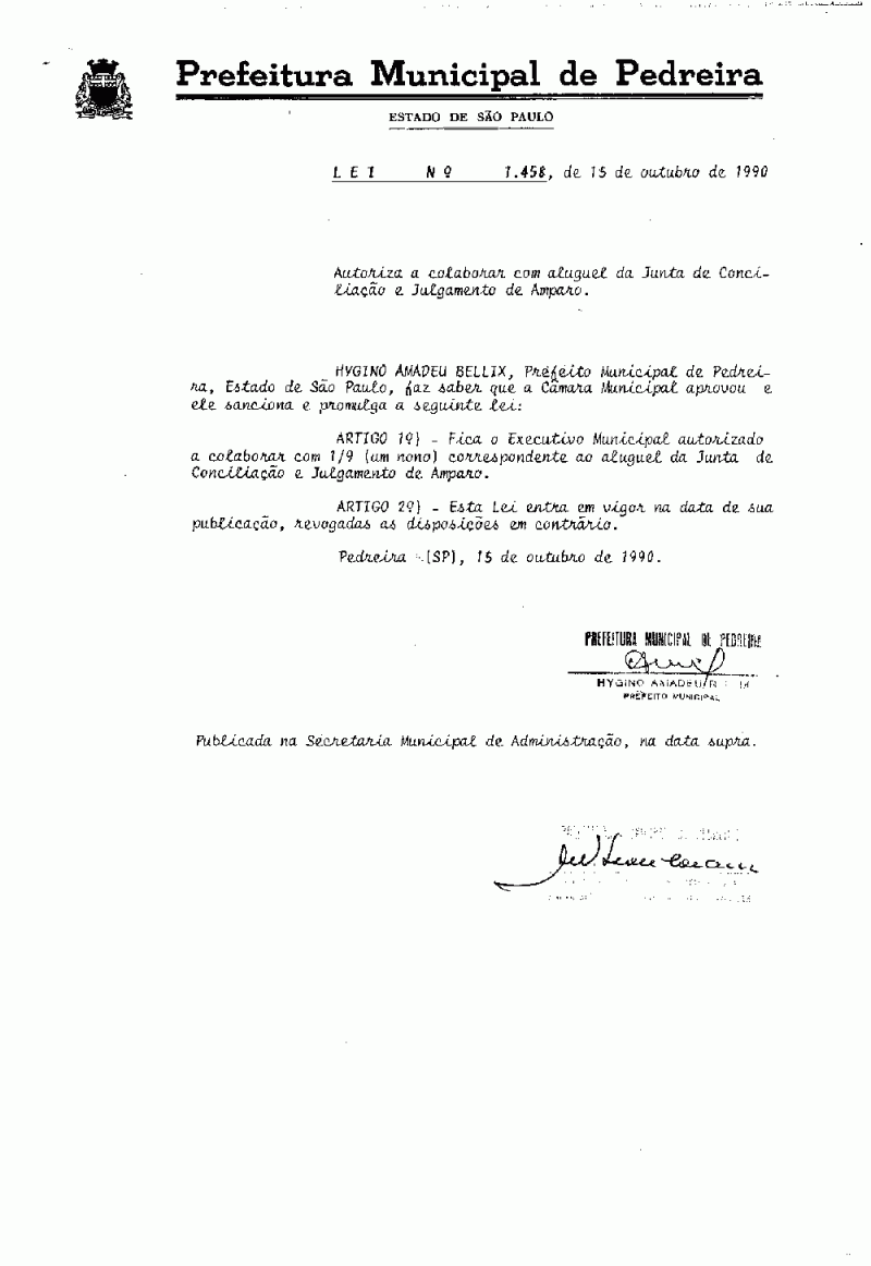 Lei Municipal - N° 1458 de 15/10/1990